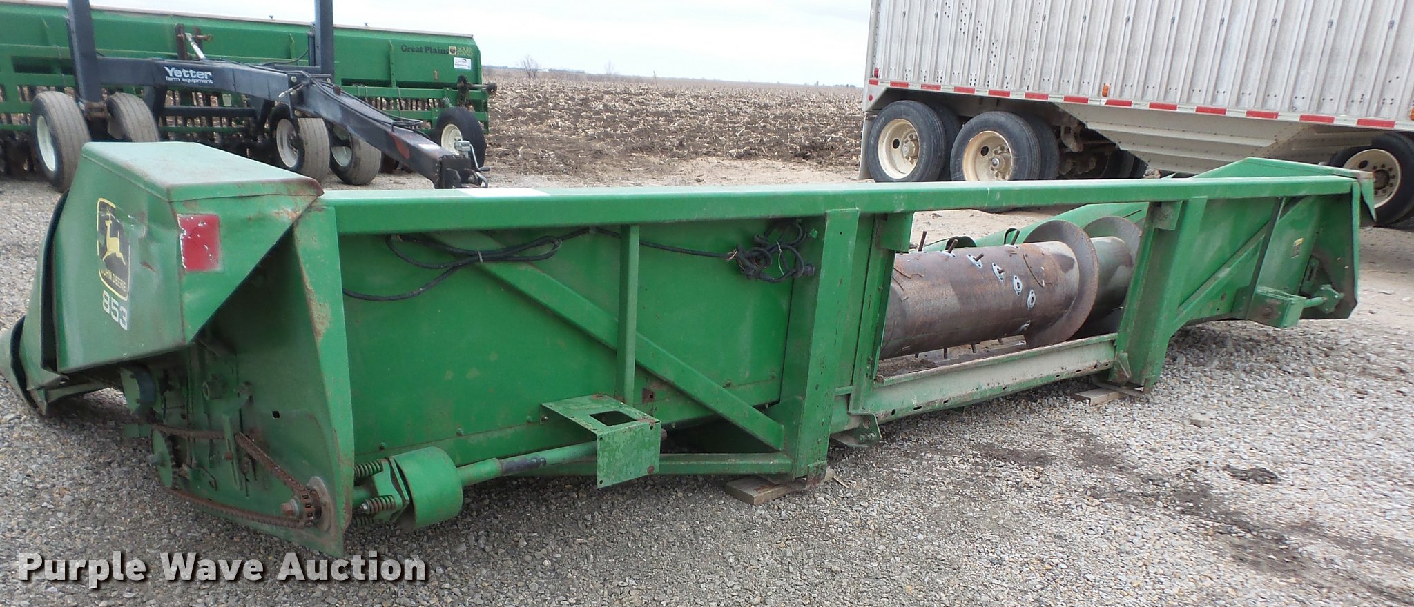 Purple Wave is selling a used Corn or Row Head in Kansas. This item is a John Deere 853 all-crop head with the following: Eight rows, 30" row spacing