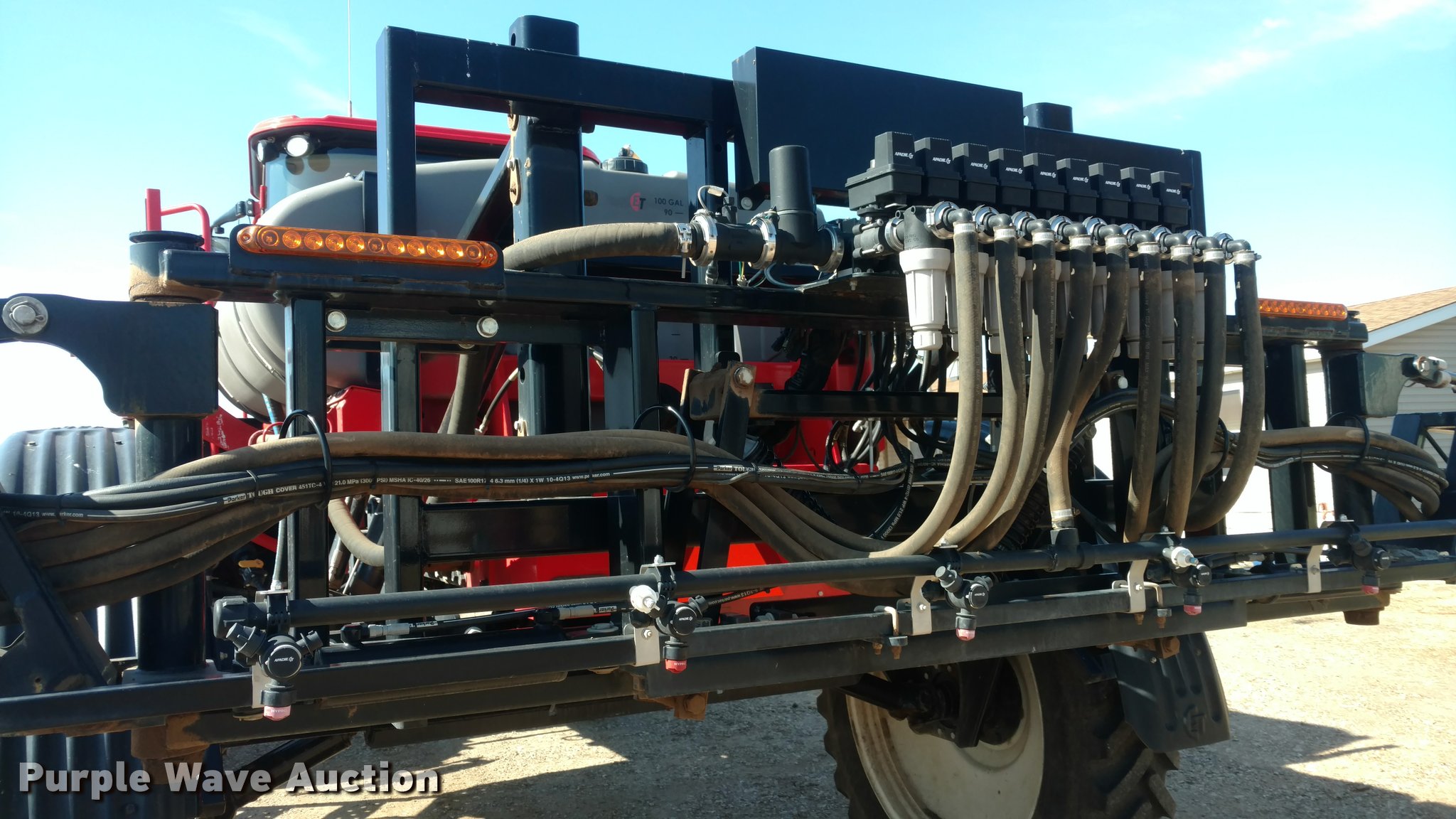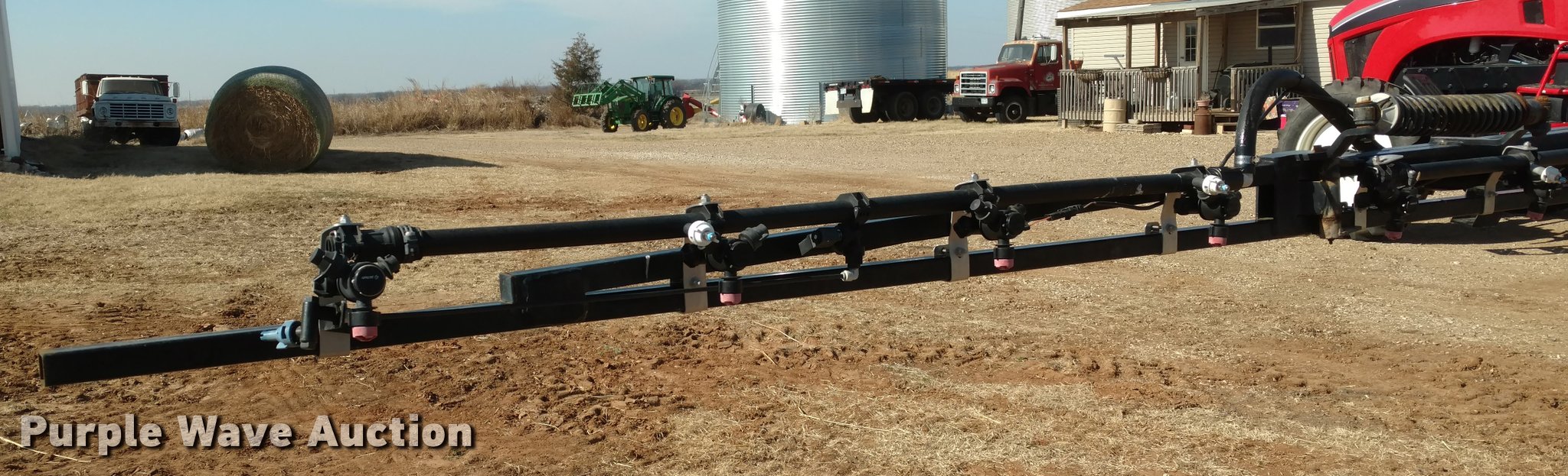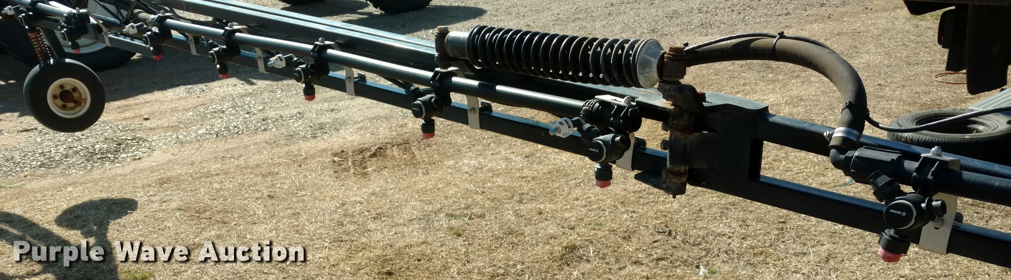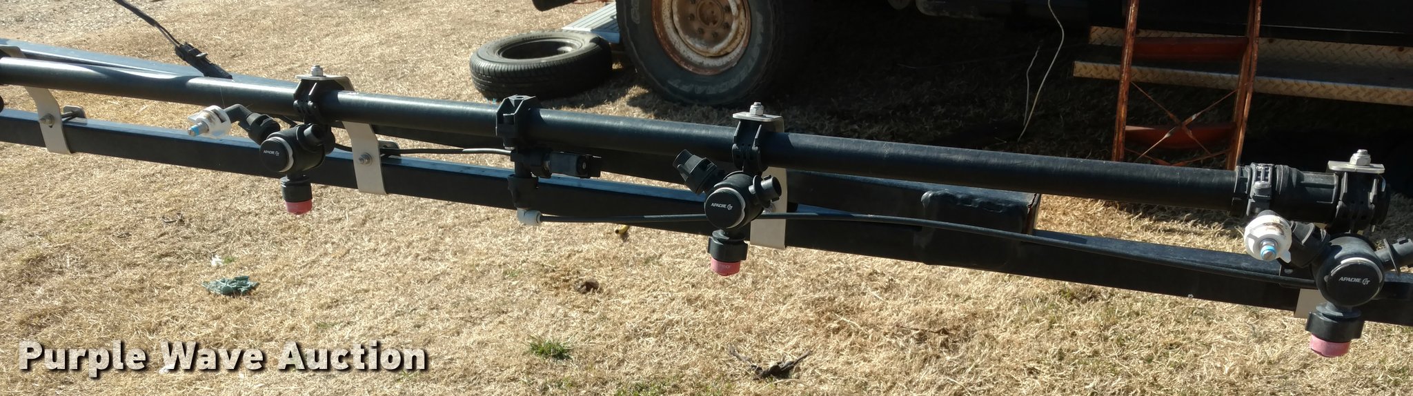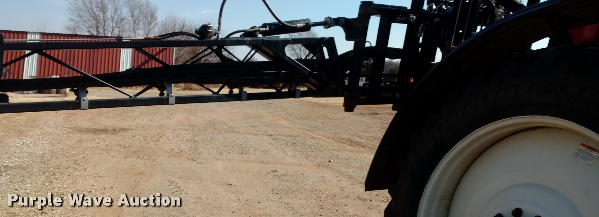 2014 Apache AS720 self-propelled applicator. 618 hours on meter, Cummins turbo diesel engine 160 HP, Powershift transmission 4F-1R gears, Mechanical drive, 750 gallon poly solution tank, Poly chemical eductor tank, Rinse tank, Clean water tank, 60/90'W boom (9) boom sections, Hydraulic boom fold, Hydraulic height control, Raven auto boom, Raven Accu-boom, Three-way nozzle bodies, 20" nozzle spacing, AC and heat, AM/FM, Suspension seat, Rotary beacon, Work lights, Raven Invisio Pro monitor, Raven GPS receiver, Raven hydraulic auto steer, Hydraulic ladder, Fenders, 380/80R38 row crop tires, Serial 9140440. Birdzell Farms. Winfield, KS 67156