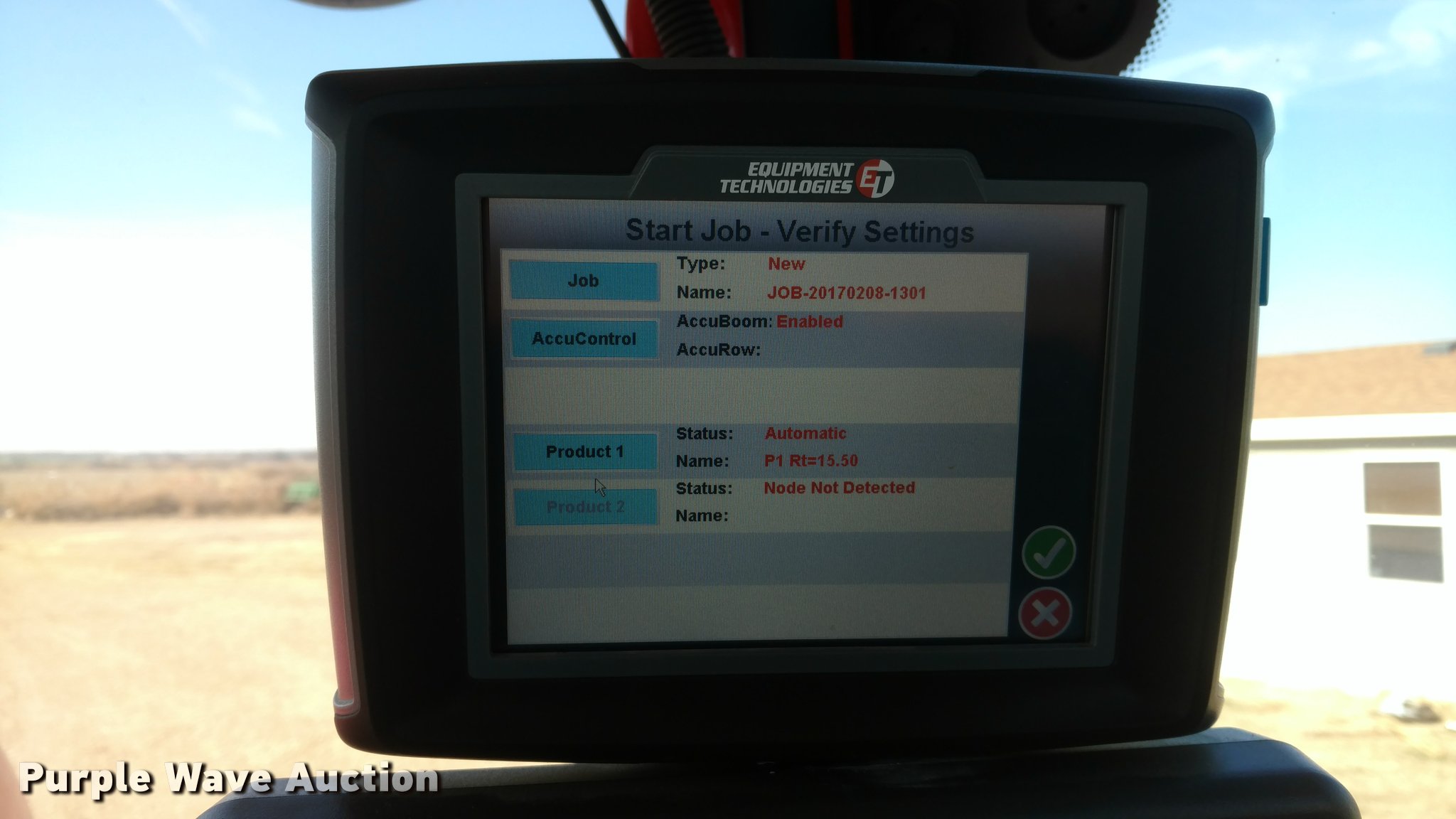 Purple Wave is selling a used Applicator Self Propelled in Kansas. This item is a 2014 Apache AS720 self-propelled applicator with the following: 618 hours on meter, Cummins turbo diesel engine, 160 HP, Powershift transmission, 4F-1R gears, Mechanical drive, 750 gallon poly solution tank, Poly chemical eductor tank, Rinse tank, Clean water tank, 60/90'W boom, (9) boom sections, Hydraulic boom fold, Hydraulic height control, Raven auto boom, Raven Accu-boom, Three-way nozzle bodies, 20" nozzle spacing, AC and heat, AM/FM, Suspension seat, Rotary beacon, Work lights, Raven Invisio Pro monitor, Raven GPS receiver, Raven hydraulic auto steer, Hydraulic ladder, Fenders, 380/80R38 row crop tires, Serial 9140440