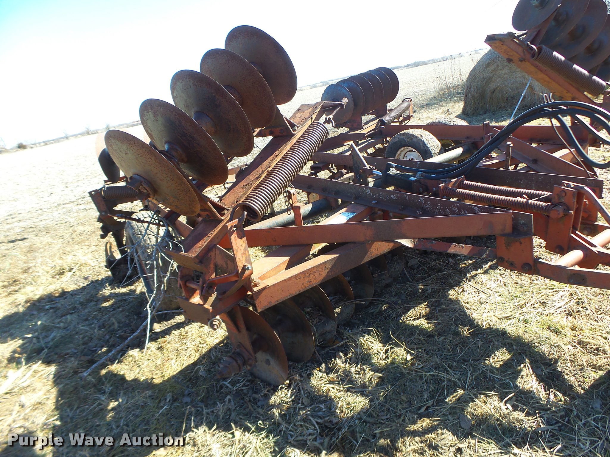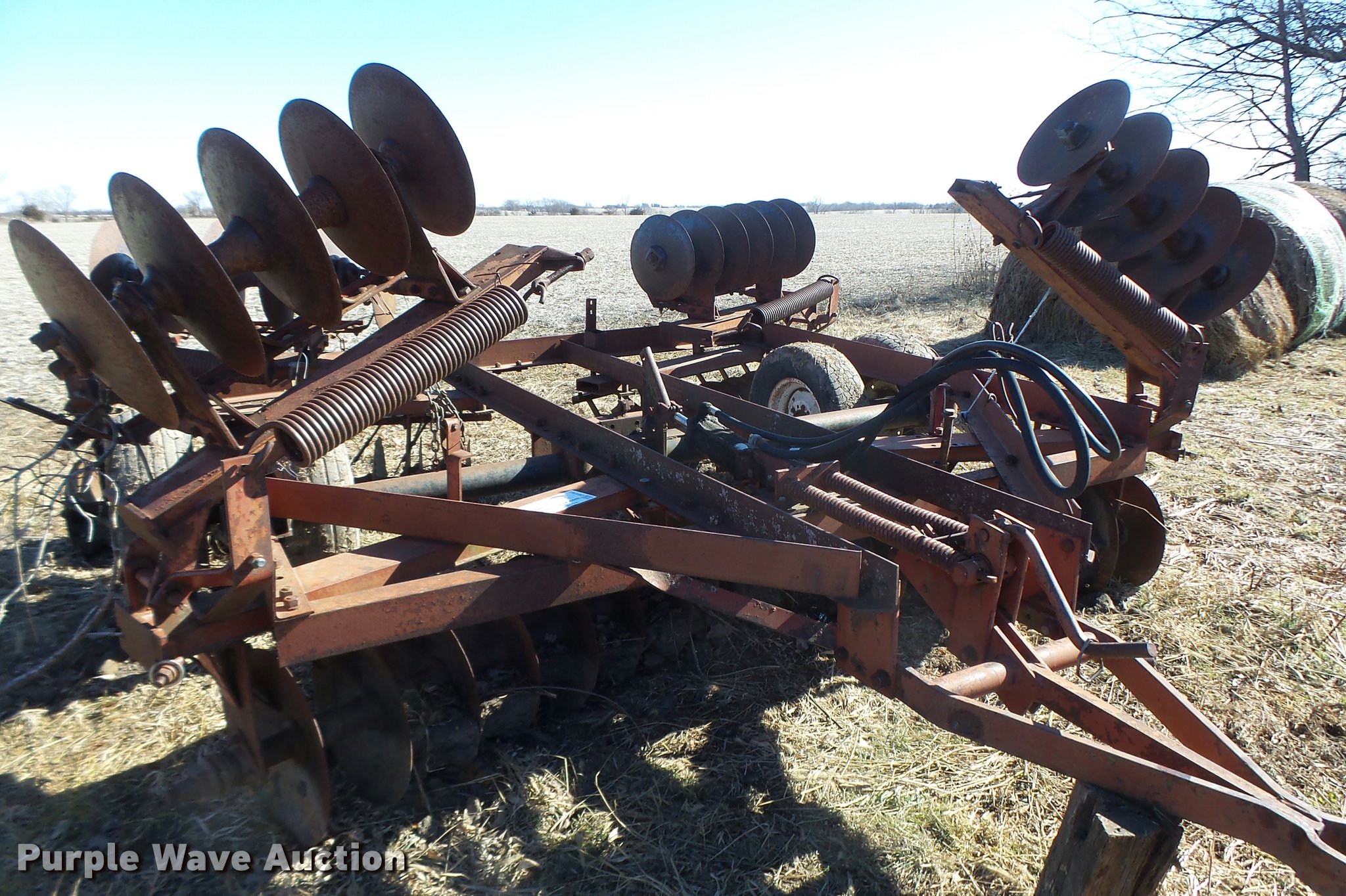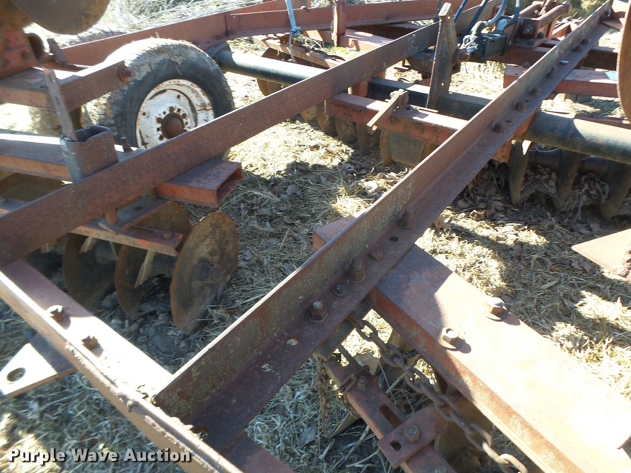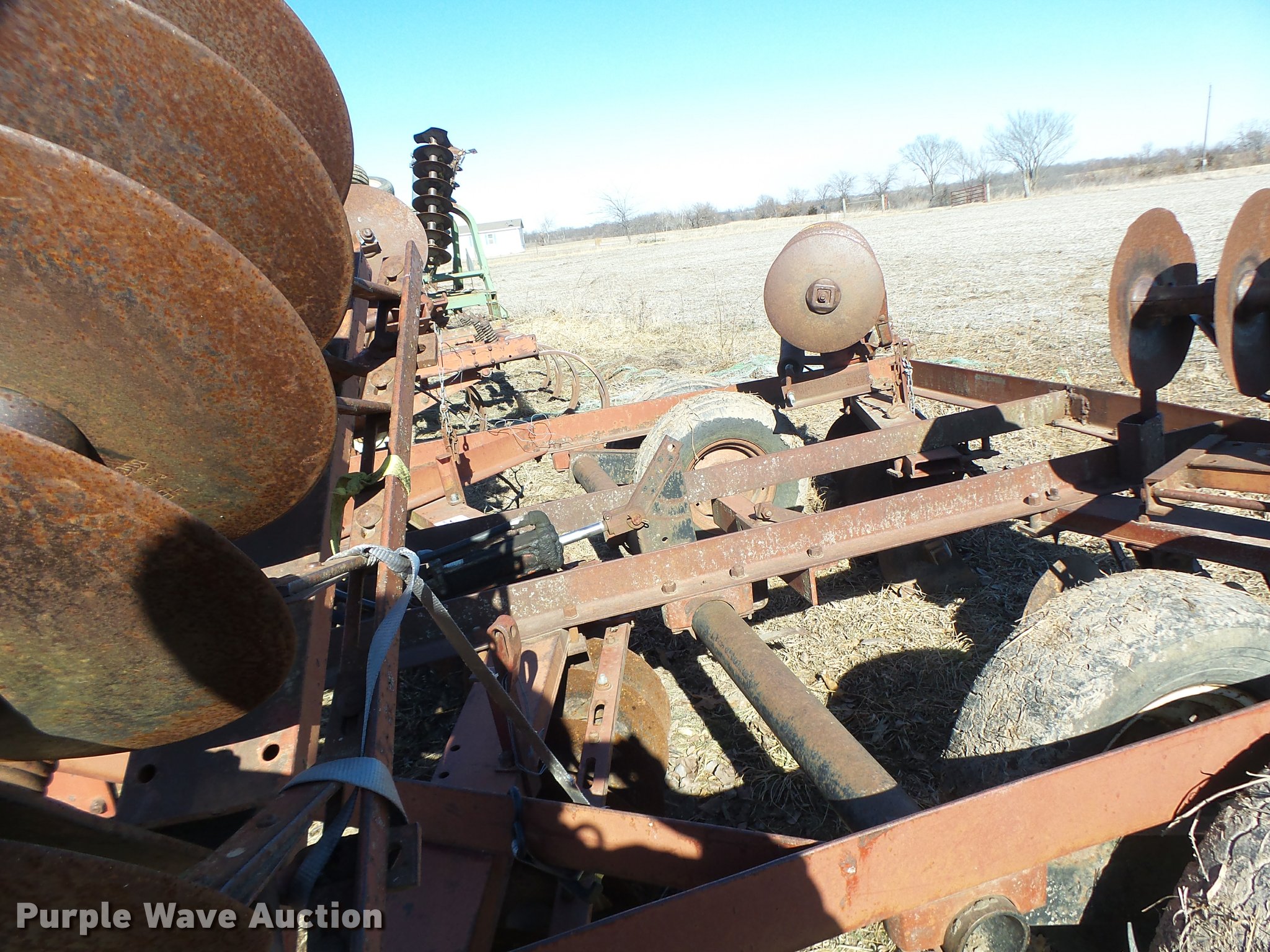 Purple Wave is selling a used Disk in Missouri. This item is a Disk with the following: 16" diameter front disks, 16" diameter rear disks, Disk scrapers, Hydraulic lift, Pin/clevis hitch