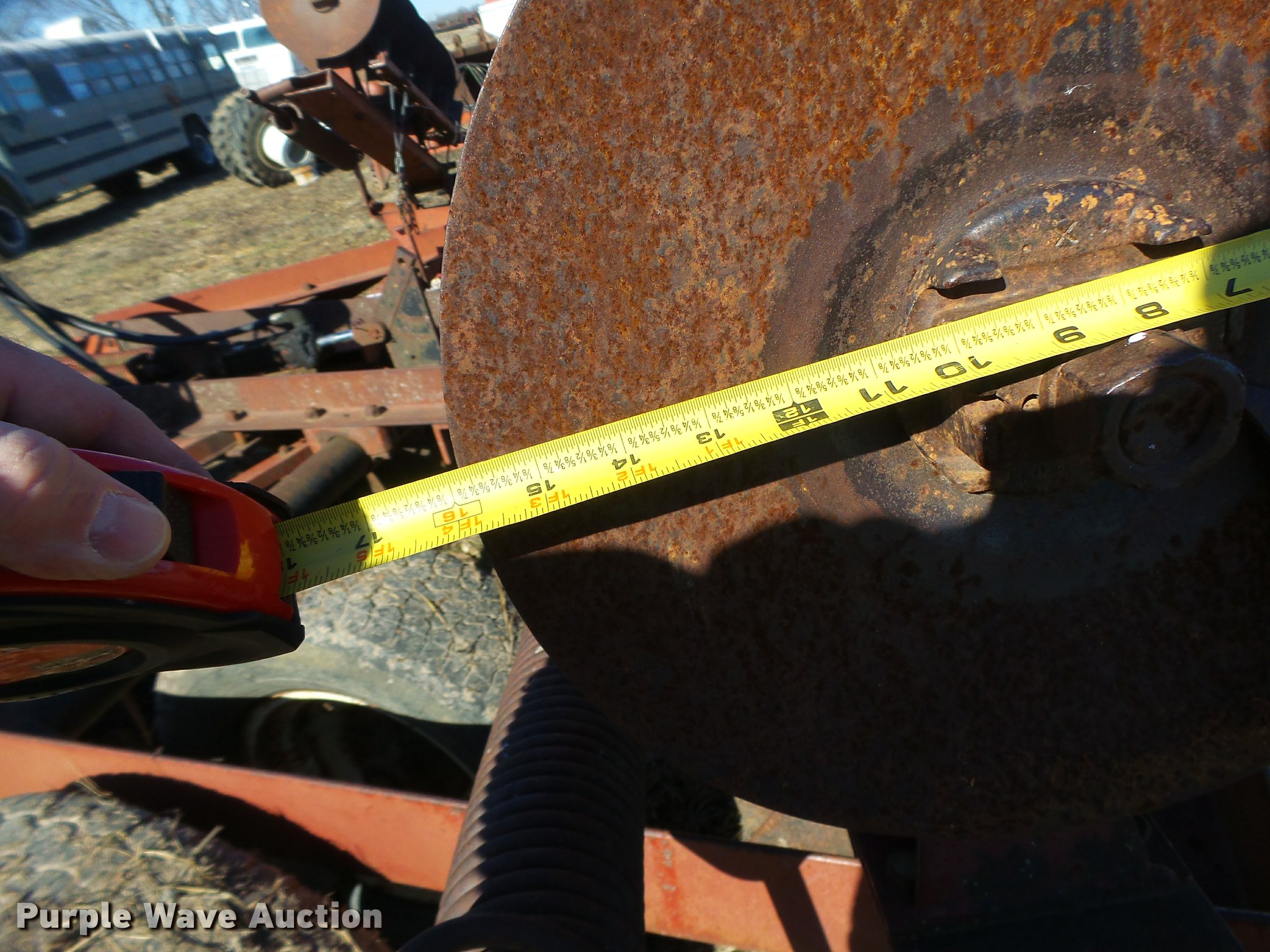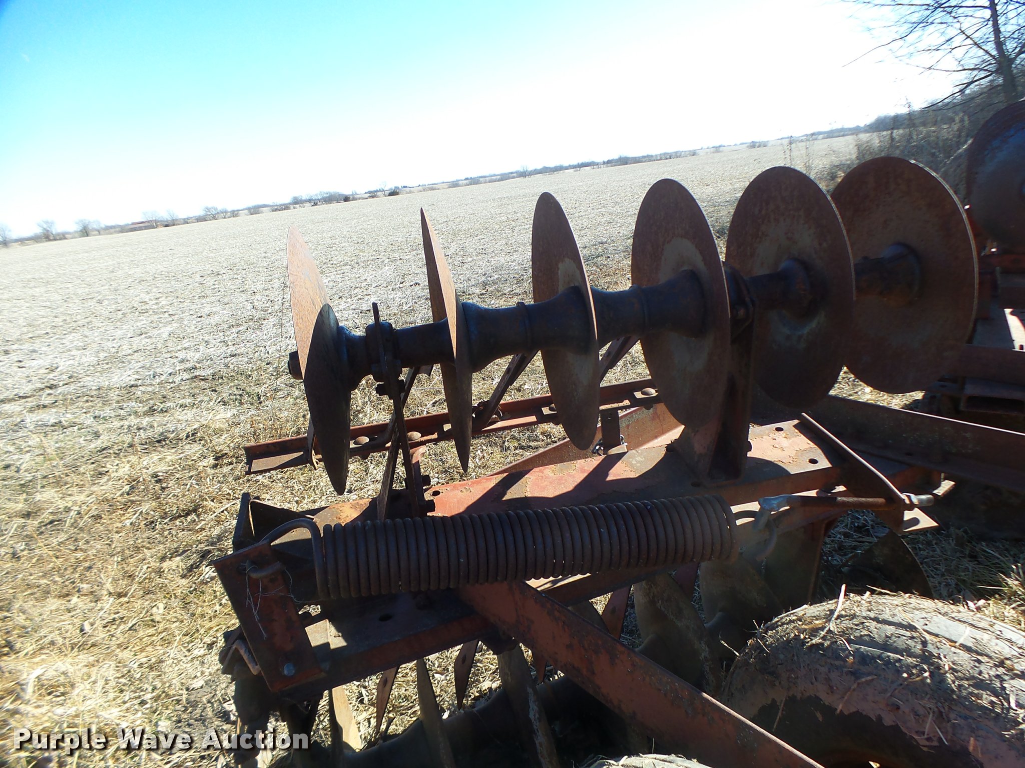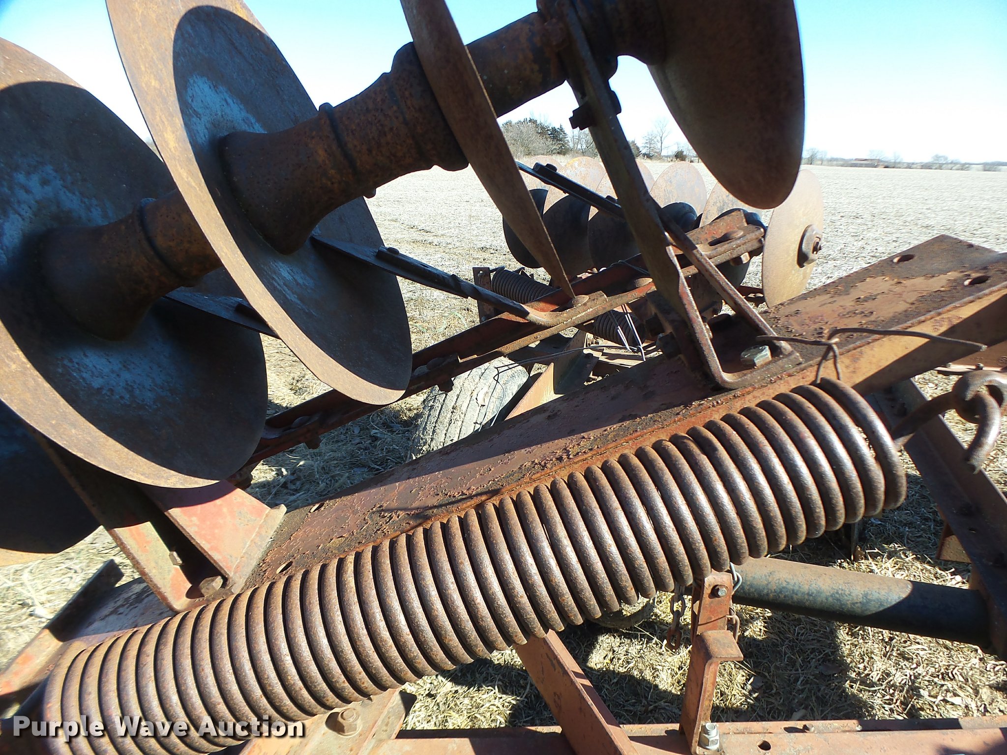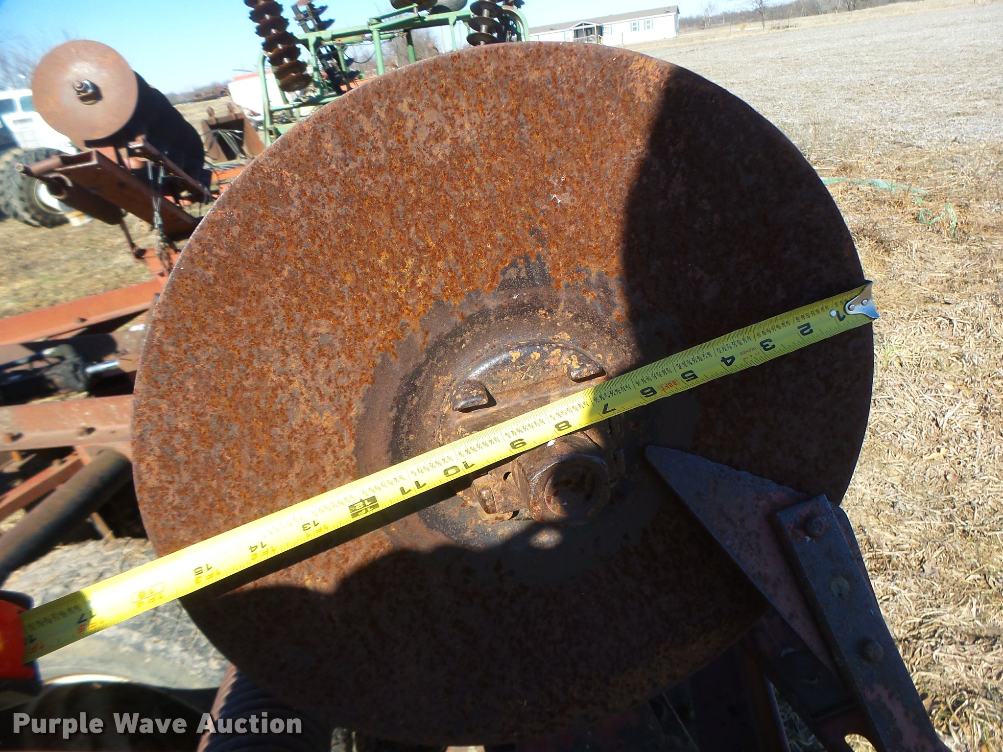 Purple Wave is selling a used Disk in Missouri. This item is a Disk with the following: 16" diameter front disks, 16" diameter rear disks, Disk scrapers, Hydraulic lift, Pin/clevis hitch