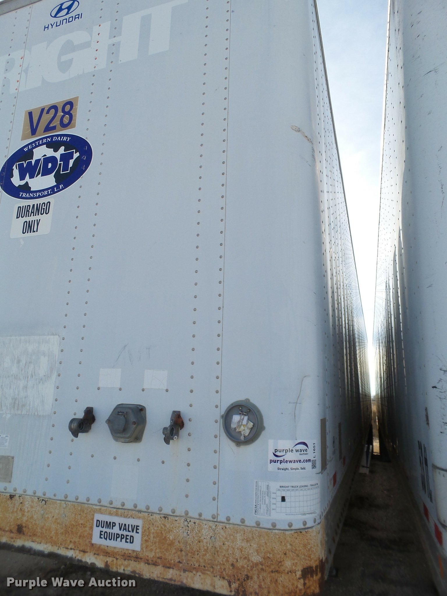 2002 Hyundai dry van trailer. 53'L x 102"W, Wood deck Needs to be repaired, Fifth wheel plate, Dual leg landing gear, Air suspension, Air brakes, Tandem axle, 295/75R22.5 tires, Unit# V28. Missouri title. 3H3V532C22T005063. Western Dairy Transport. 2 NM-467. Portales, NM 88130