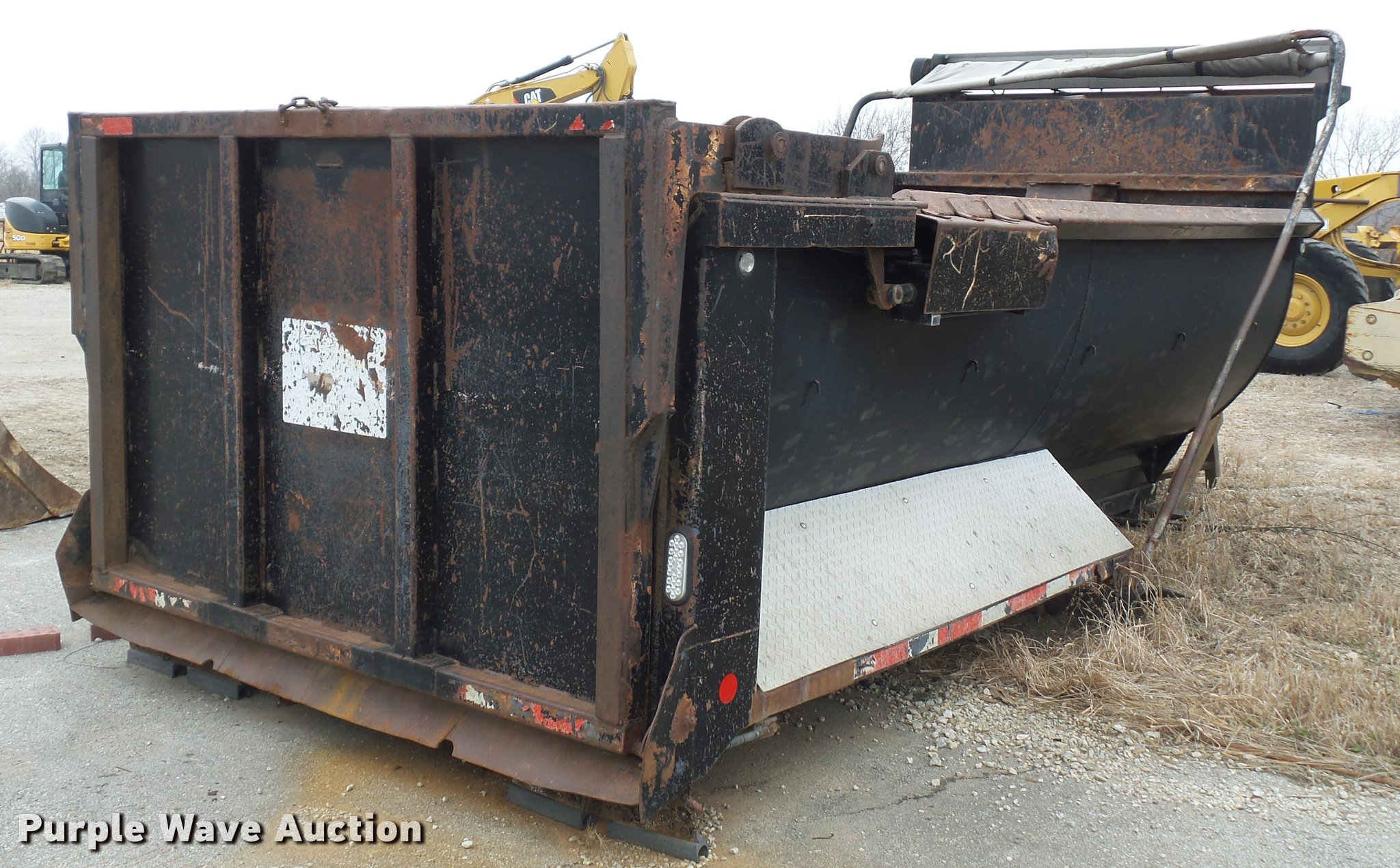 Purple Wave is selling a used Truck Part and Attach. in Missouri. This item is a Barrel dump bed with the following: 16'L x 8'W, 5' side height, Air operated end gate, Tarp cover, Hoist, Hydraulic tank, Rear fenders