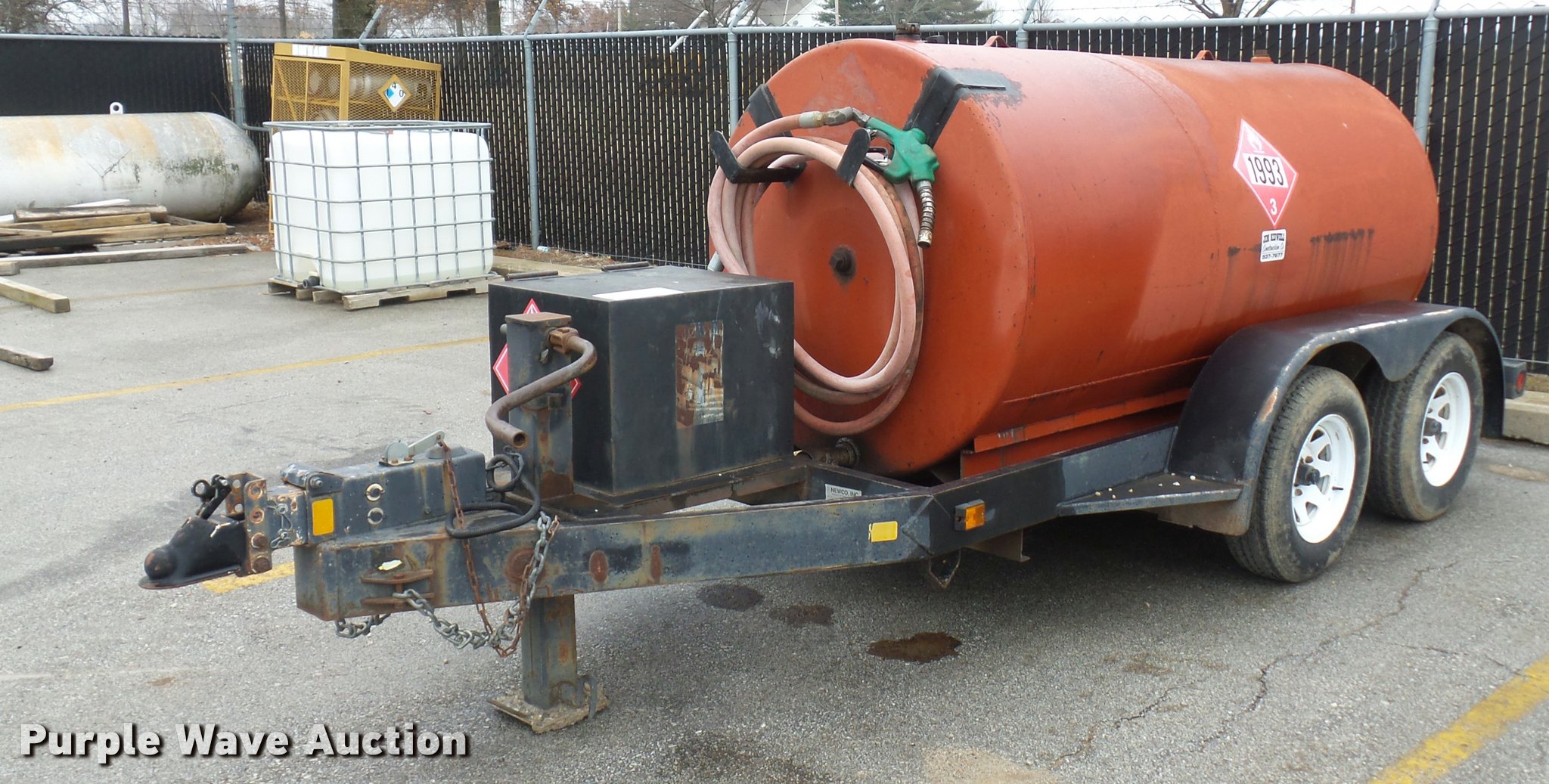 Purple Wave is selling a used Fuel and Lube in Missouri. This item is a Newco fuel tank trailer with the following: 700 gallon capacity, Single cylinder gas engine, Manual jack, Tandem axle, 205/75R14 tires