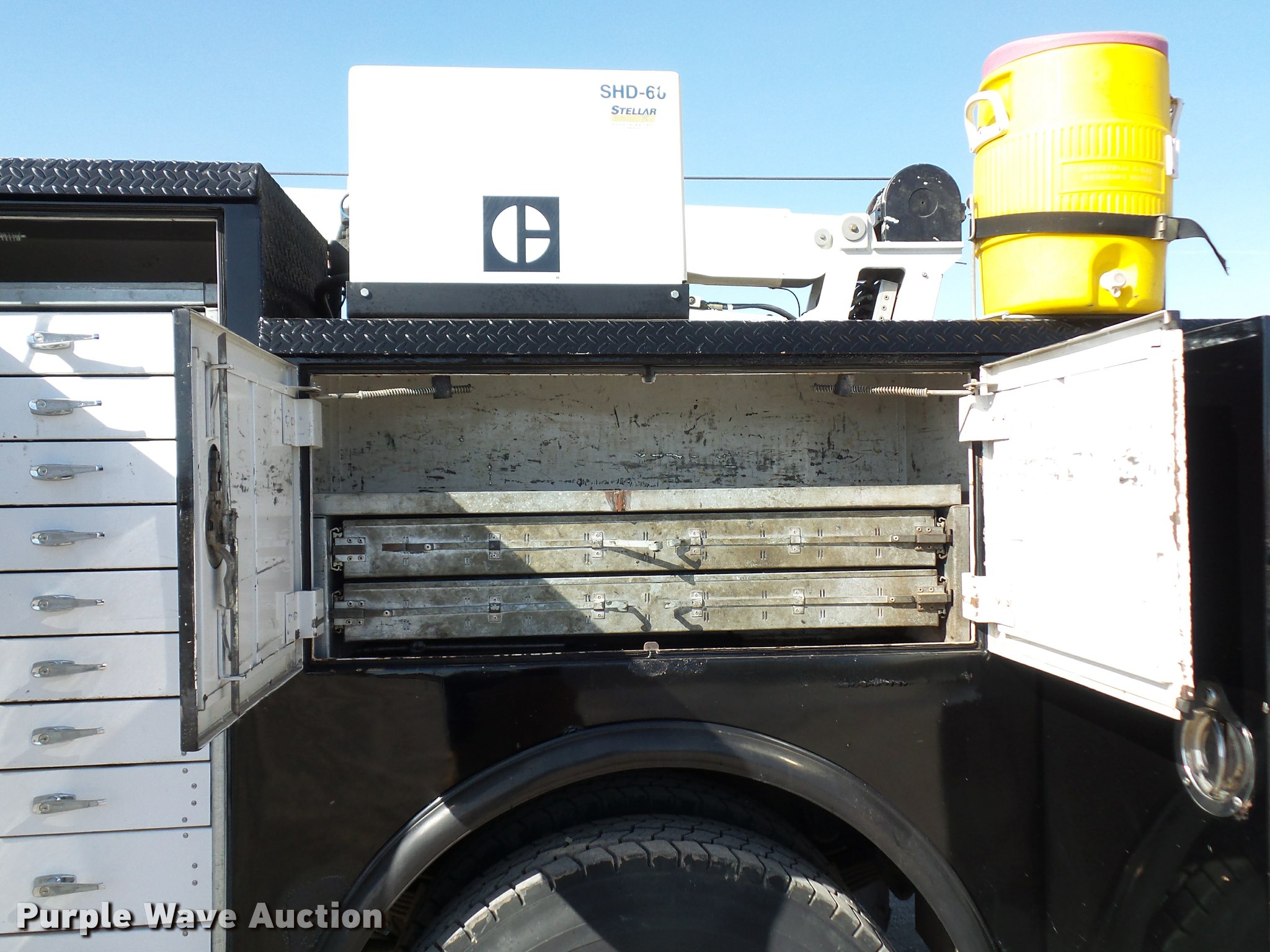 Purple Wave is selling a used Service Truck in Missouri. This item is a 2004 Kenworth T300 service truck with the following: 213,654 miles on odometer, Caterpillar C7 7.2L L6 turbo diesel engine, Spicer seven speed manual transmission, Single axle, AC and heat, Cruise, AM/FM/CD, Air suspension seat, Work lights, Air horn, PTO, Caseco C2T-12060 service bed, Stellar 10620 crane hoist, Serial HCH03276, Stellar SHD-60 hydraulic air compressor, Miller Trailblazer 301D welder/generator, 235 hours on meter, Diesel engine, 120/240V output, 10,000 watt generator, Serial 031210154, Single fuel tank, Receiver hitch, Spring suspension, Air brakes, 11R22.5 tires, GVWR 30,280 lbs