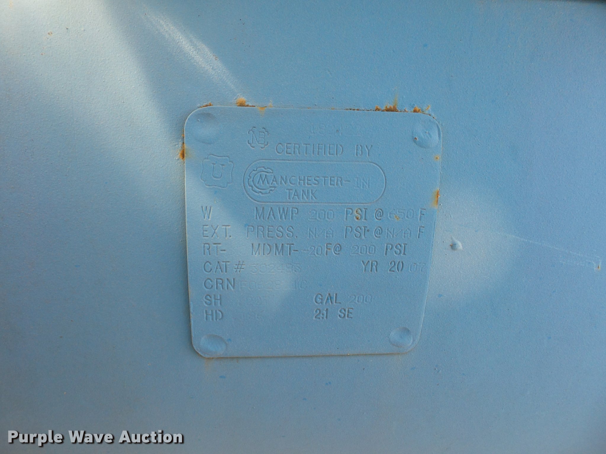 Purple Wave is selling a used Tanks in Kansas. This item is a (2) air tanks with the following: 200 gallon capacity