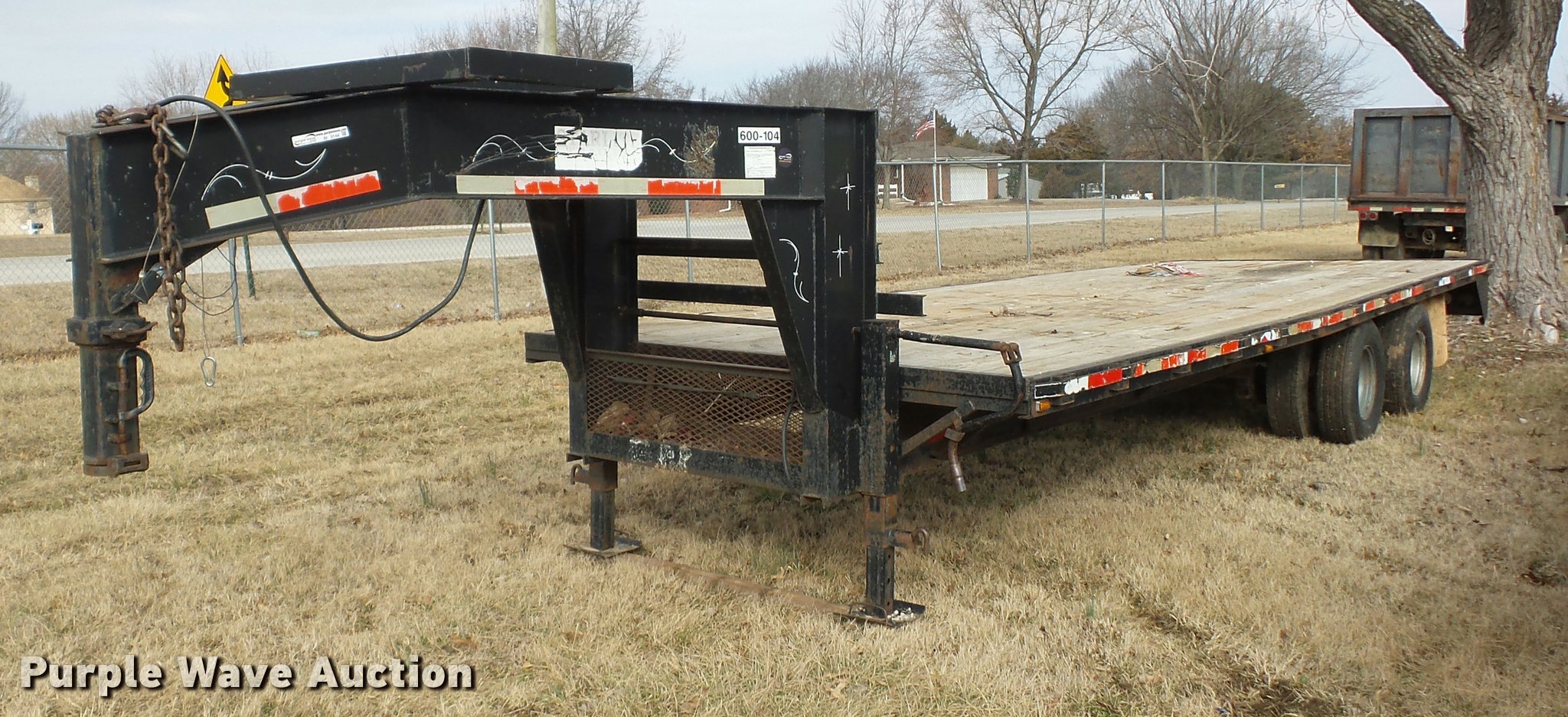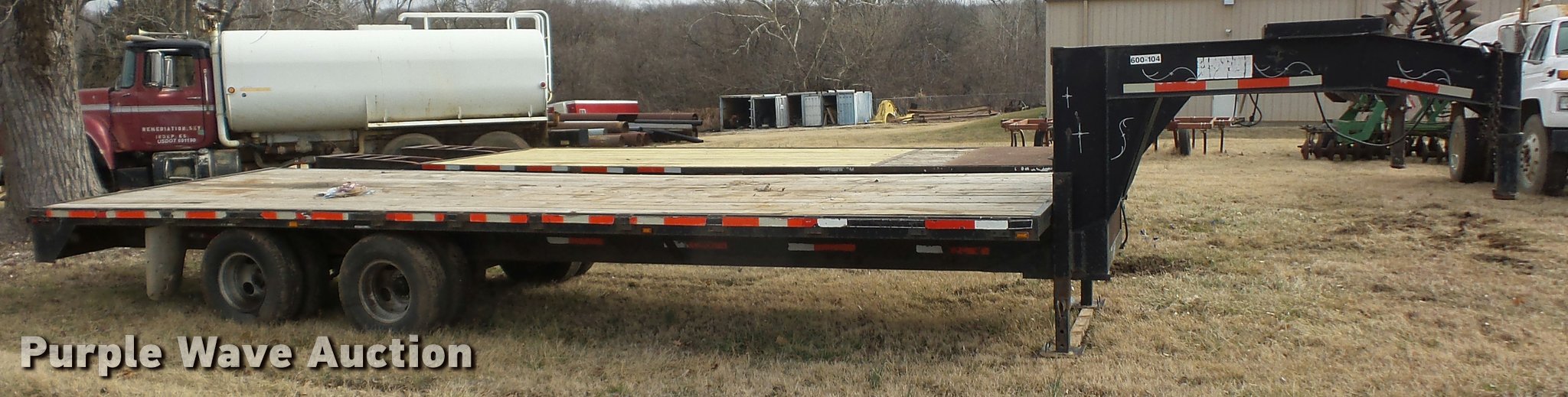 Purple Wave is selling a used Car or Utility Trailer in Kansas. This item is a 1999 Starlite equipment trailer with the following: 25'L x 101"W deck, Stake pockets, Gooseneck hitch, Manual jack, Spring suspension, Electric brakes, Tandem axle, 235/85R16 tires, Unit# 600-104