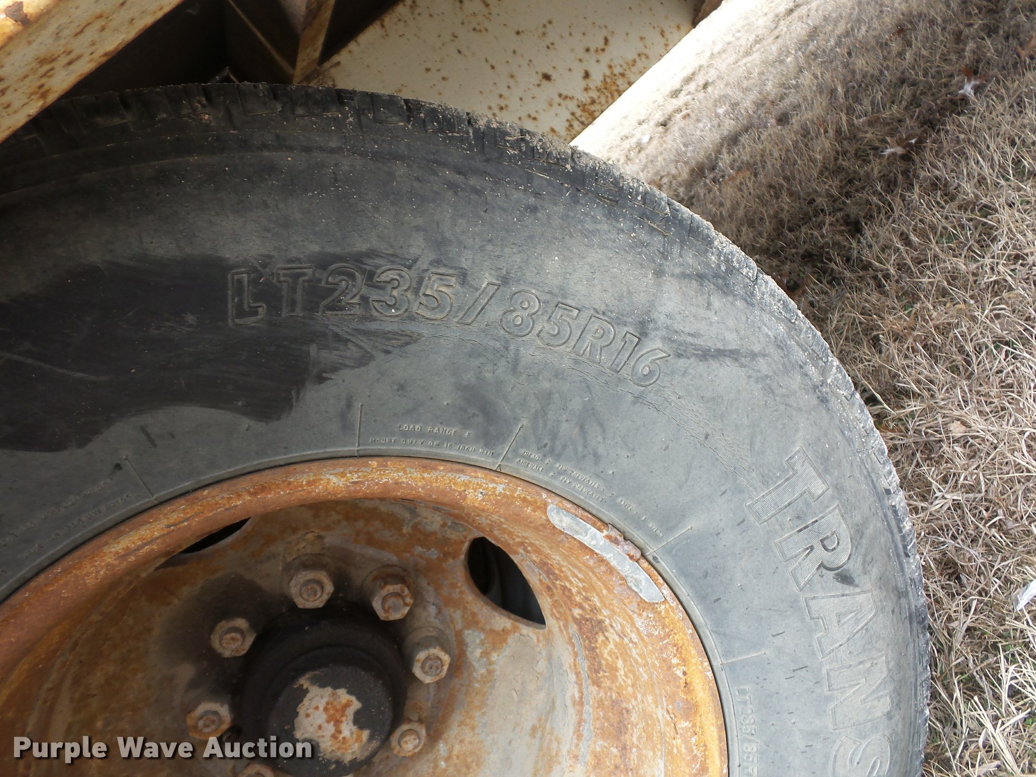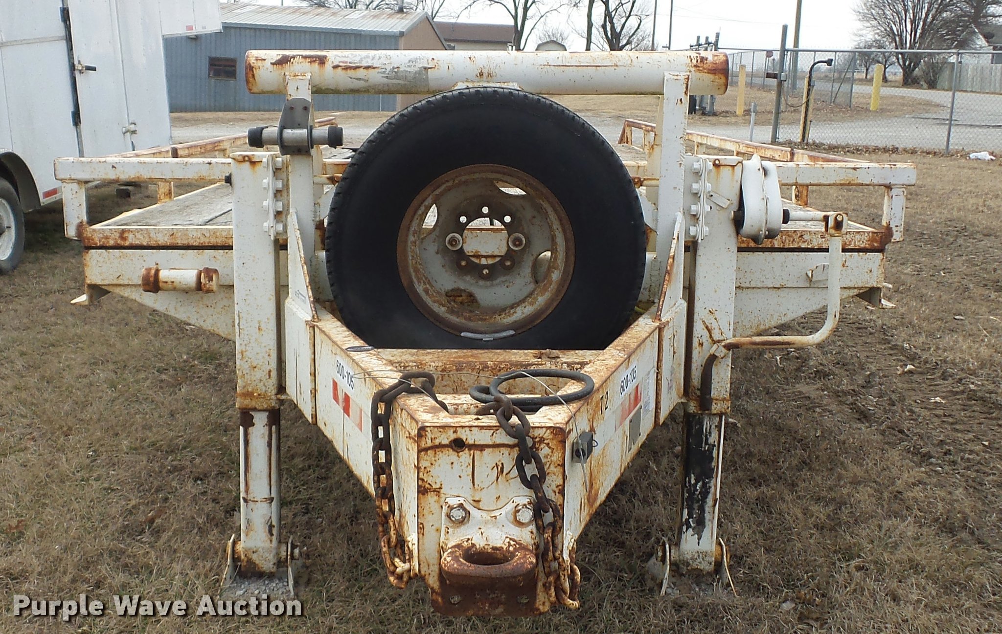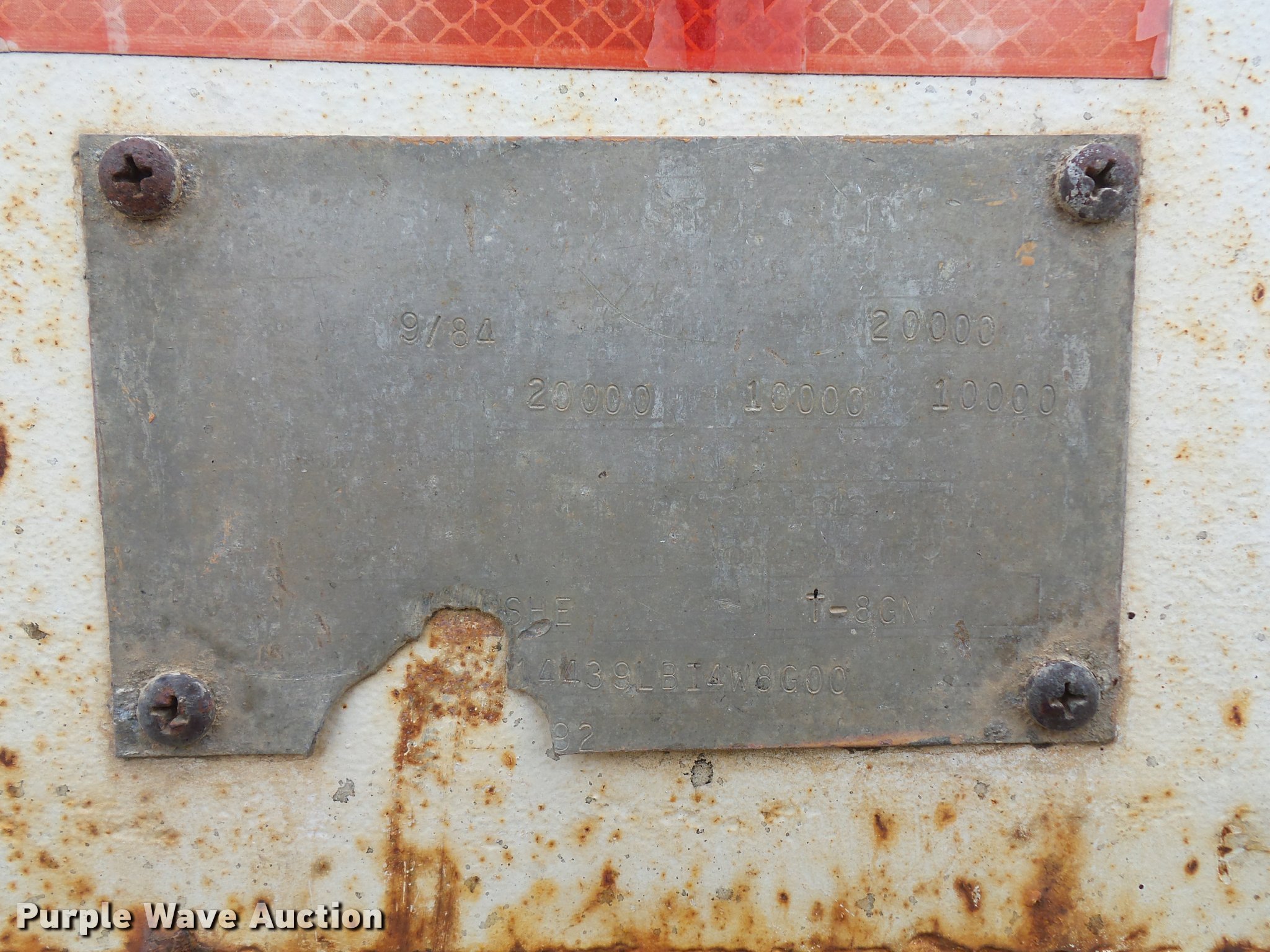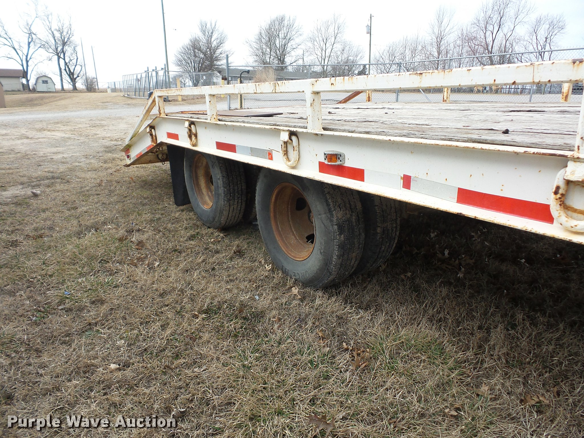 Purple Wave is selling a used Equip. Trailer in Kansas. This item is a 1984 Belshe T-8G equipment trailer with the following: 20'L x 91"W deck, 5.5'L dovetail, 5'L x 18"W ramps, D-ring tie downs, Pintle hitch, Manual jack, Spring suspension, Electric brakes, Tandem axle, 235/85R16 tires, GVWR 20,000 lbs, GAWR 10,000 lbs
