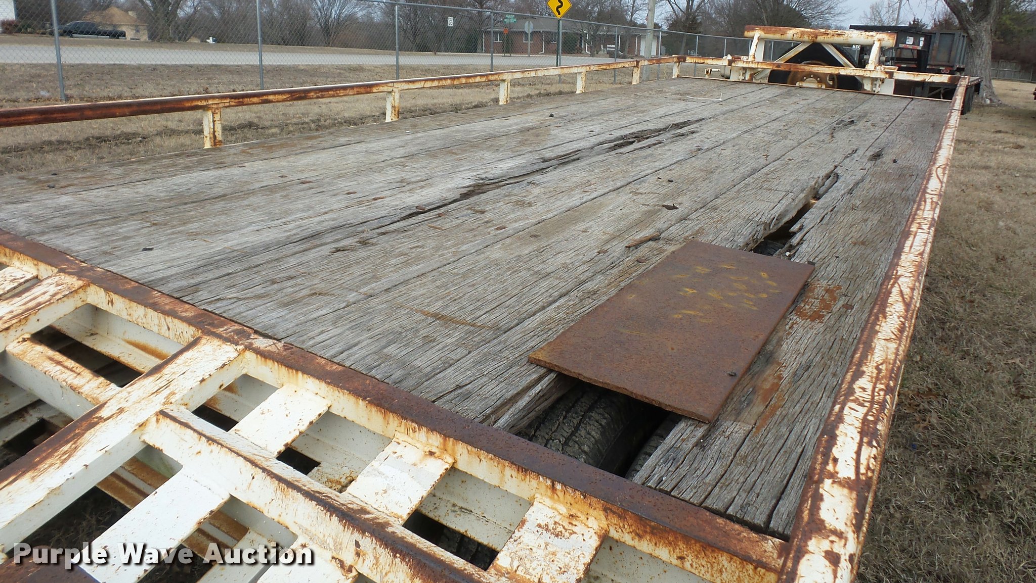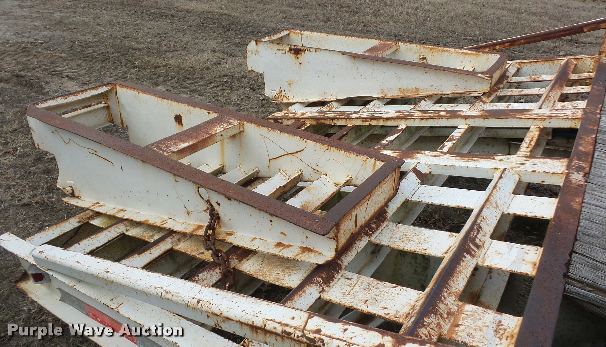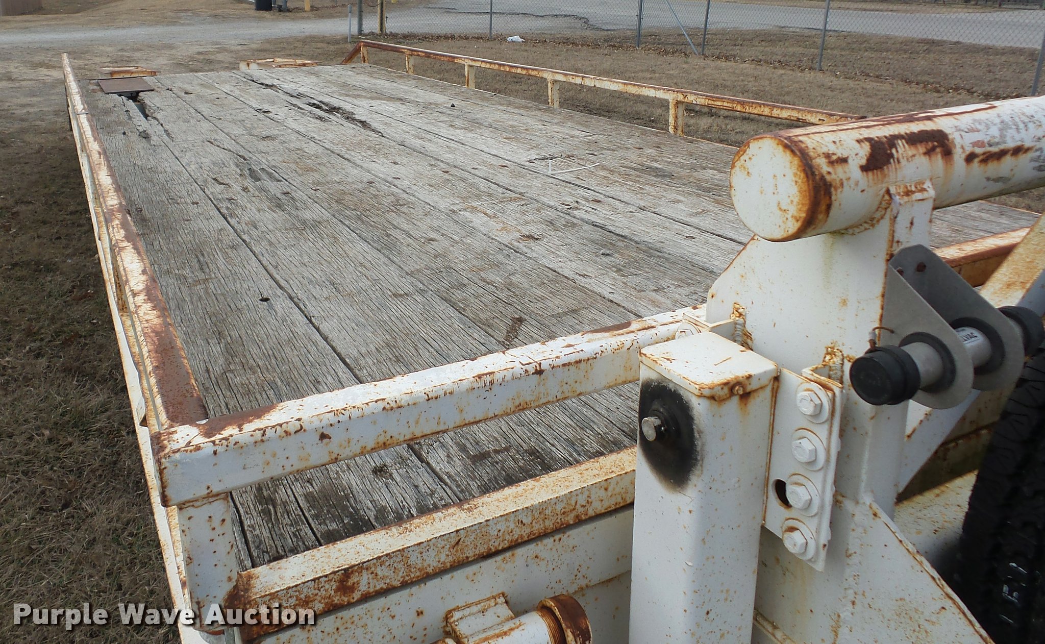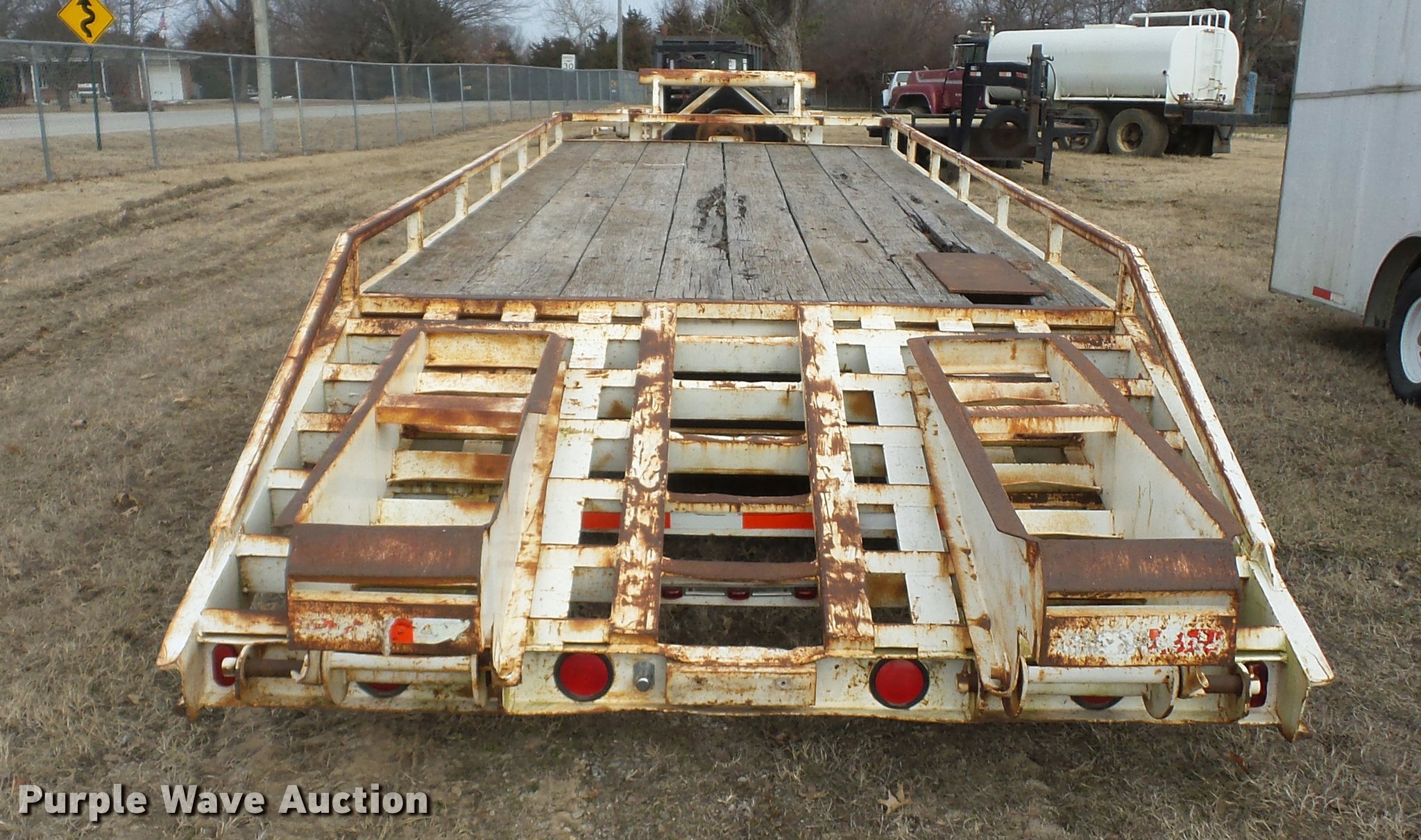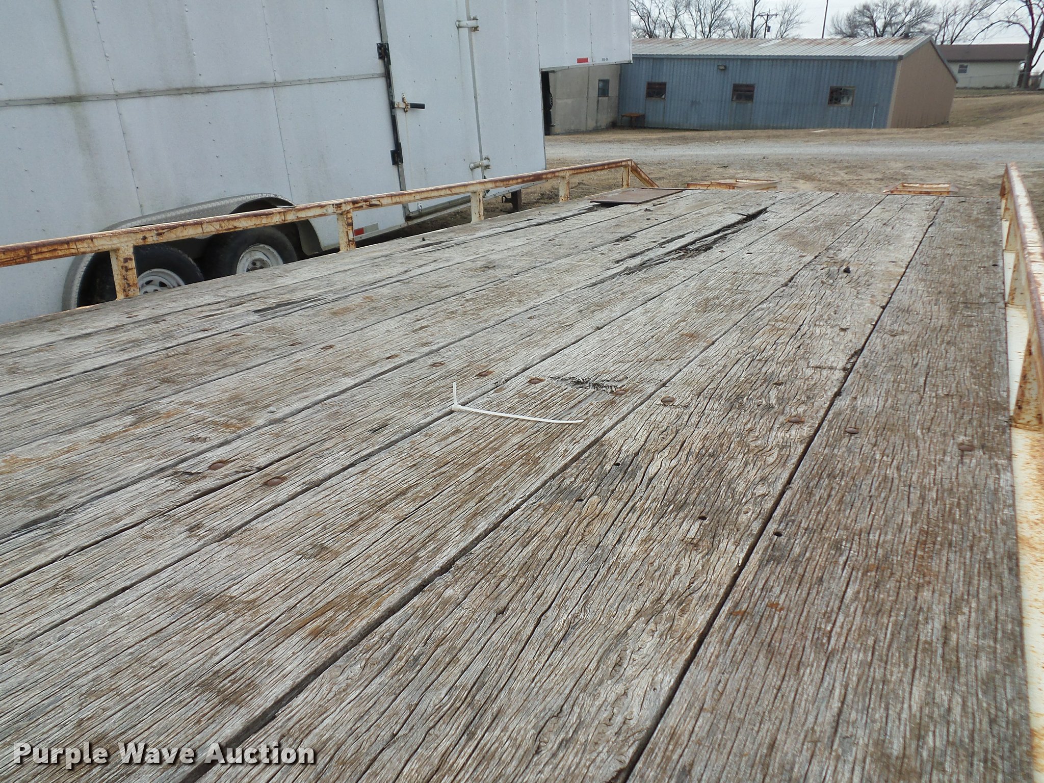 Purple Wave is selling a used Equip. Trailer in Kansas. This item is a 1984 Belshe T-8G equipment trailer with the following: 20'L x 91"W deck, 5.5'L dovetail, 5'L x 18"W ramps, D-ring tie downs, Pintle hitch, Manual jack, Spring suspension, Electric brakes, Tandem axle, 235/85R16 tires, GVWR 20,000 lbs, GAWR 10,000 lbs