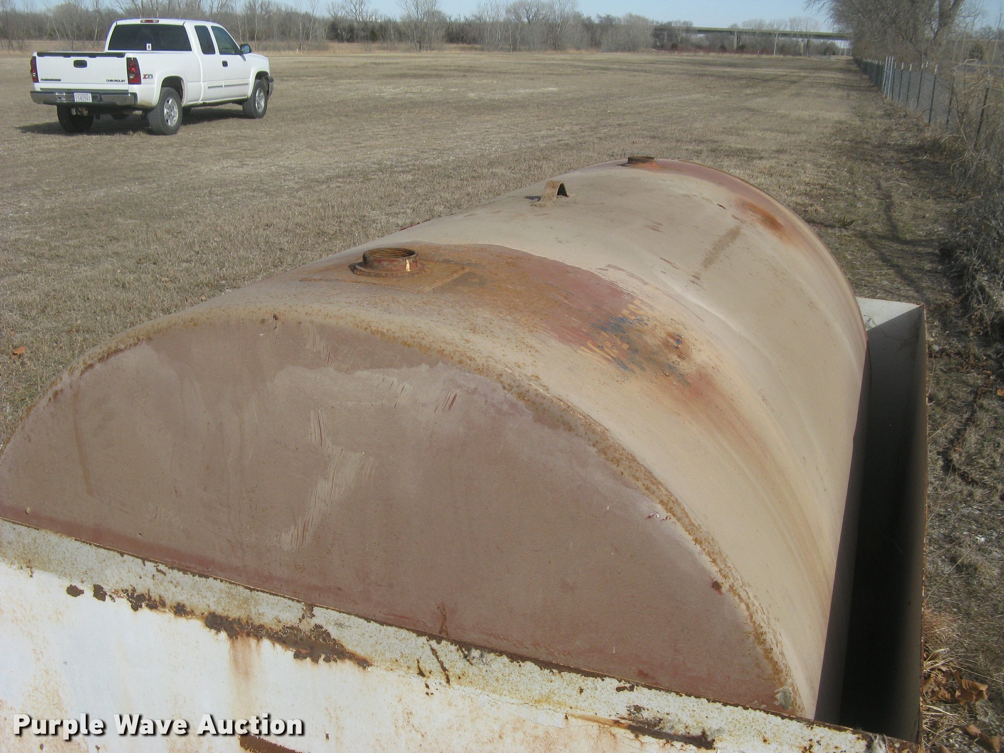 Purple Wave is selling a used Fuel and Lube in Kansas. This item is a Fuel tank with the following: 500 gallon capacity, Steel enclosure, 78"L x 54"W, Removable lid