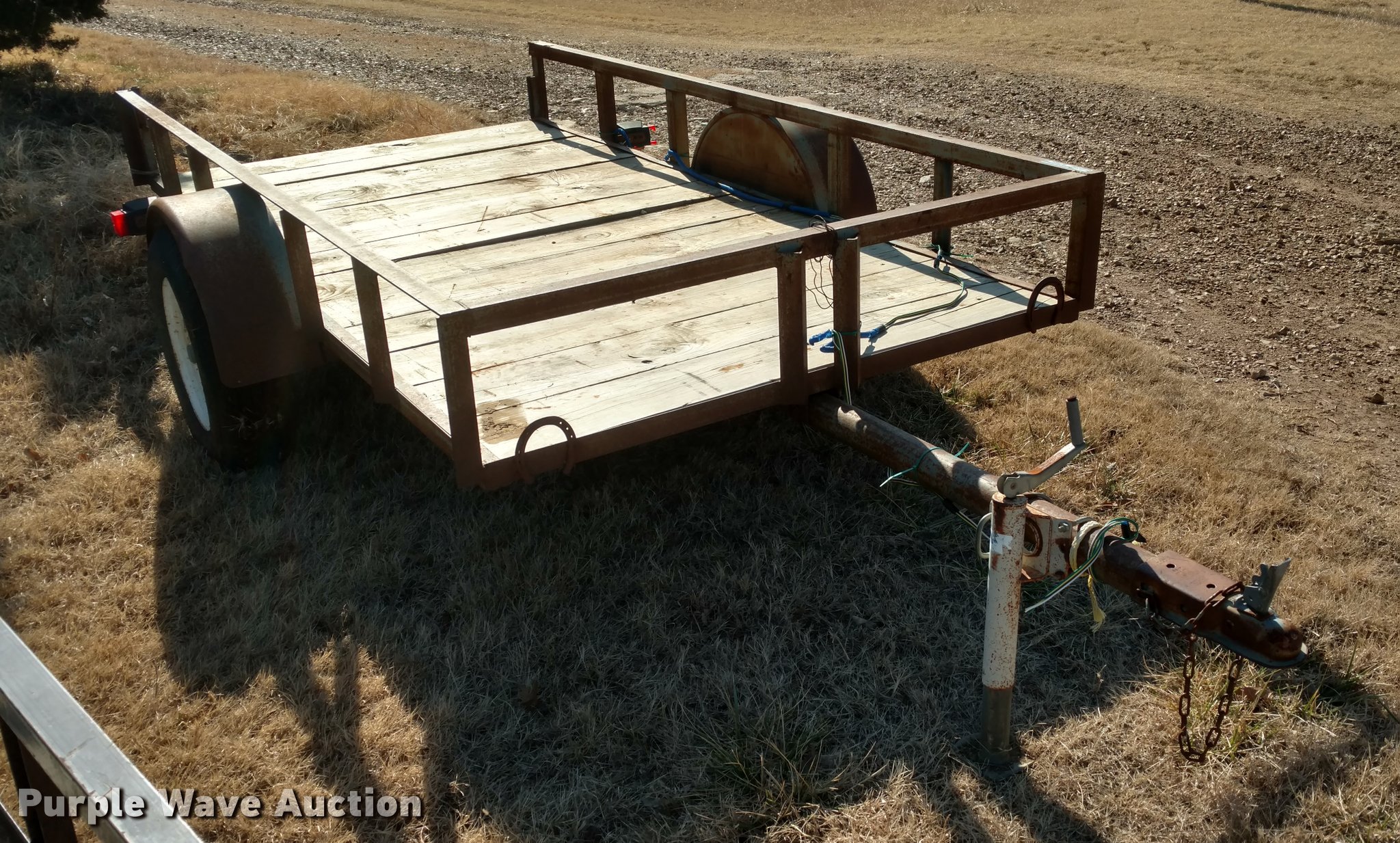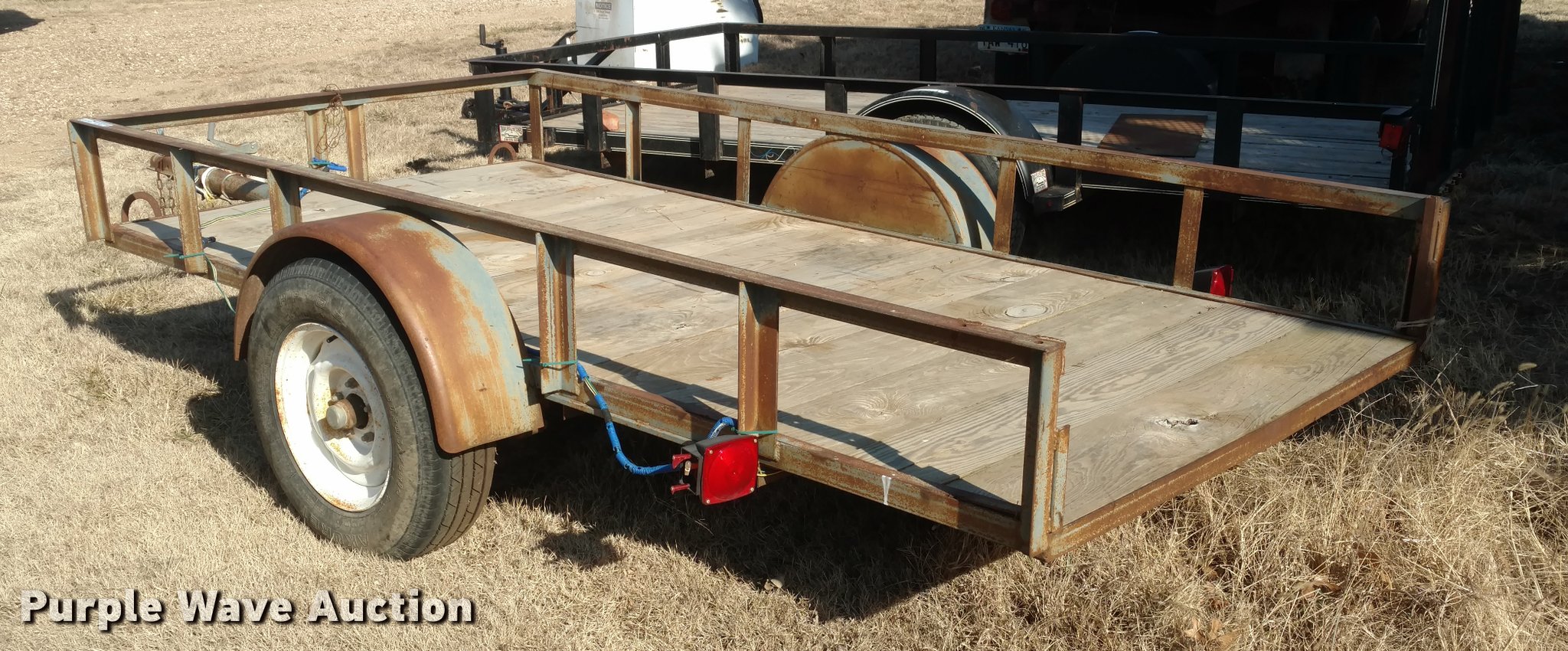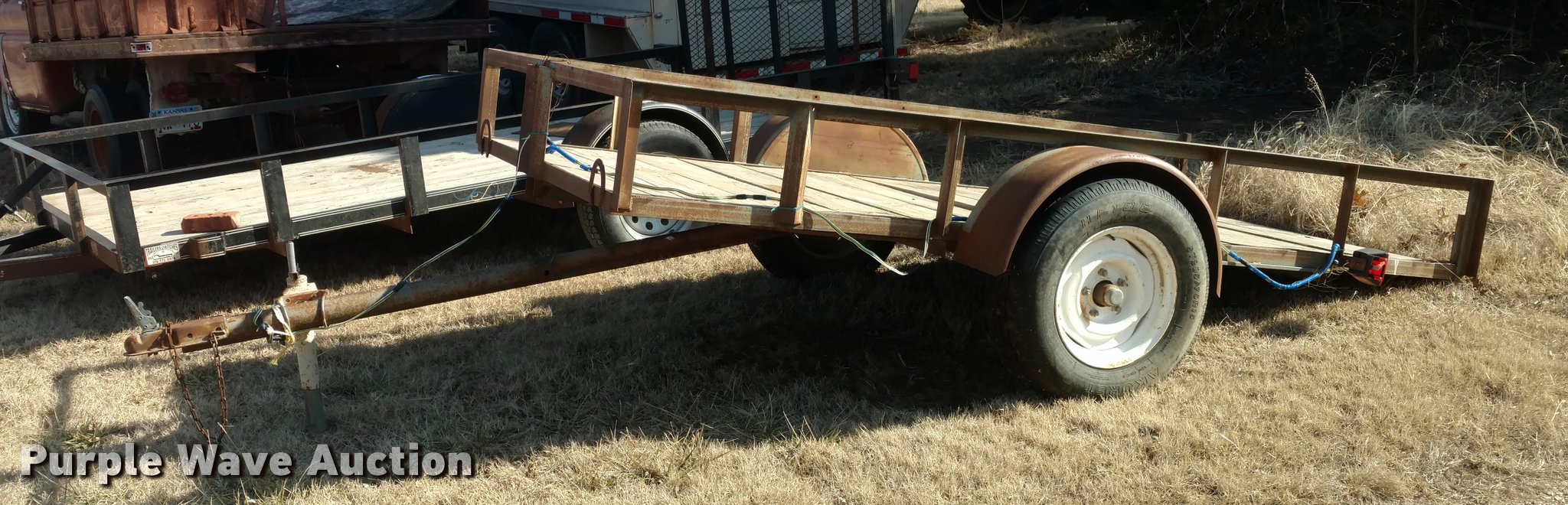Purple Wave is selling a used Car or Utility Trailer in Kansas. This item is a Tilt deck utility trailer with the following: 10'L x 5'W, Single axle, 15" tires, GVWR 1,000 lbs