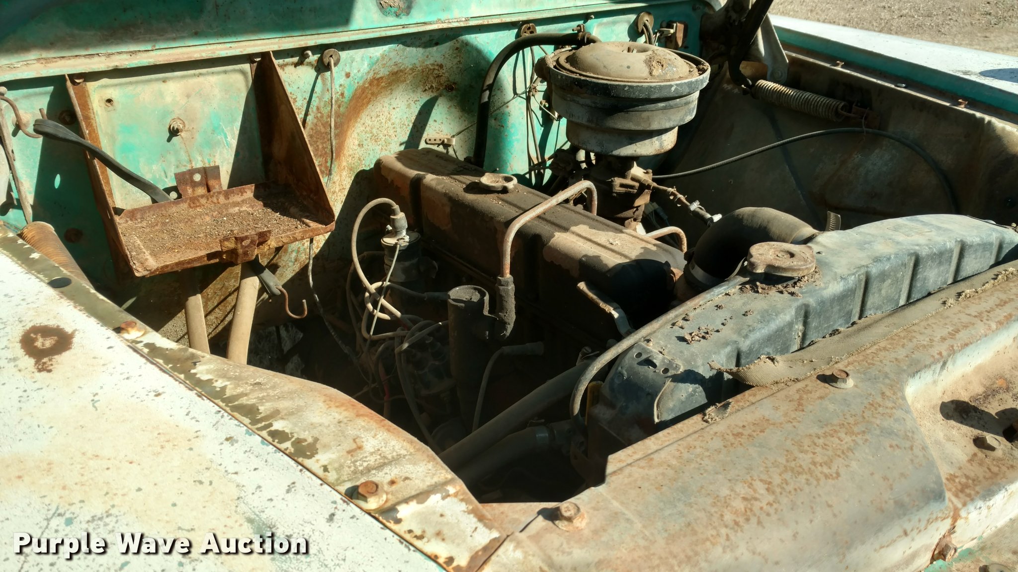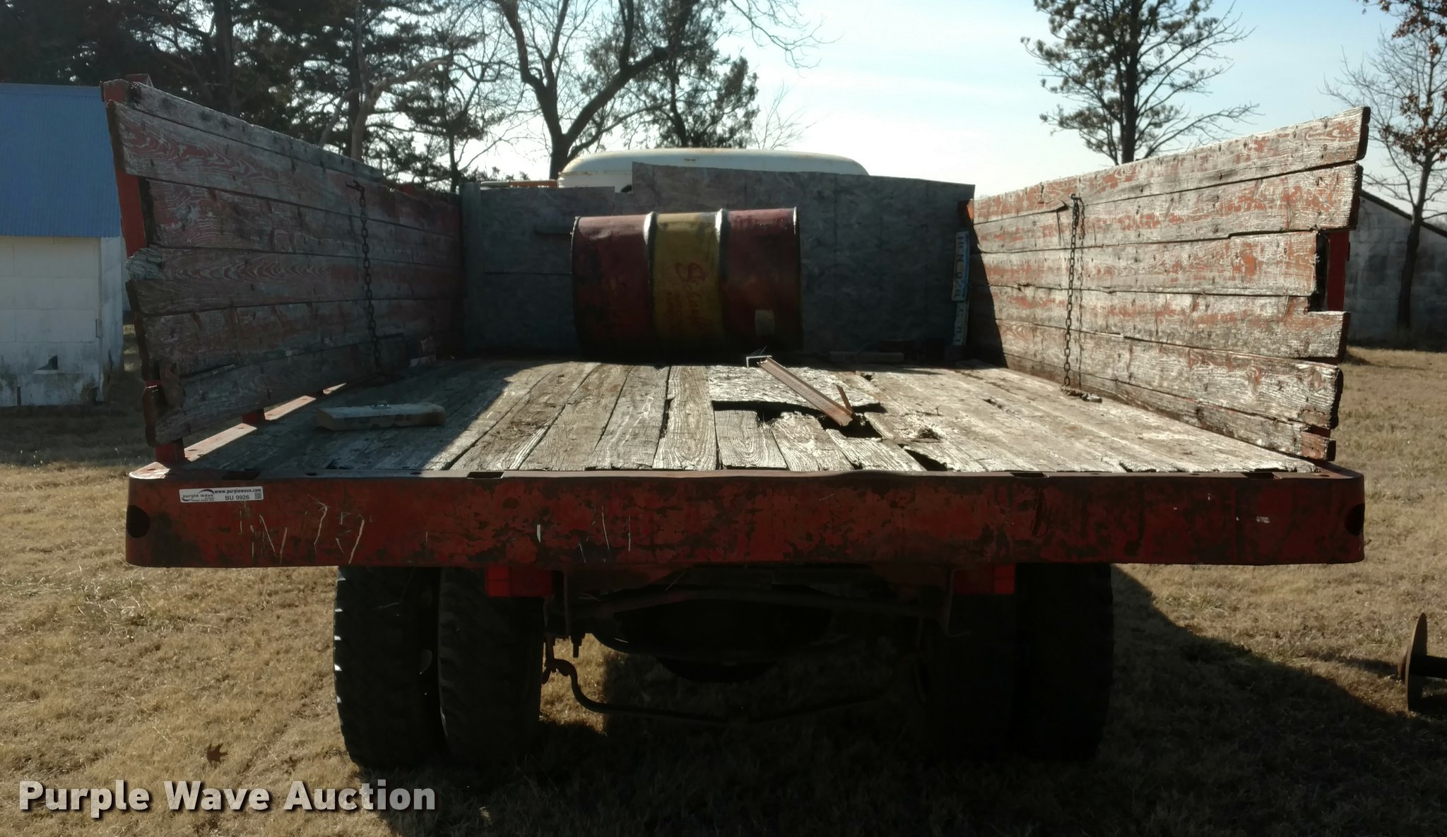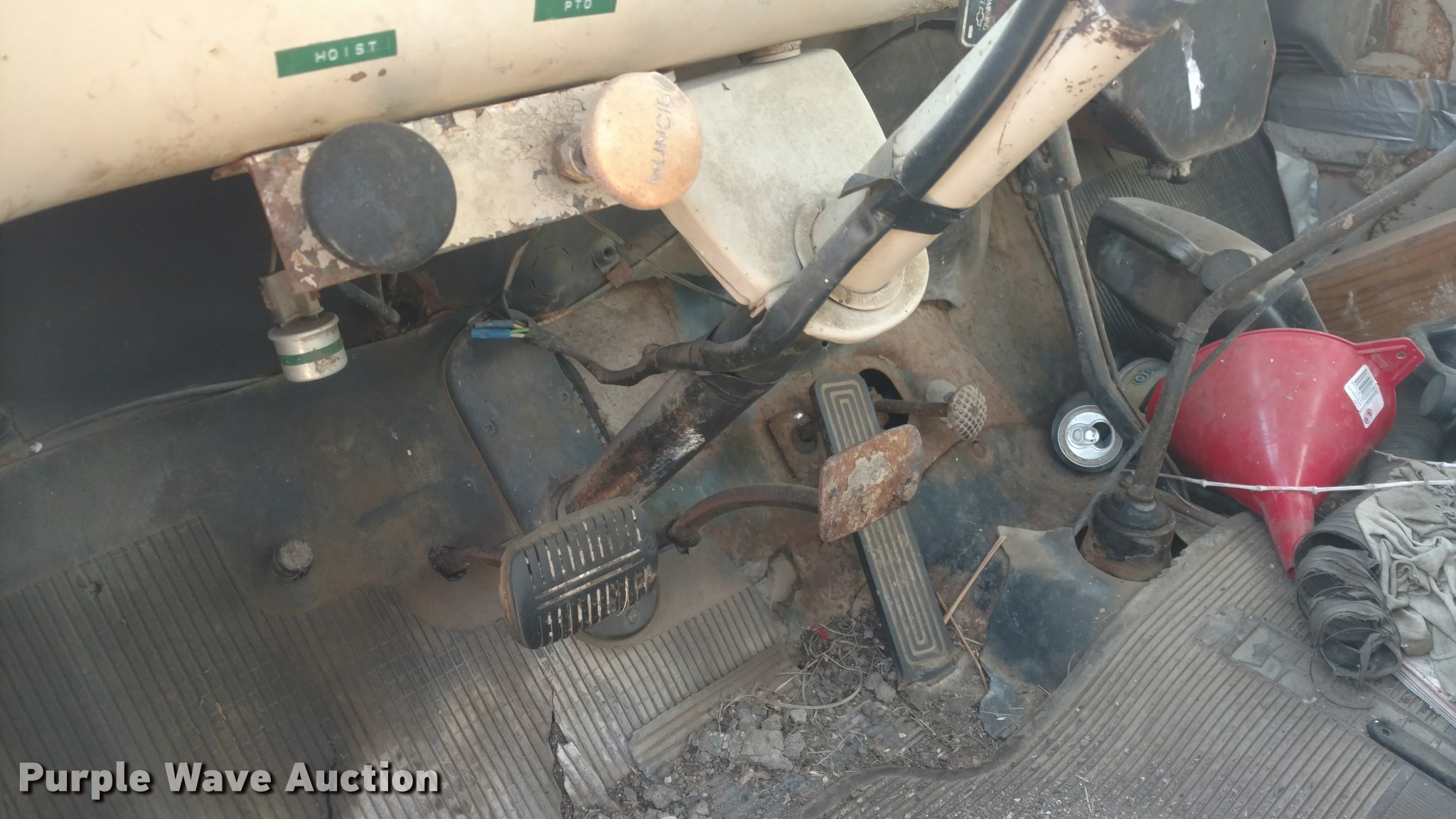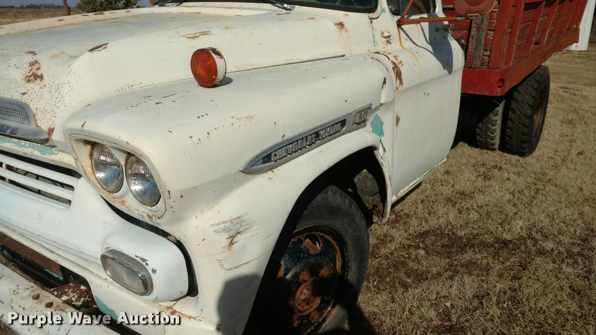 Purple Wave is selling a used Grain Truck in Kansas. This item is a 1959 Chevrolet Viking 60 grain truck with the following: 66,490 miles on odometer, Six cylinder gas engine, Four speed manual transmission, Manual windows and locks, 13.5'L grain bed, Wood floor, Wood sides, Single ram hoist, 7.50-20 front tires, 8.25-20 rear tires, Running when parked two years ago