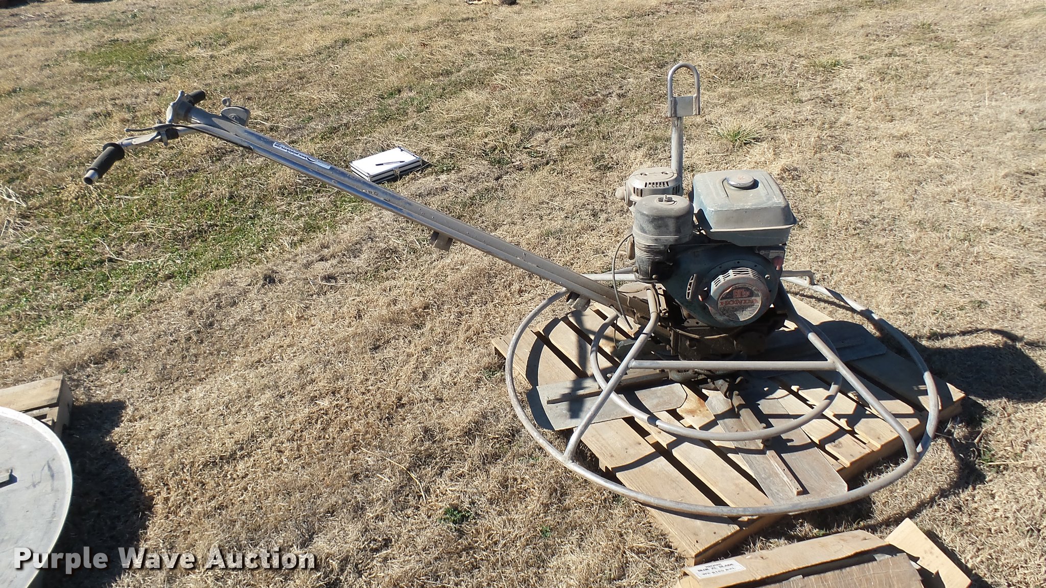 Purple Wave is selling a used Concrete Equip. or Acces. in Kansas. This item is a Bartell power trowel with the following: Honda gas engine, 8.0 HP, (4) blades, 48"W, Blades