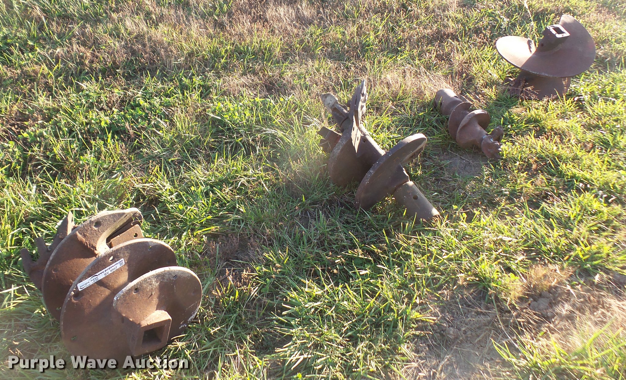 Purple Wave is selling a used Drill or Drilling Rig Attach. in Kansas. This item is a (4) dirt augers with the following: 2.5" box, 24" diameter, 10" diameter, 20" diameter, 18" diameter