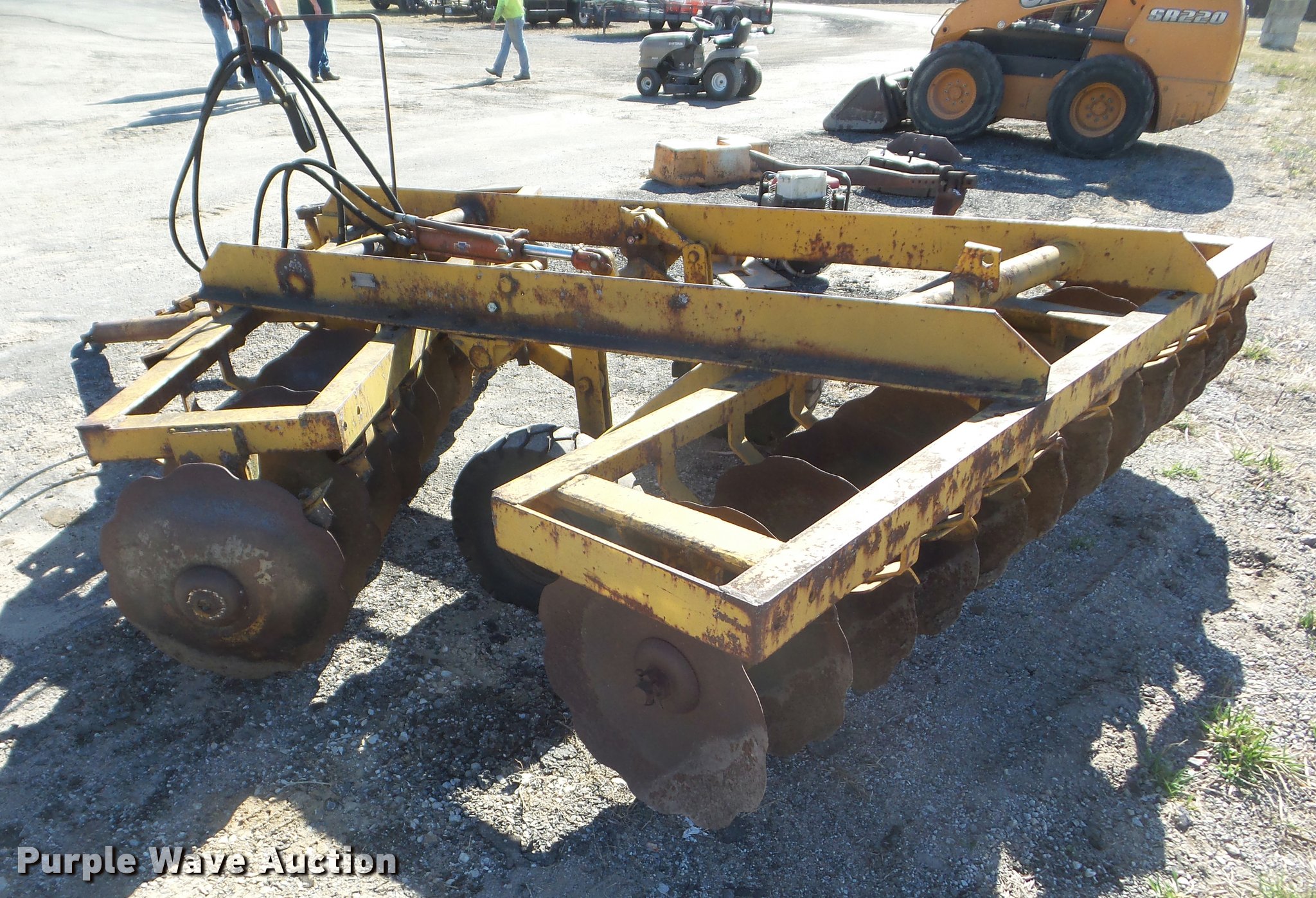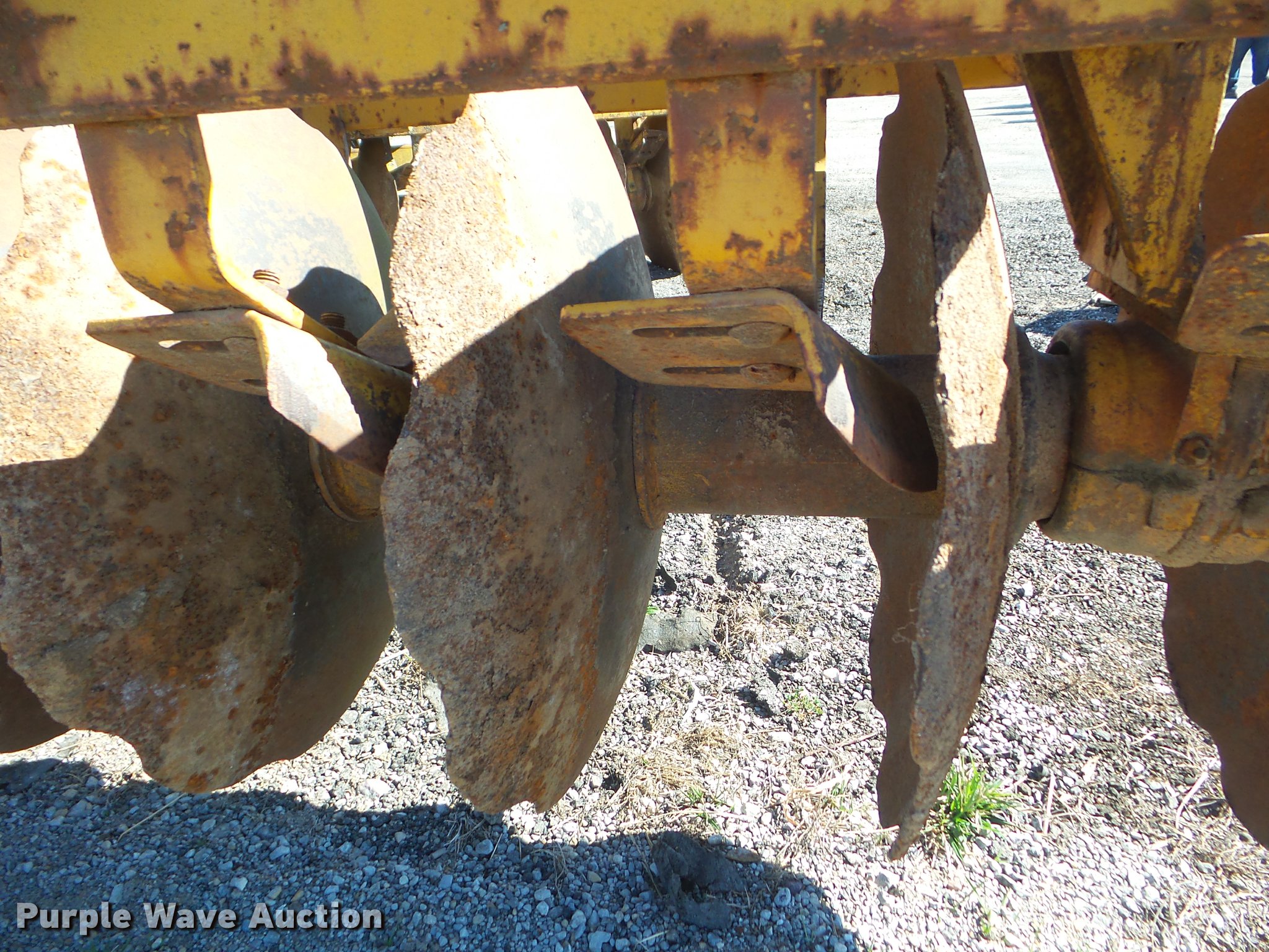 Purple Wave is selling a used Disk in Missouri. This item is a Rome Plow 0W2424 disk with the following: 9'W, 20" diameter front disk blades, 21" diameter rear disk blades, Disk scrapers, Hydraulic lift, Pin hitch, 6.00-9 tires, Frame welded, Serial 120W79