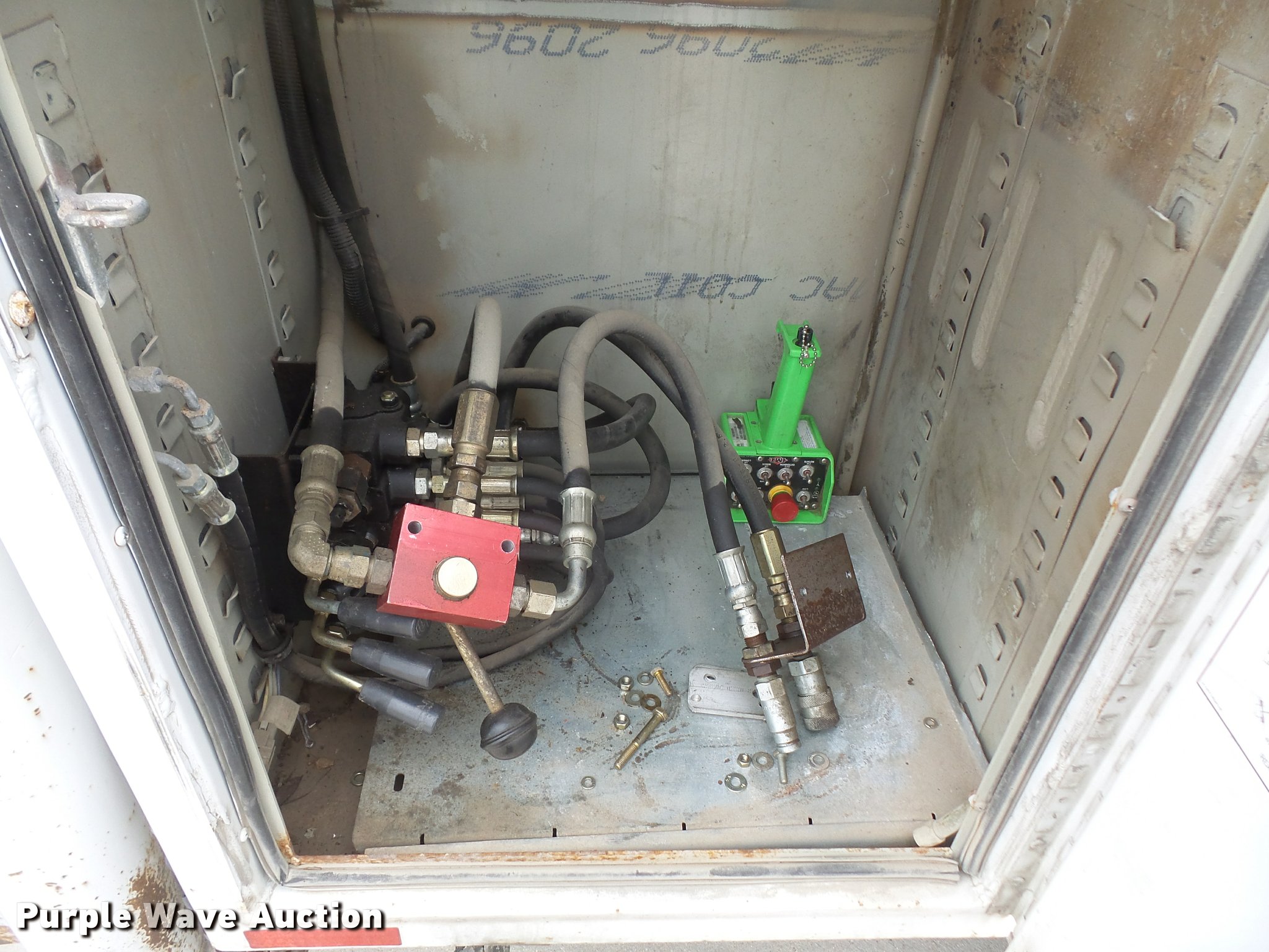 Purple Wave is selling a used Service Truck in Kansas. This item is a 2008 Ford F550 Super Duty utility truck with crane with the following: 188,411 miles on odometer, 6.4L V8 OHV 32V turbo diesel engine, Automatic transmission, Four wheel drive, Single axle, AC and heat, AM/FM/CD, Power windows, locks, and mirrors, Auxiliary controls, Brake controller, PTO, Knapheide utility bed, 11'L, Shelving, Slide-out drawers, Utility rack, Toolboxes, Tommy Gate end gate lift, 1,300 lbs capacity, Dual remote control spotlights, Beacon light, IMT 2020 crane, 5,000 lbs maximum lift capacity, 20' boom length, Remote control, (2) outriggers, Front tow hooks, Single fuel tank, Spring suspension, Hydraulic brakes, 225/75R19.5 tires, GVWR 19,500 lbs, Unit# 1421