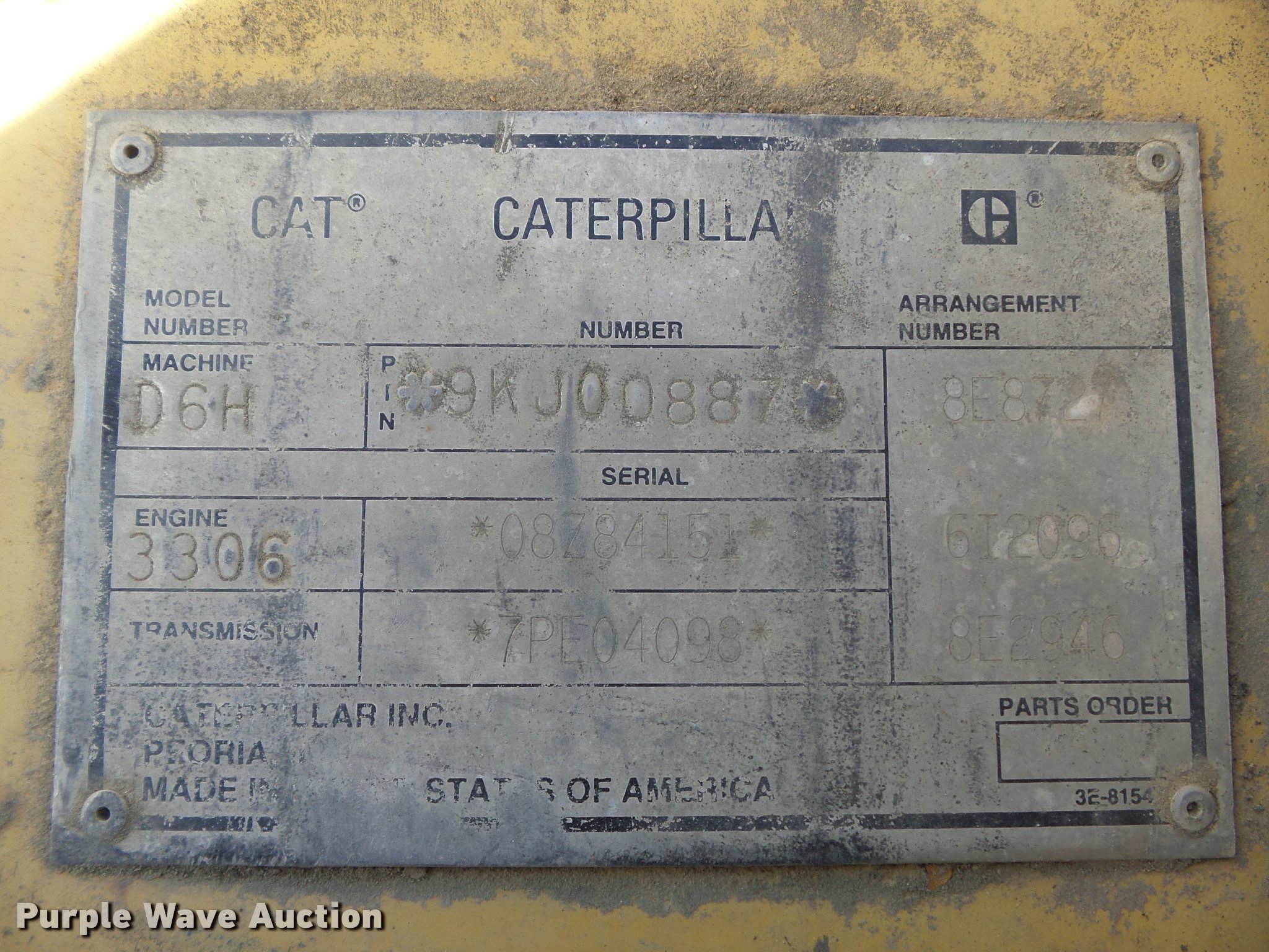 Purple Wave is selling a used Crawler Dozer in Illinois. This item is a 1995 Caterpillar D6H XL Series II dozer with the following: 7,431 actual hours on meter, Caterpillar 3306 six cylinder turbo diesel engine, 165 HP, Serial 08Z84151, Powershift transmission, 3F-3R gears, OROPS, Suspension seat, Differential steering, 128" Semi-U dozer blade, Model 6SU, Serial 8AH00599, Arrangement No. 8E9324, Rear drawbar, Seven bottom rollers, 24" single grouser track pads, Serial 9KJ00887