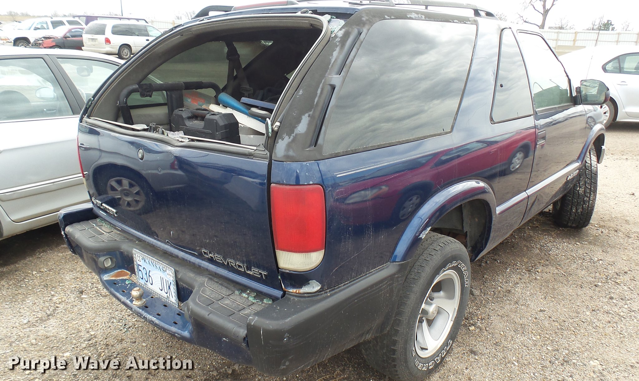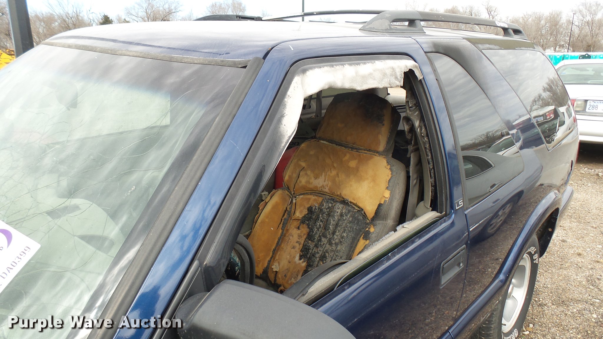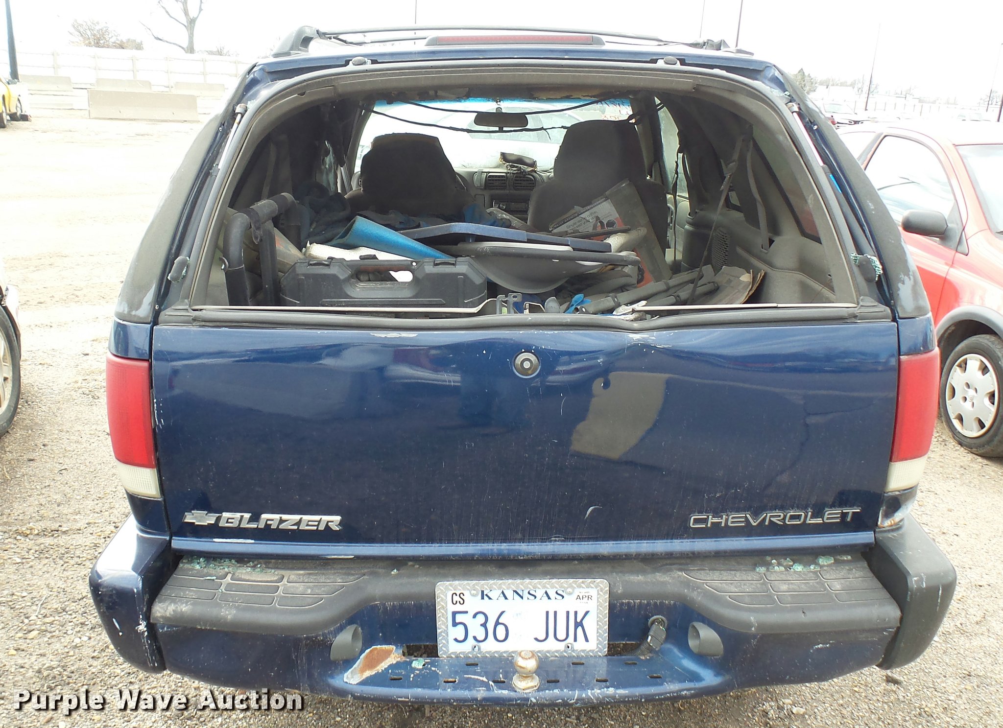 Purple Wave is selling a used Passenger Vehicle in Kansas. This item is a 2000 Chevrolet Blazer SUV with the following: Unknown miles on odometer, 4.3L V6 OHV 12V gas engine, Manual transmission, AC and heat, AM/FM/CD, Manual windows and locks, Leather interior, 235/70R15 tires, Fire damage, Broken windows, Case# 16C073133