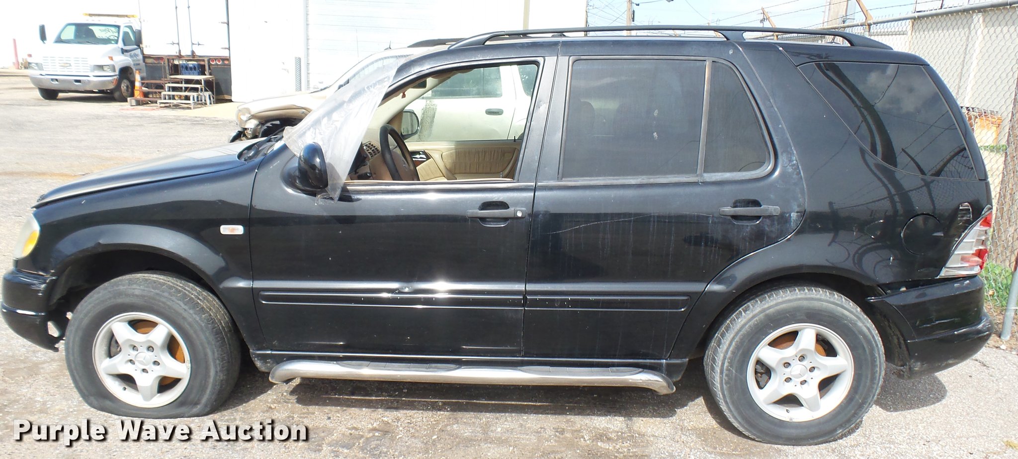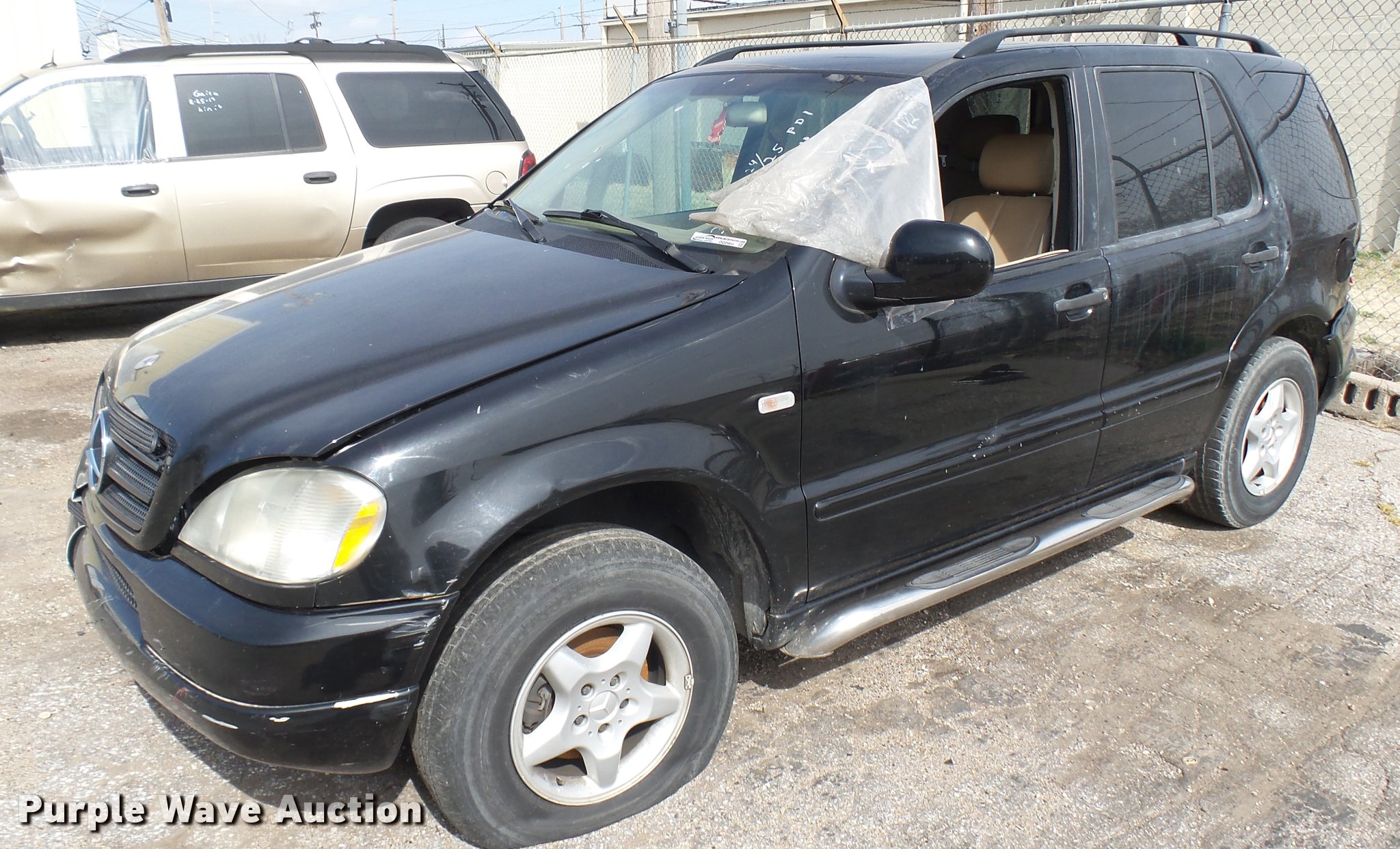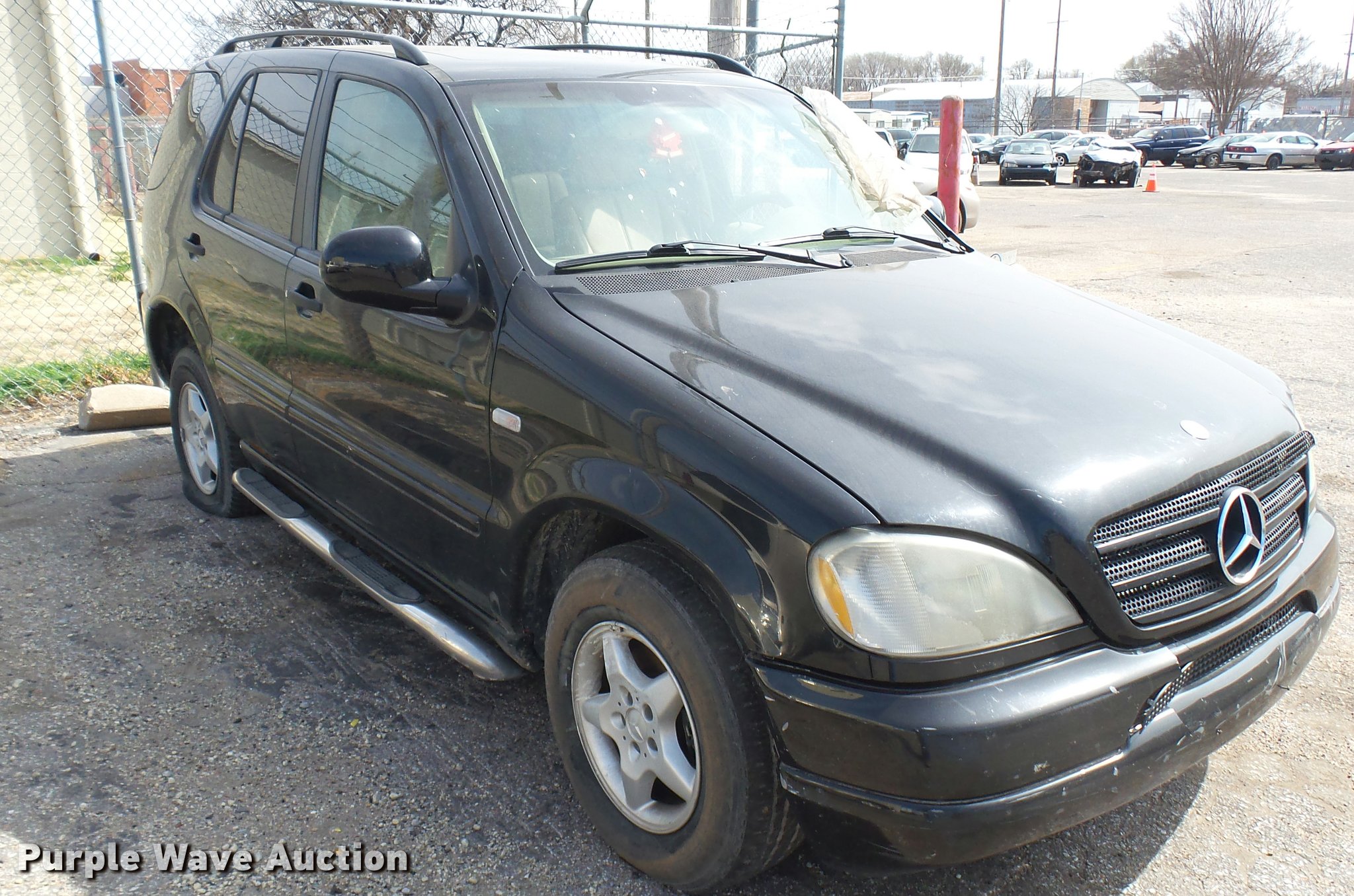 Purple Wave is selling a used Passenger Vehicle in Kansas. This item is a 2000 Mercedes Benz ML320 SUV with the following: Unknown miles on odometer, 3.2L V6 SOHC 18V gas engine, Automatic transmission, AC and heat, Tilt, Cruise, AM/FM/CD, Power windows, locks, mirrors, and seat, Leather interior, Sunroof, Running boards, 225/65R16 tires, Hood will not open, Case# 16C69937