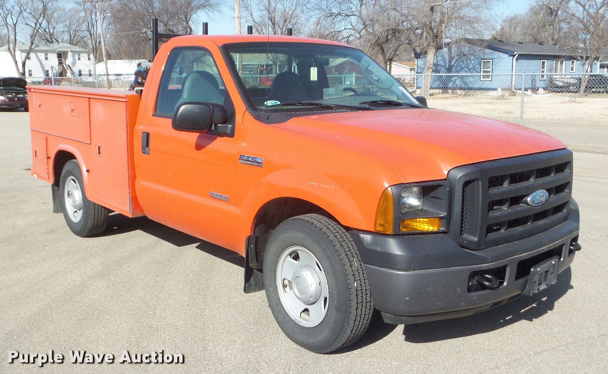 Purple Wave is selling a used 3/4 or 1 Ton Pickup or Van in Kansas. This item is a 2006 Ford F250 Super Duty utility truck with the following: 197,253 miles on odometer, 6.0L V8 OHV 32V diesel engine, Automatic transmission, AC and heat, Tilt, Cruise, AM/FM, Manual windows and locks, Vinyl interior, Front tow hooks, Knapheide utility bed, 8'L, Auxiliary fuel tank, 98 gallon capacity, Transfer pump with meter,, Receiver hitch, Trailer wiring, 3:73 limited slip rear end, LT245/75R17 tires, Paint faded and scratched, Non-operational injection pump, KDOT ID 113-2126