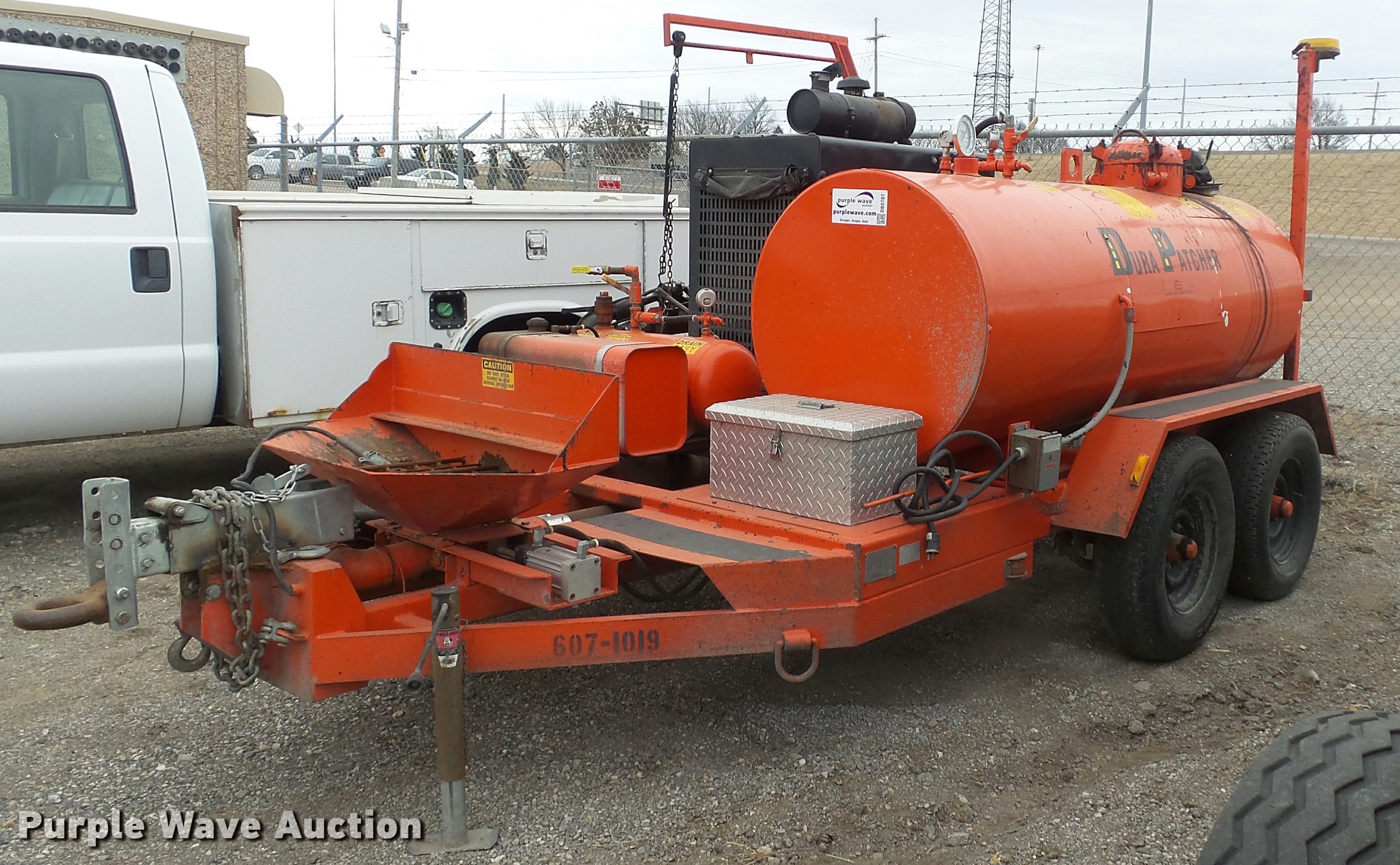Purple Wave is selling a used Pot Hole Patcher in Kansas. This item is a 2008 Duraco Durapatcher 125DJT pothole patcher with the following: 1,850 hours on meter, John Deere 4.5L four cylinder diesel engine, Aggregate flow hoses need replaced, Serial 14522, KDOT ID 607-1019