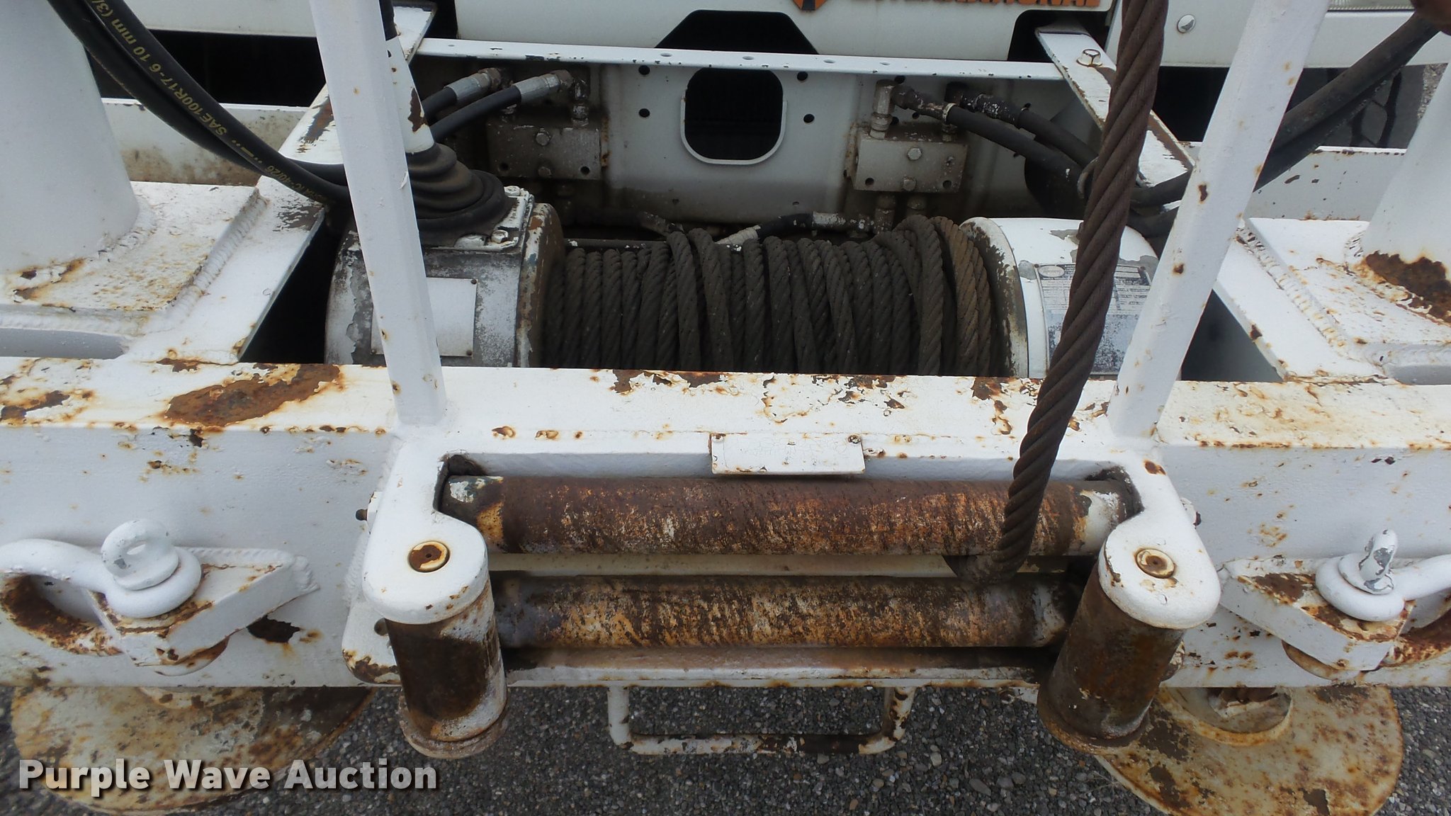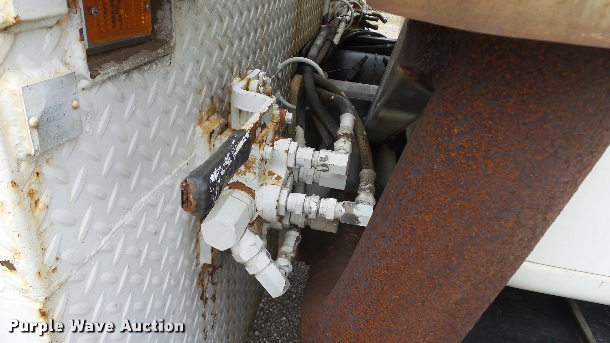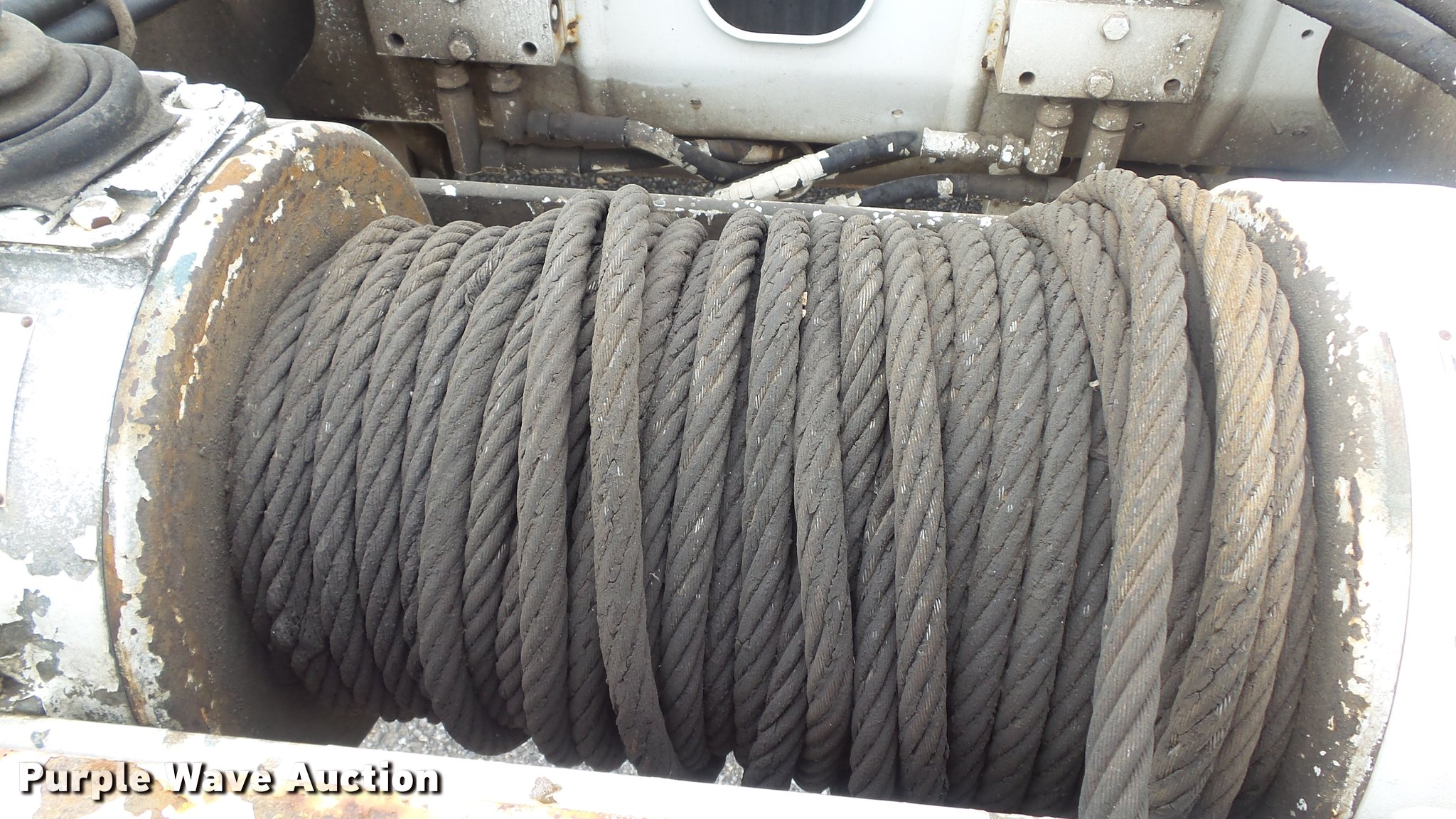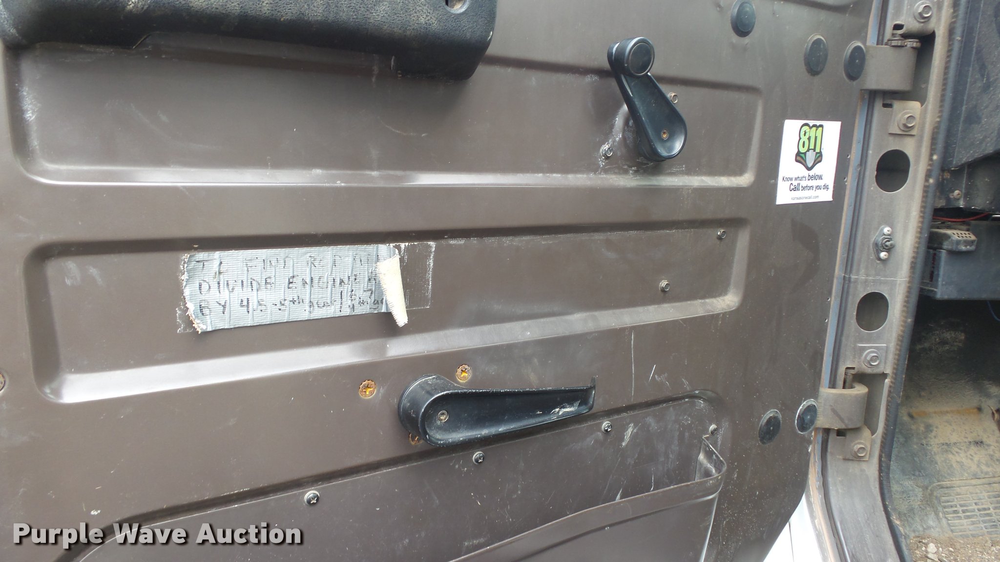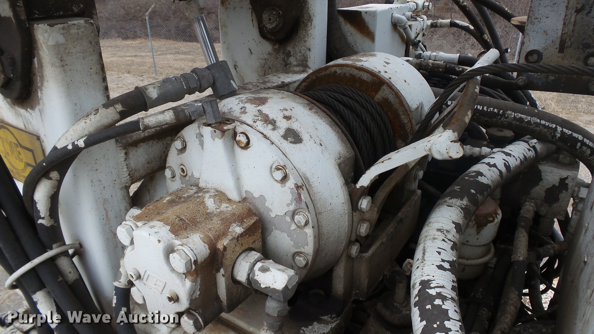 Purple Wave is selling a used Digger Derrick Truck in Kansas. This item is a 1992 International 4900 digger derrick truck with the following: 57,214 miles on odometer, 5,180 hours on meter, International DT466 7.6L L6 turbo diesel engine, 210 HP, Eaton Fuller Road Ranger eight speed manual transmission, Tandem axle, Differential lock, Heat, AM/FM/weatherband, Air suspension seat, Block heater, 17'L service bed, CME Bullmaster H8-4-30-1 hoist and dolly, Cummins six cylinder diesel engine, 120 HP, 3,136 hours on meter, Front and rear outriggers, No augers or rods, Ramsey 800 winch, 20,000 lbs capacity, Serial 595199, Front tow hooks, Beacon light, Dual fuel tanks, Spring suspension, Air brakes, Goodyear 11R22.5 tires, Possible cylinder head gasket leak on rear engine, KDOT ID 488-0041