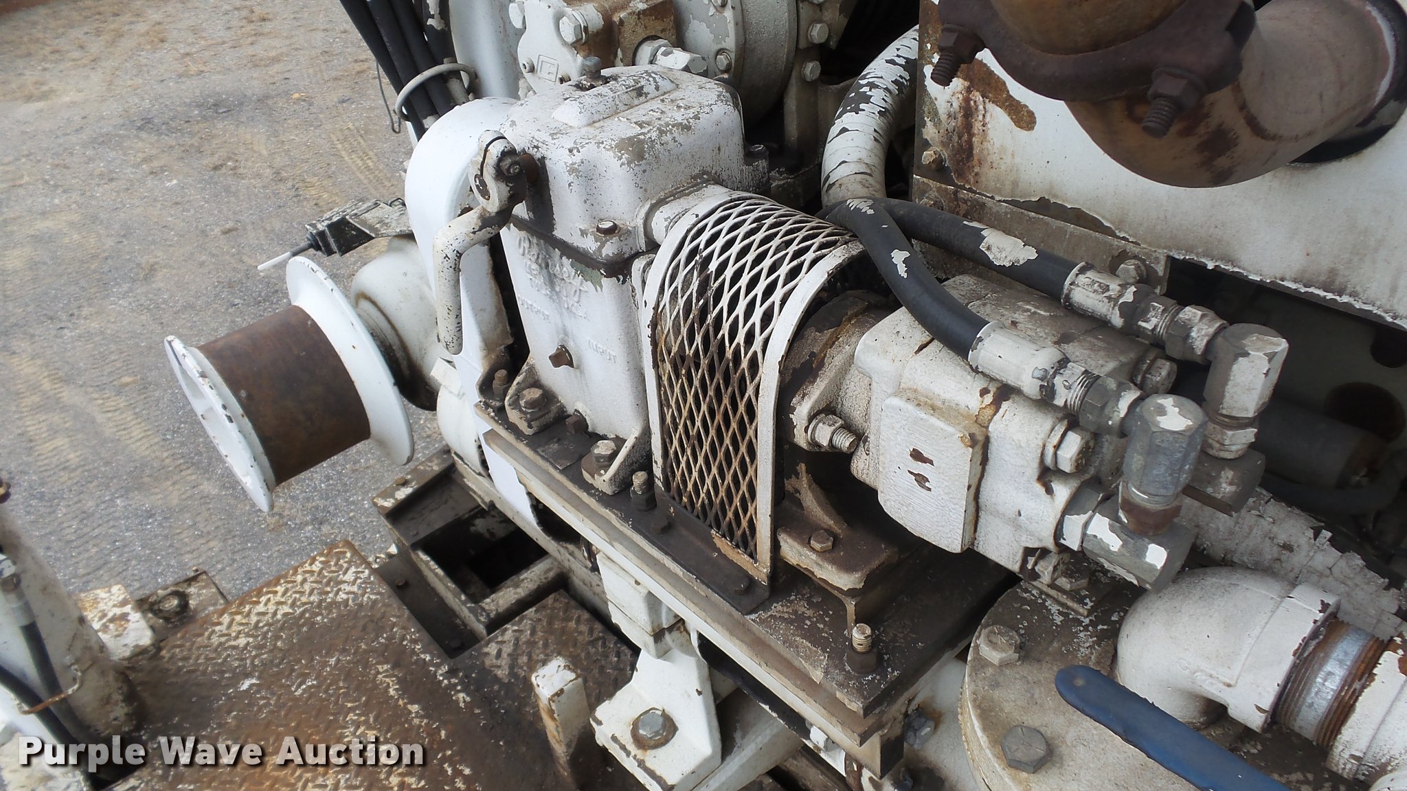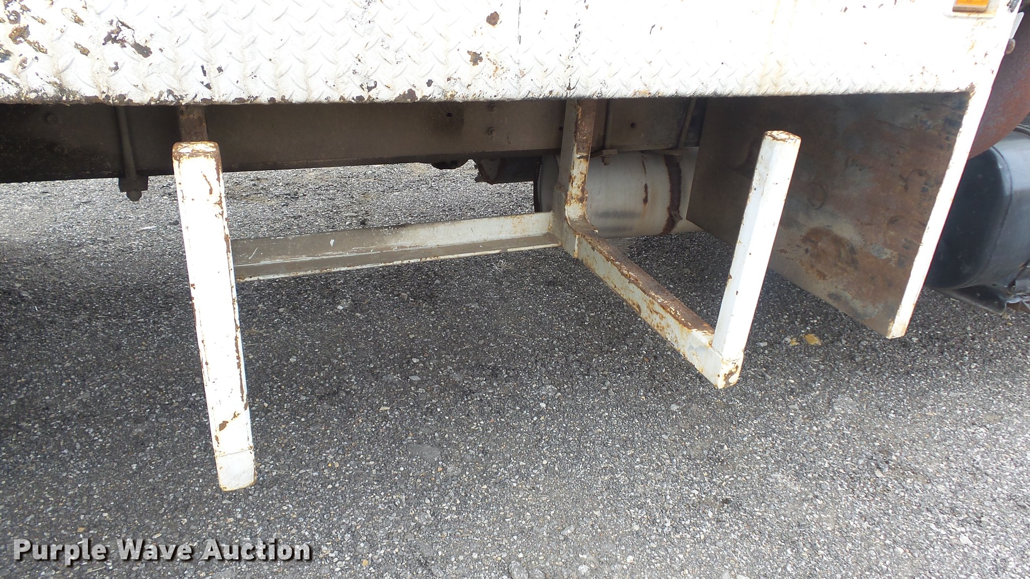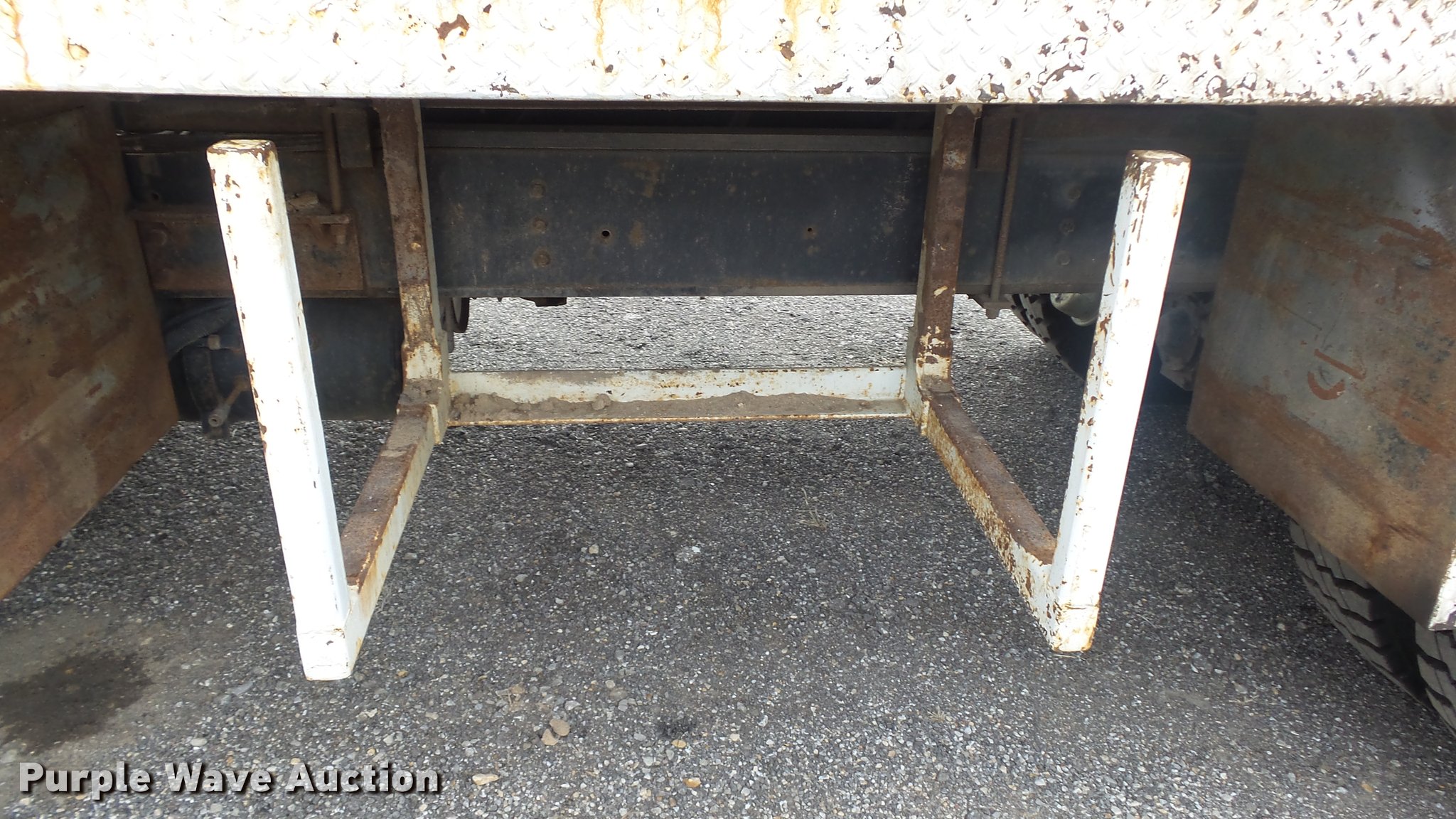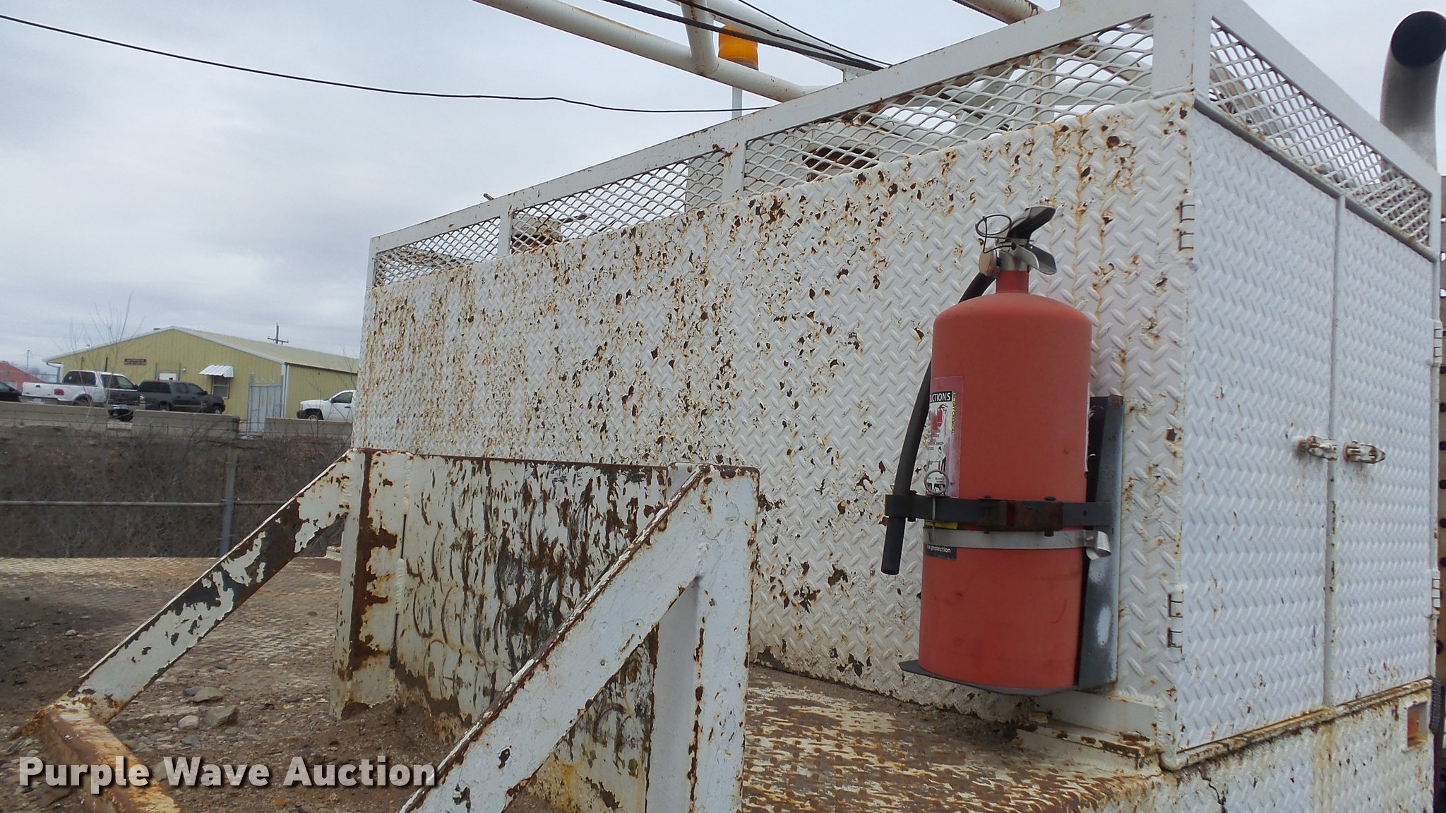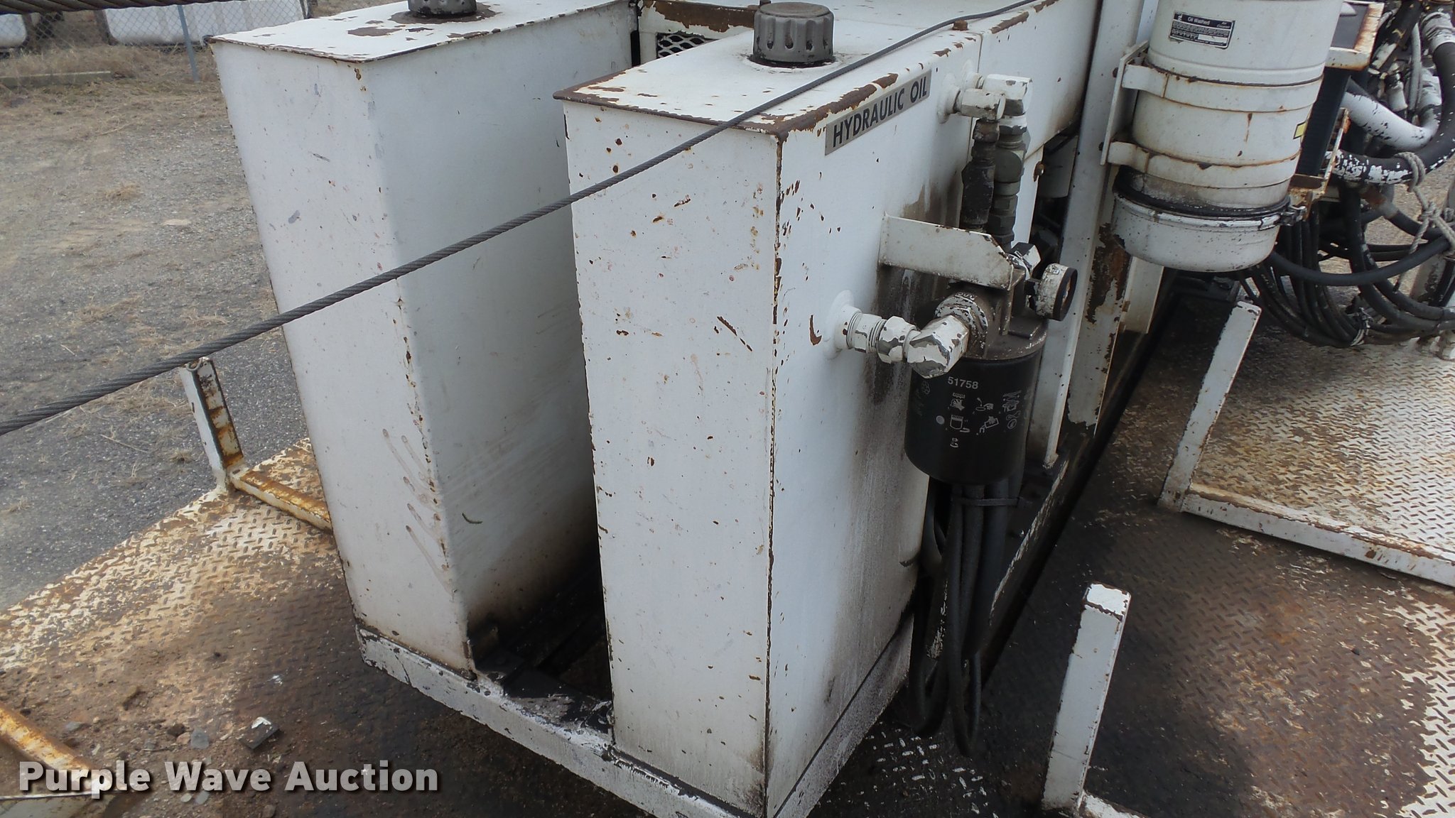 Purple Wave is selling a used Digger Derrick Truck in Kansas. This item is a 1992 International 4900 digger derrick truck with the following: 57,214 miles on odometer, 5,180 hours on meter, International DT466 7.6L L6 turbo diesel engine, 210 HP, Eaton Fuller Road Ranger eight speed manual transmission, Tandem axle, Differential lock, Heat, AM/FM/weatherband, Air suspension seat, Block heater, 17'L service bed, CME Bullmaster H8-4-30-1 hoist and dolly, Cummins six cylinder diesel engine, 120 HP, 3,136 hours on meter, Front and rear outriggers, No augers or rods, Ramsey 800 winch, 20,000 lbs capacity, Serial 595199, Front tow hooks, Beacon light, Dual fuel tanks, Spring suspension, Air brakes, Goodyear 11R22.5 tires, Possible cylinder head gasket leak on rear engine, KDOT ID 488-0041
