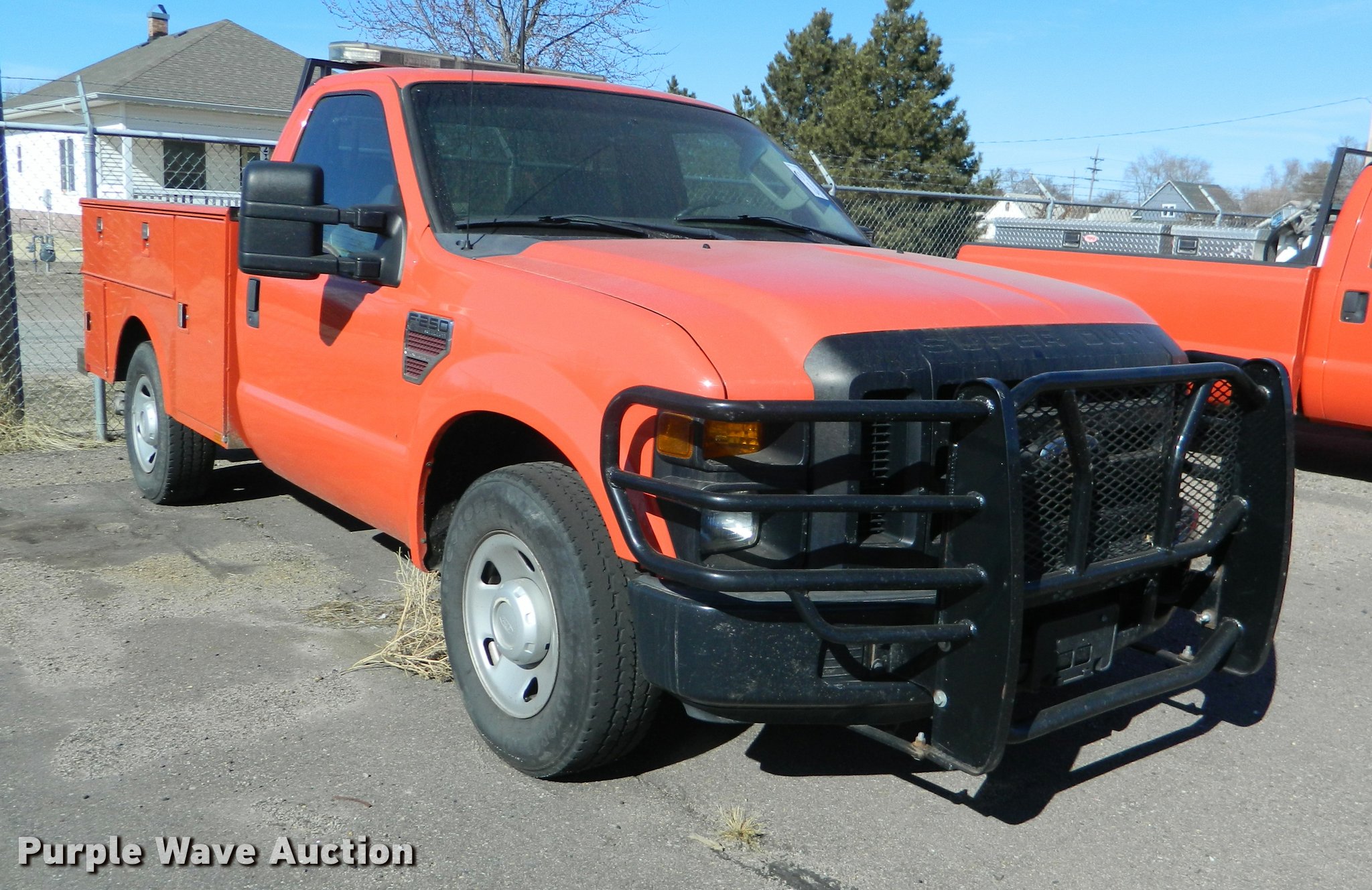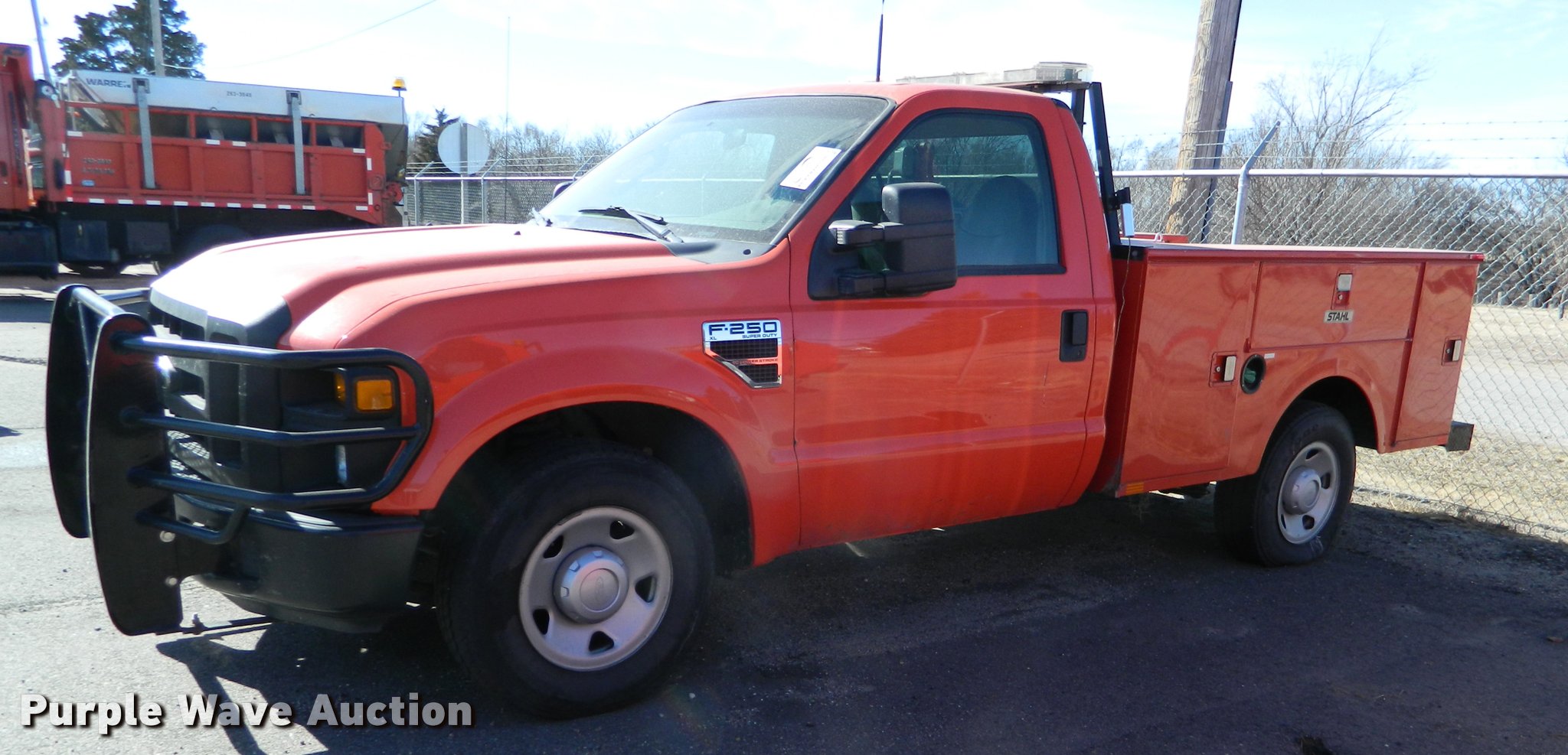 Purple Wave is selling a used 3/4 or 1 Ton Pickup or Van in Kansas. This item is a 2008 Ford F250 Super Duty utility bed pickup truck with the following: 155,128 miles on odometer, 6.4L V8 OHV 32V turbo diesel engine, Automatic transmission, AC and heat, Tilt, Cruise, AM/FM, Manual windows and locks, Vinyl interior, Stahl utility bed, Auxiliary fuel tank, 100 gallon capacity, Electric transfer pump and meter, Front tow hooks, Receiver hitch, Trailer wiring, 245/75R17 tires, Radio mount is not included, Internal engine noise, Vehicle does not run properly, KDOT ID 113-3038