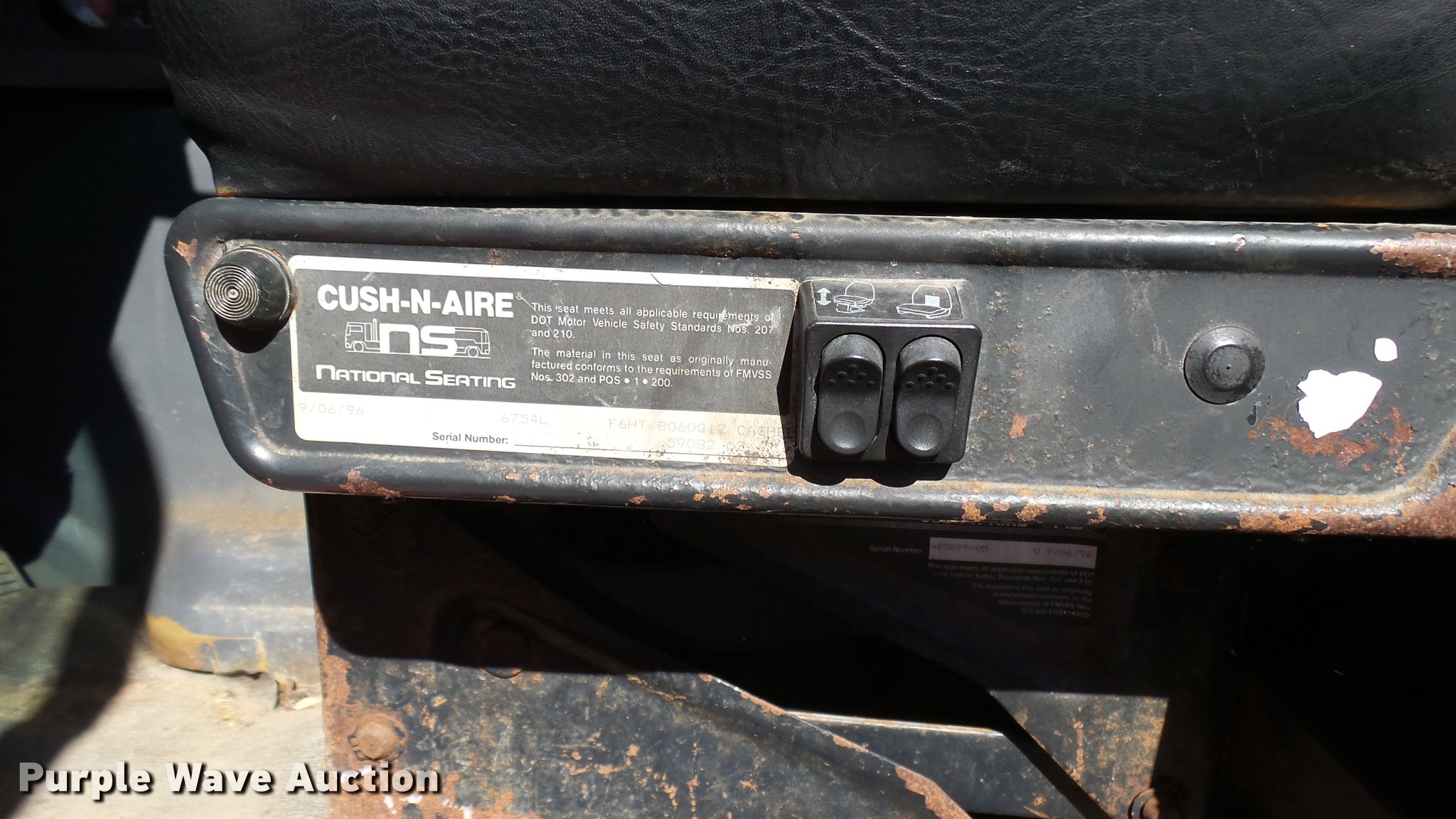 Purple Wave is selling a used Flat Bed Truck in Kansas. This item is a 1997 Ford LNT9000 gin pole truck with the following: 112,858 miles on odometer, 6,075 hours on meter, Caterpillar 3306 10.5L L6 turbo diesel engine, Eaton Fuller Road Ranger 13 speed manual transmission, Tandem axle, Inter-axle differential lock, Heat, AM/FM/CD, Air suspension seat, Beacon light, Block heater, PTO, 19.8'L x 8'W gin pole bed, Rolling tailboard, 16'L gin poles, Ramsey winch, 50,000 lbs capacity,, Flink PF-91 QL2 KS snow plow frame, Single exhaust stack, Single fuel tank, Mud flaps, Pintle hitch, Rear hydraulic remotes, Trailer wiring, Gladhand connectors, 210" wheelbase, Spring over walking beam suspension, Air brakes, 295/75R22.5 front tires, 275/80R22.5 rear tires, GVWR 53,220 lbs, FAWR 13,220 lbs, IAWR 20,000 lbs, RAWR 20,000 lbs, Battery weak, Rust, Paint peeling, KDOT ID 263-5056