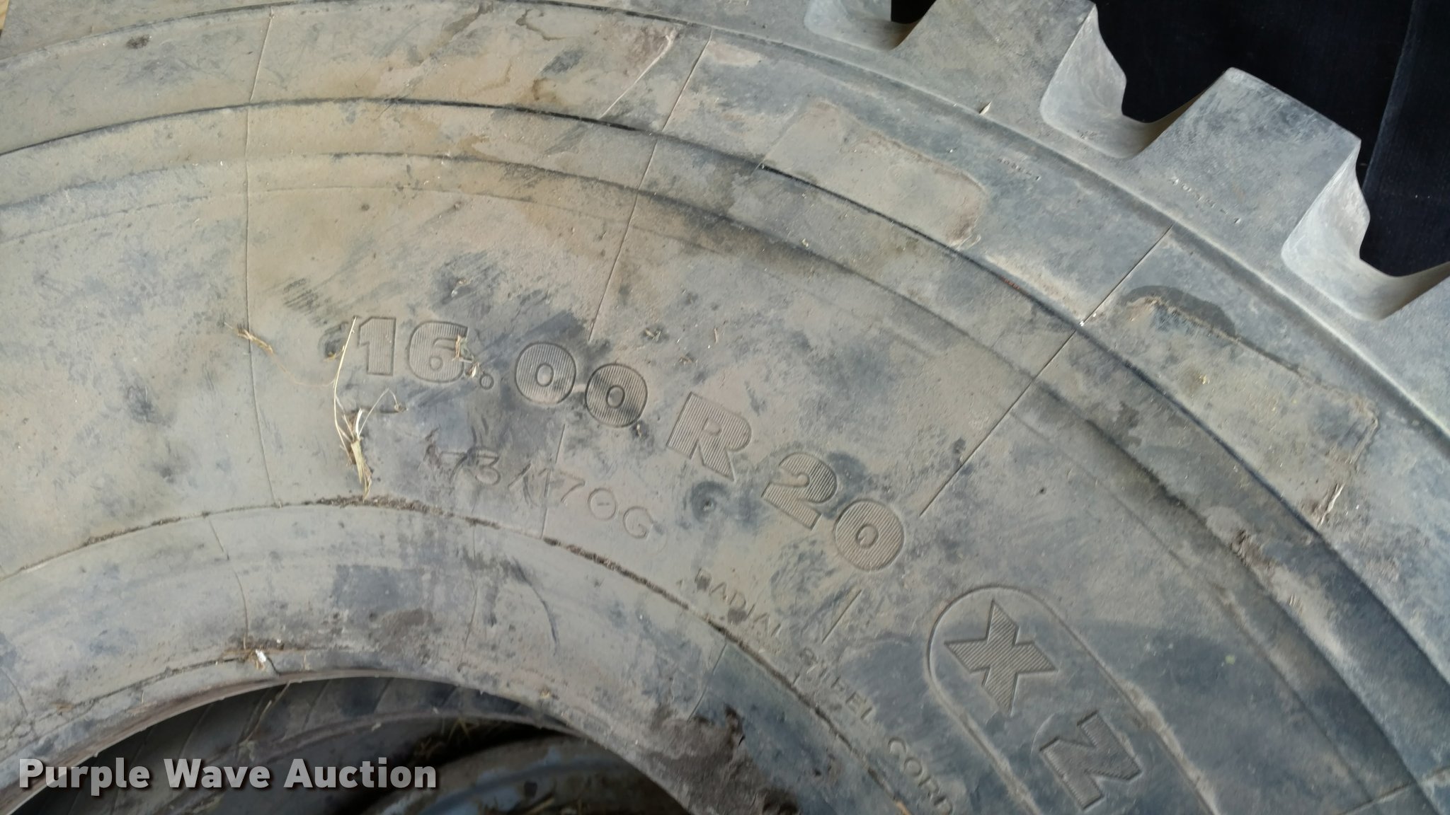 Purple Wave is selling a used Industrial Tires or Tracks in Kansas. This item is a (2) Michelin 16.00R20 tires with the following: (2) Michelin 16.00R20 tires. Warren Wilson Hay Inc.. Abilene, KS 67410