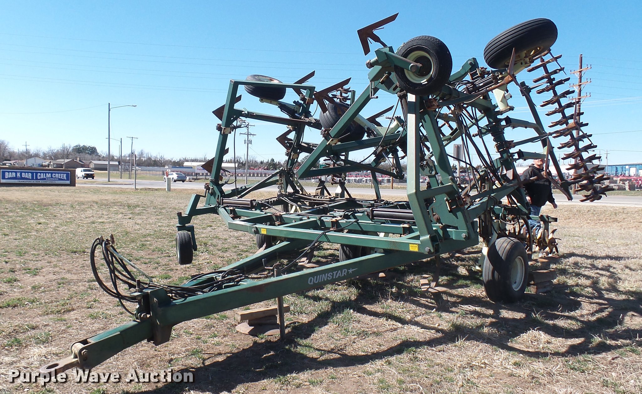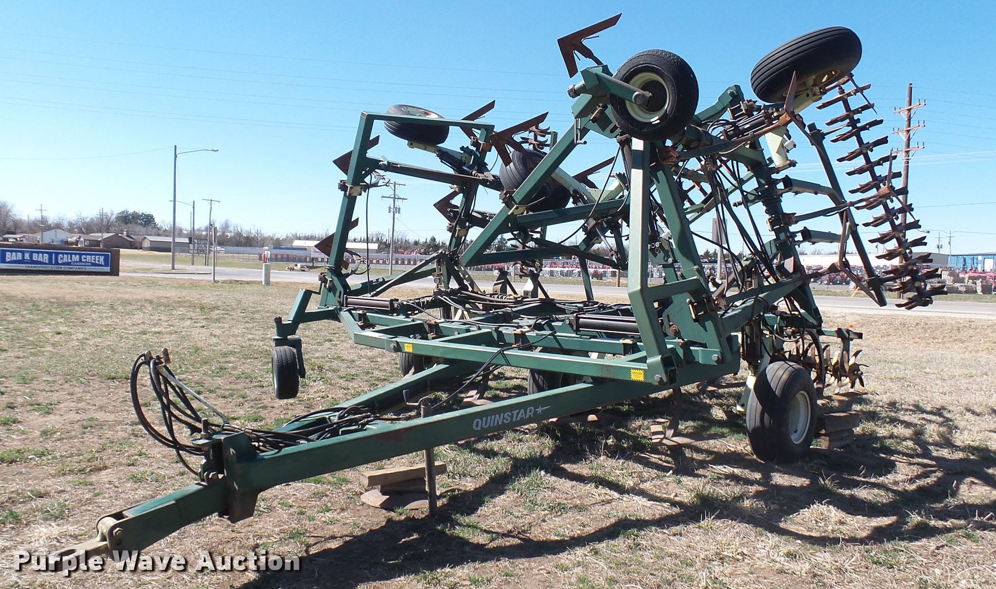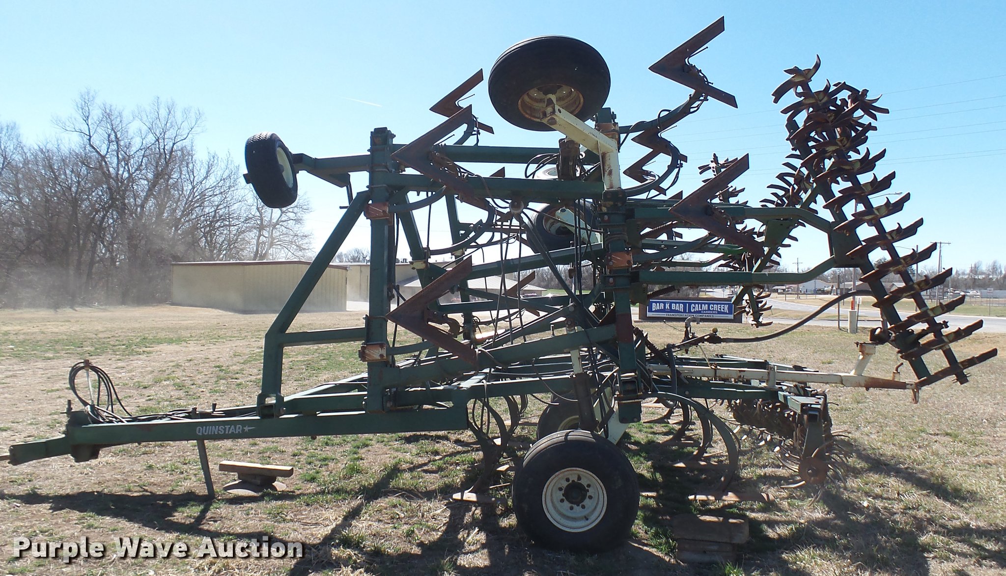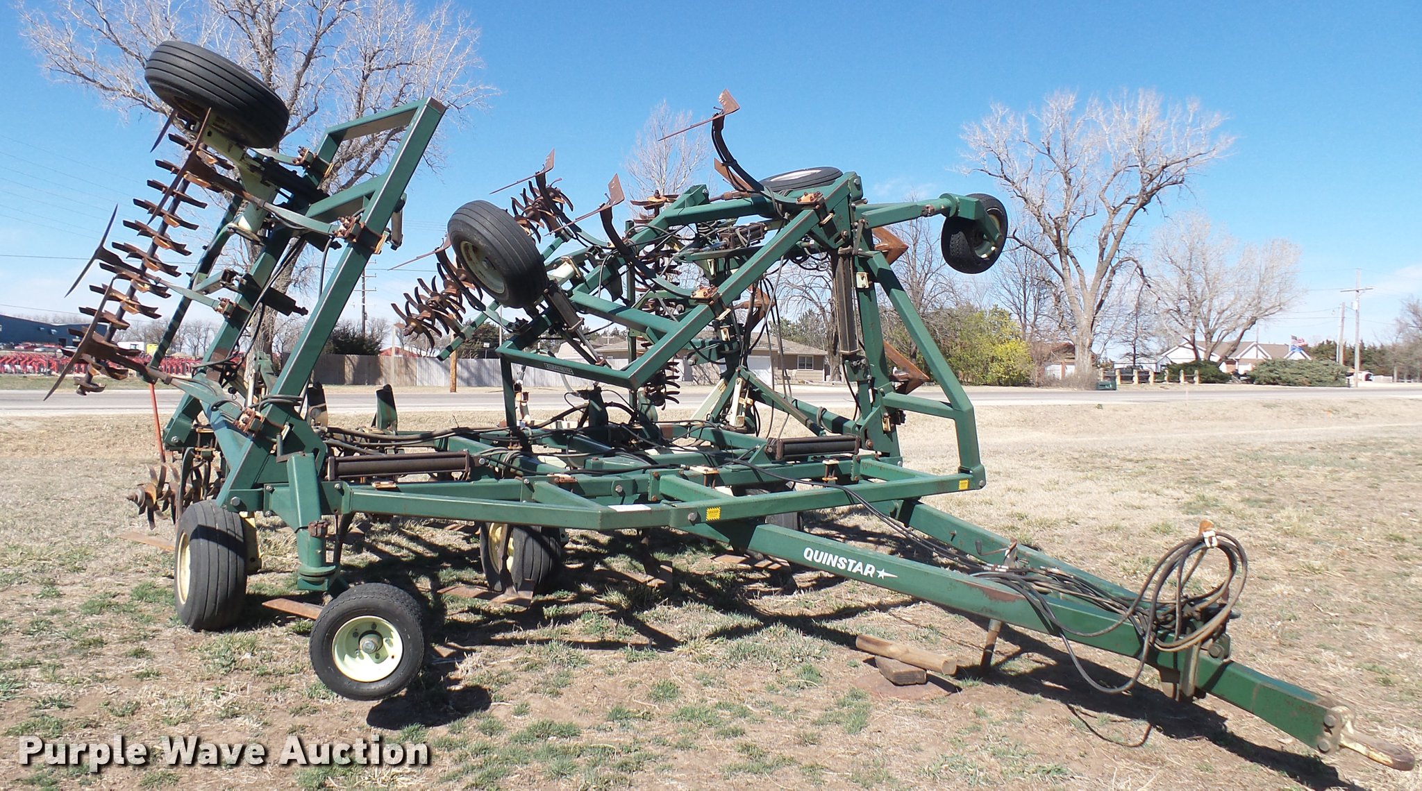 Purple Wave is selling a used Field Cultivator or Sweep Plow in Kansas. This item is a QuinStar Fallow Master sweep plow with the following: 35' work width, 24" blades, Treaders, Hydraulic lift and fold, Pin hitch, 11L-15 transport tires