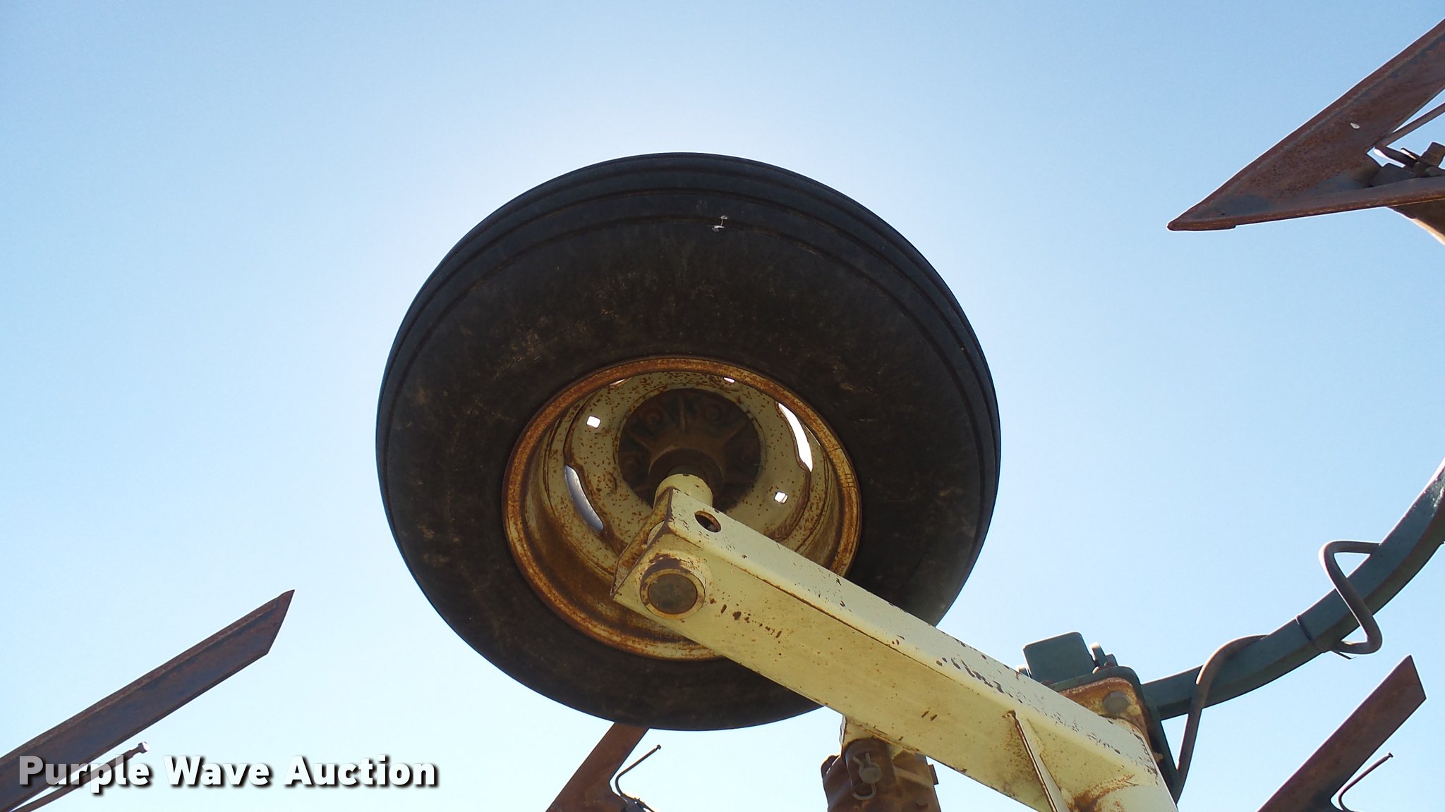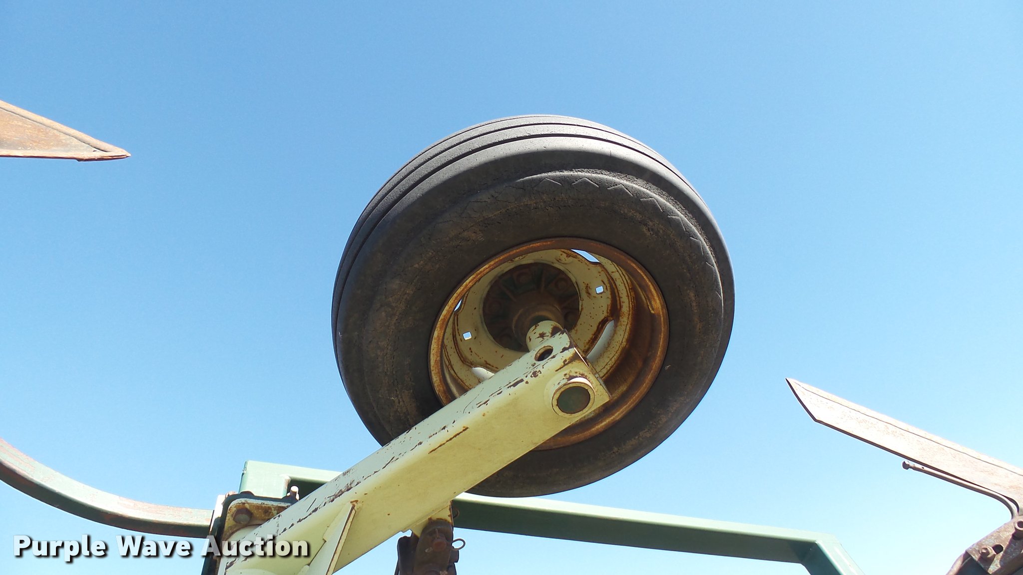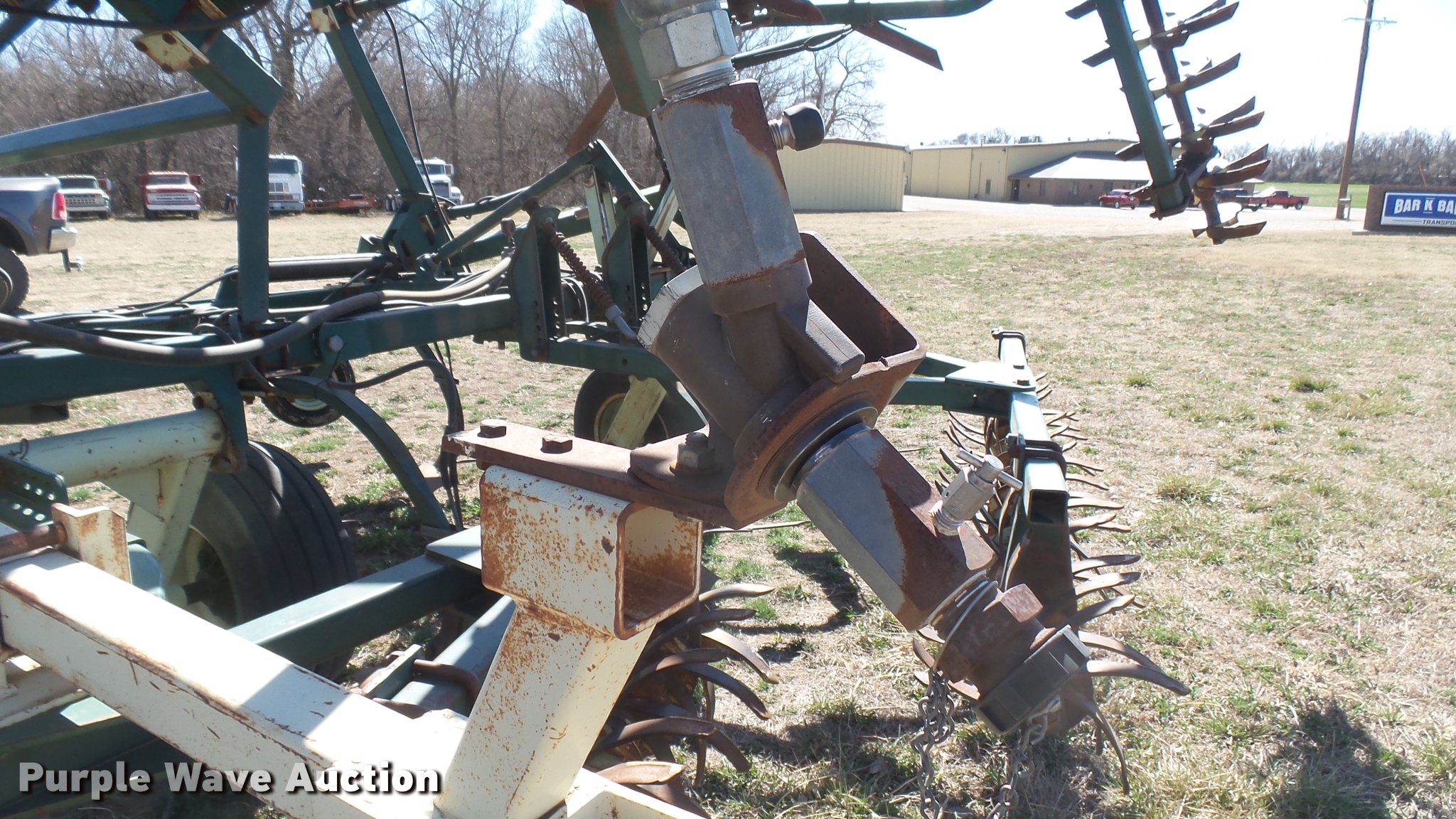 QuinStar Fallow Master sweep plow. 35' work width, 24" blades, Treaders, Hydraulic lift and fold, Pin hitch, 11L-15 transport tires. 1313 E Hwy 56. Lyons, KS 67554