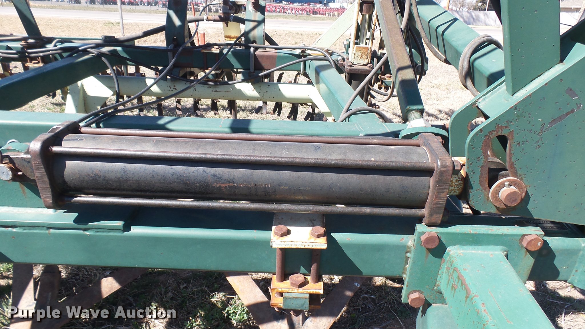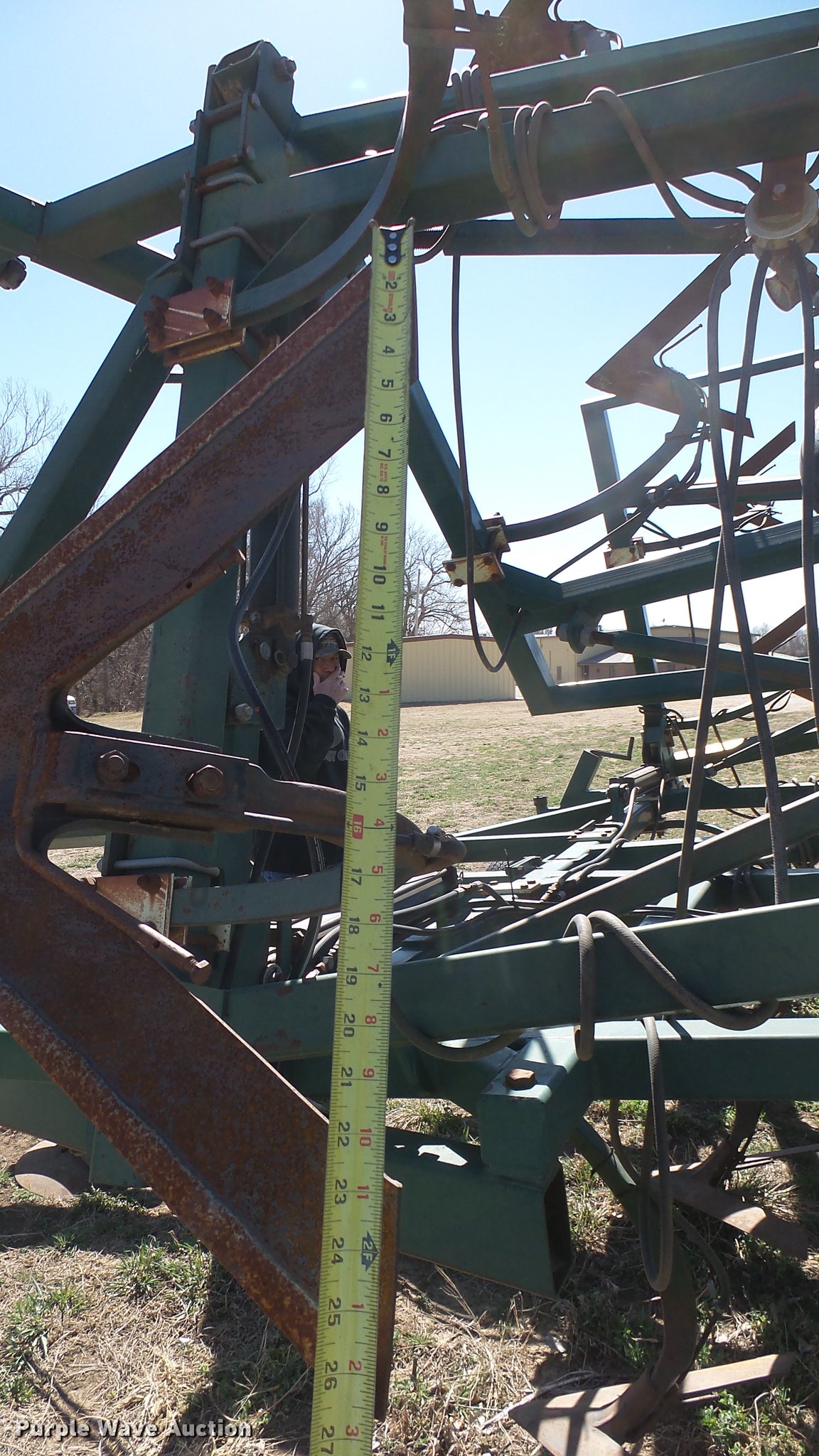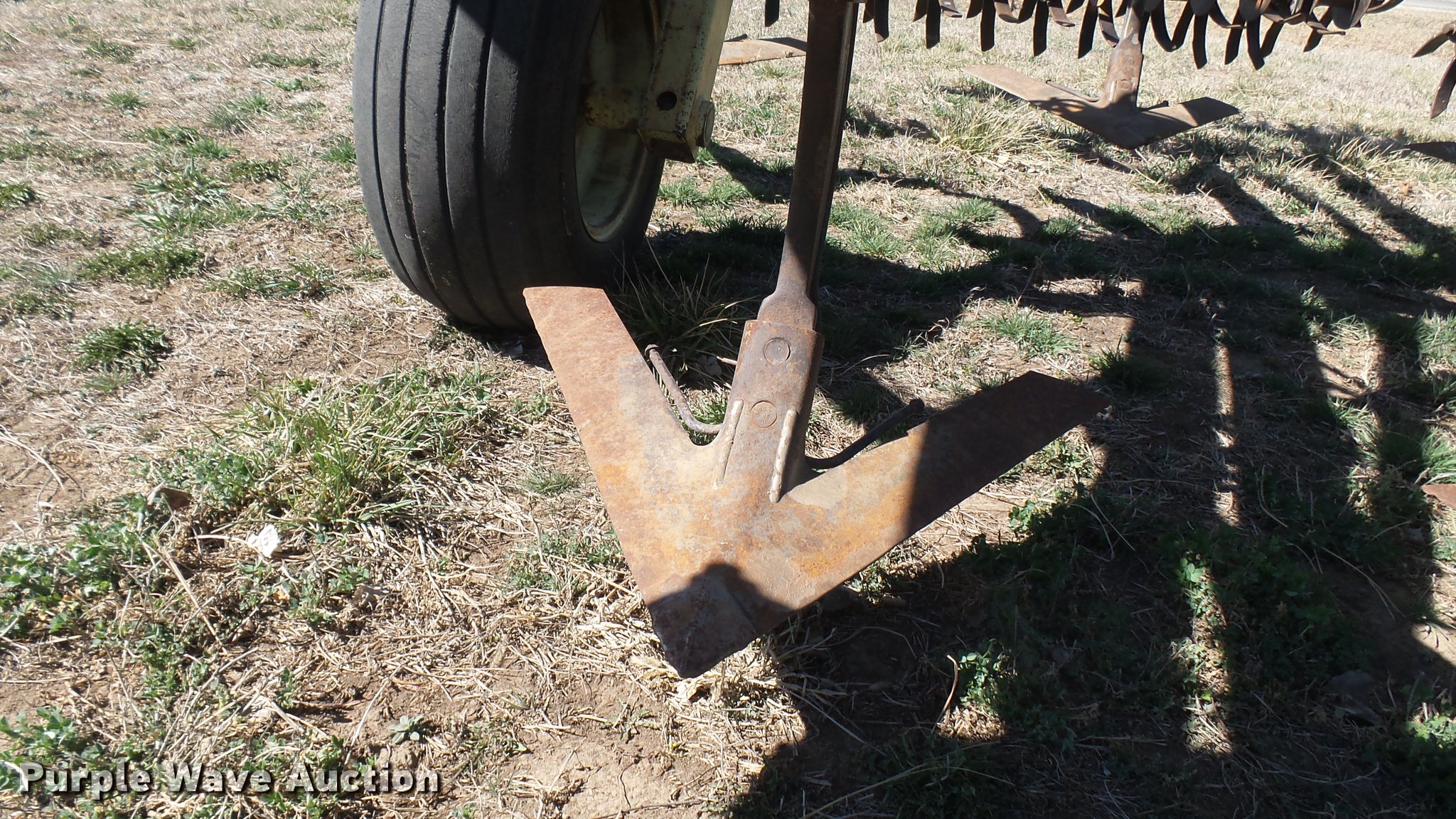 QuinStar Fallow Master sweep plow. 35' work width, 24" blades, Treaders, Hydraulic lift and fold, Pin hitch, 11L-15 transport tires. 1313 E Hwy 56. Lyons, KS 67554