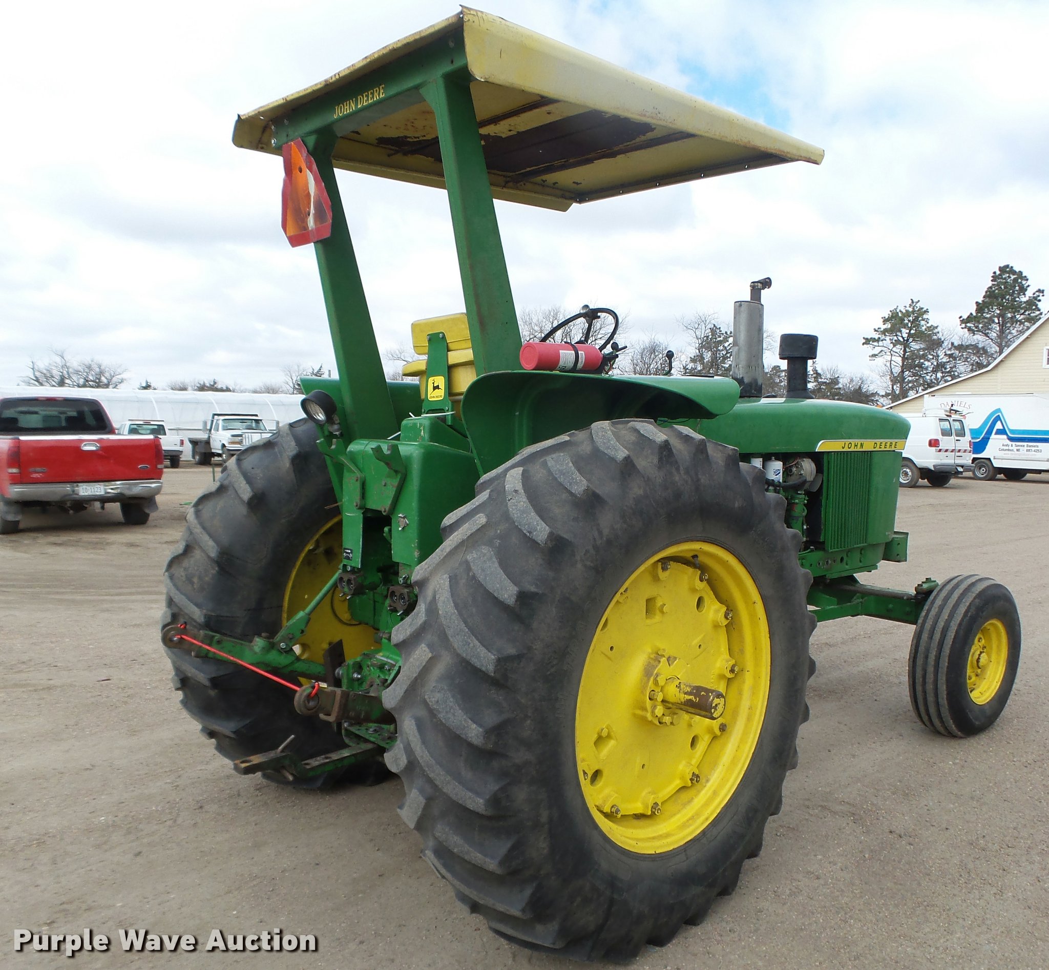 Purple Wave is selling a used Tractor in Nebraska. This item is a 1969 John Deere 4020 row crop tractor with the following: 3,480 hours on meter, John Deere 6.6L six cylinder diesel engine, Serial M23R0243085R, Synchro transmission, 8F-2R gears, Differential lock, Open canopy, Suspension seat, Block heater, Three point, 540/1000 PTO, (2) rear hydraulic remote sets, Case IH front axle, 10.00-16SL front tires, 18.4-34 rear tires, Fuel gauge inoperable, Serial T213R219701R, Unit# 40