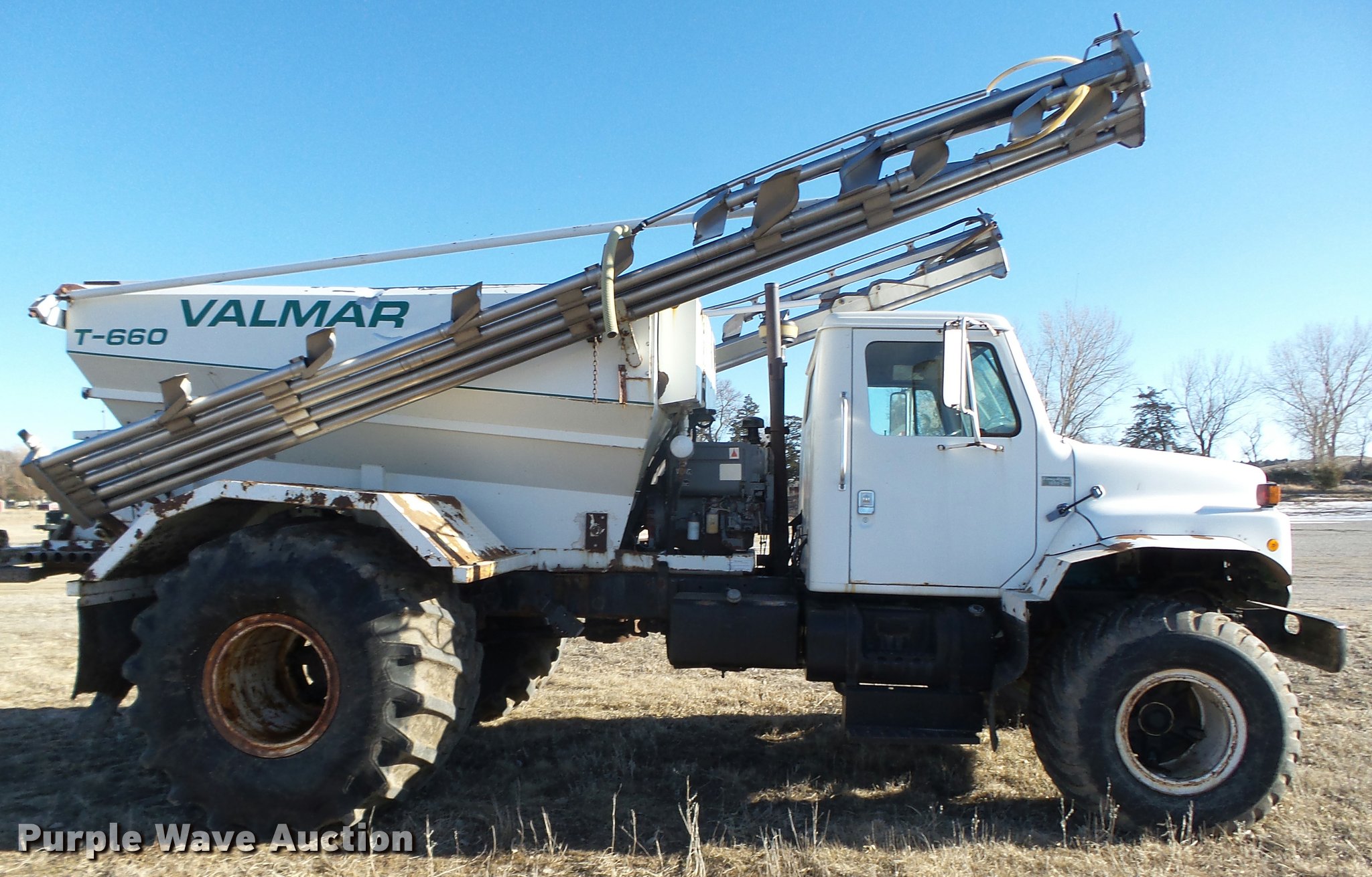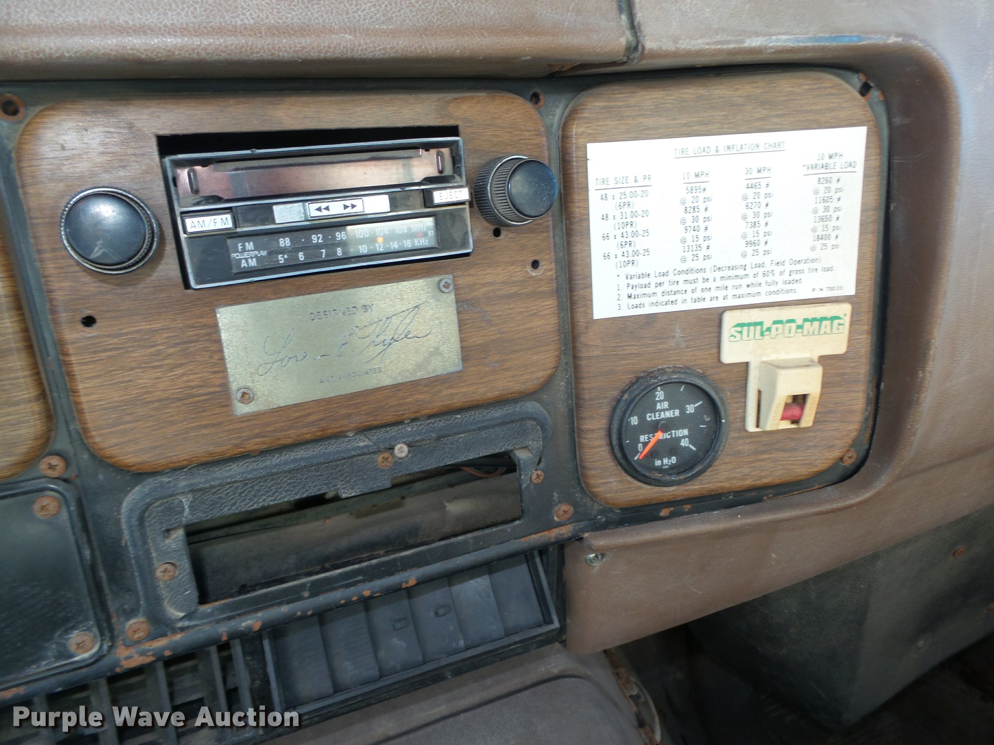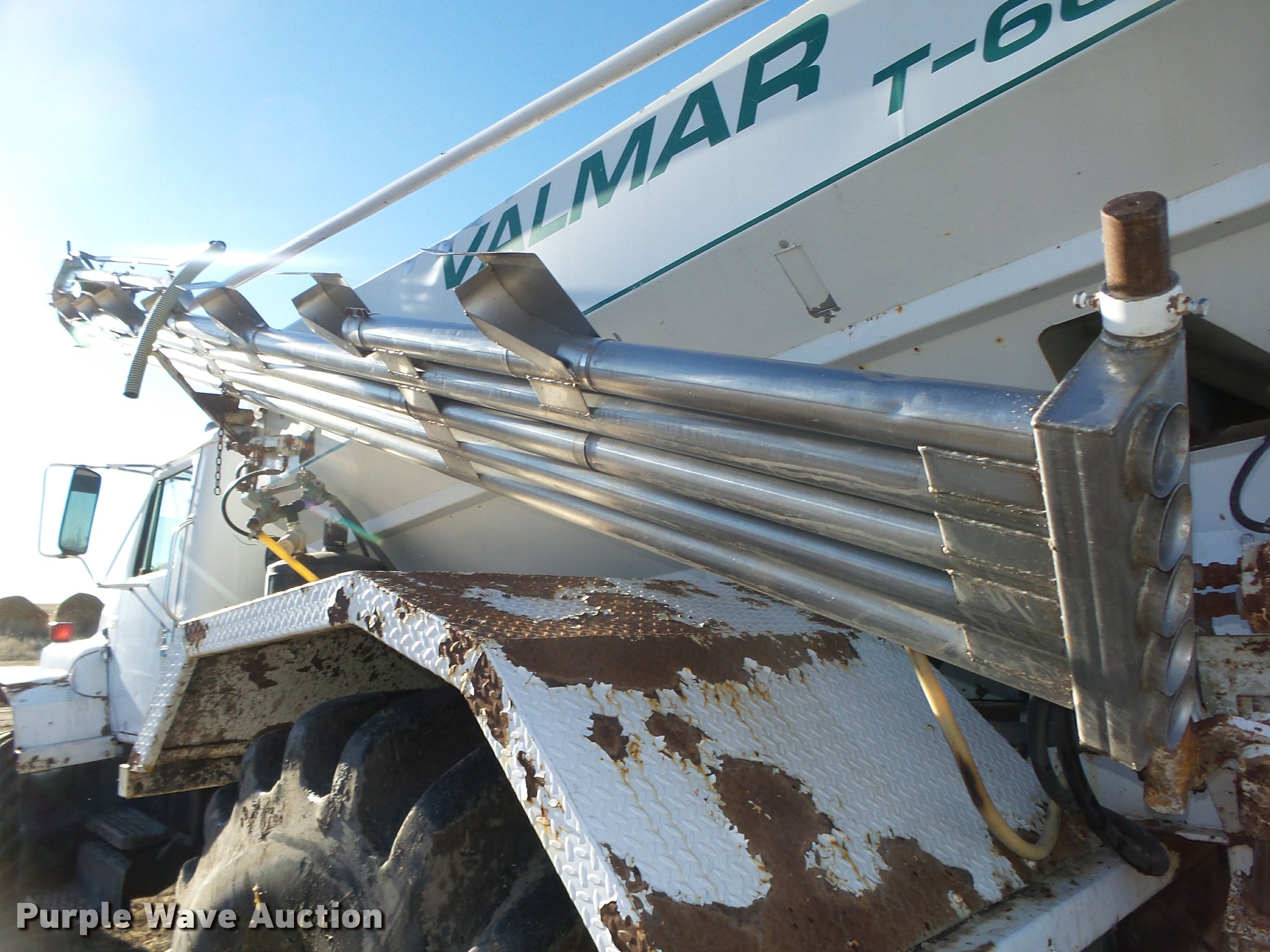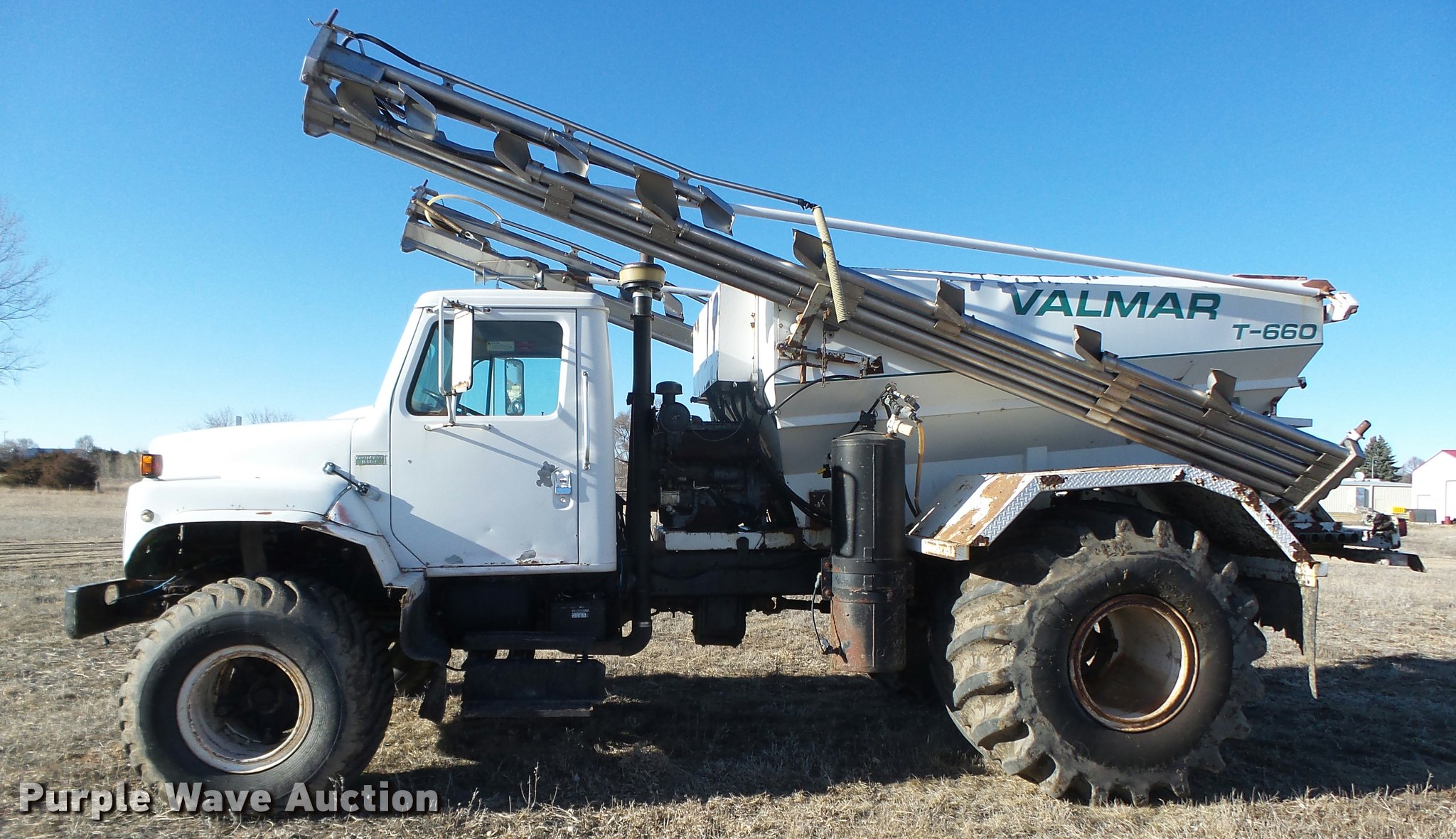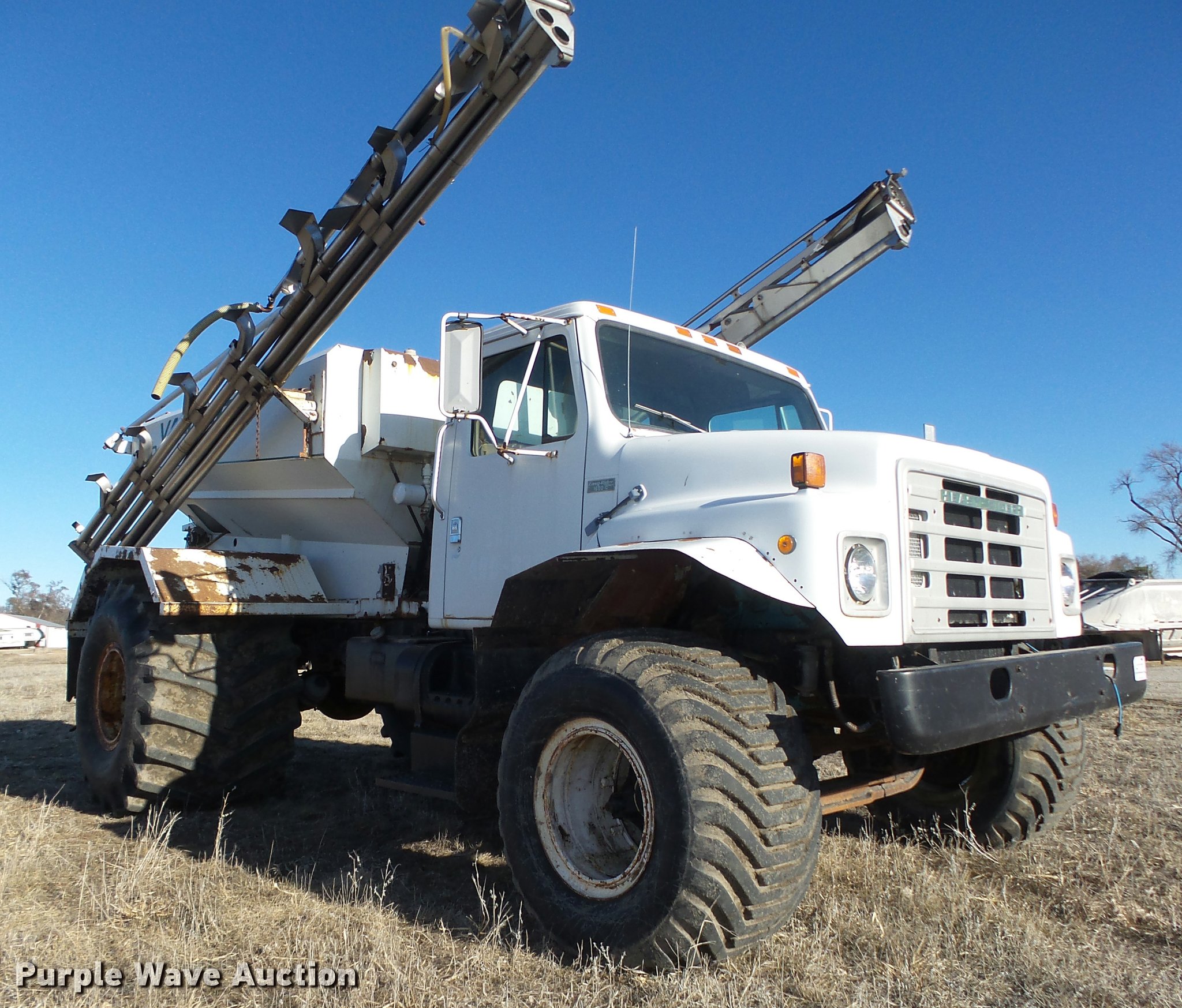 Purple Wave is selling a used Applicator Truck in Nebraska. This item is a 1982 International 1954 Easy Rider 1600C applicator truck with the following: 61,740 miles on odometer, 6,731 hours on meter, International DT466 six cylinder turbo diesel engine, Allison MT643 automatic transmission, 50'W boom, Five boom sections, Hydraulic boom fold, Manual wing ends, Foam marker tank, Valmar T660 stainless steel floater mount, Dual chain conveyor, Serial T660B116, Deutz four cylinder diesel engine, Serial 8051871, Air compressor/blower, AC and heat, Unknown operating condition of AC, AM/FM/cassette, Air suspension seat, Dickey John monitor, DjCCS application monitor, DjCMS100 application monitor, DjCCS100 application monitor, Air brakes, Spring suspension, 48x25.00-20 front flotation tires, 66x43-25 rear flotation tires, GVWR 69,471 lbs