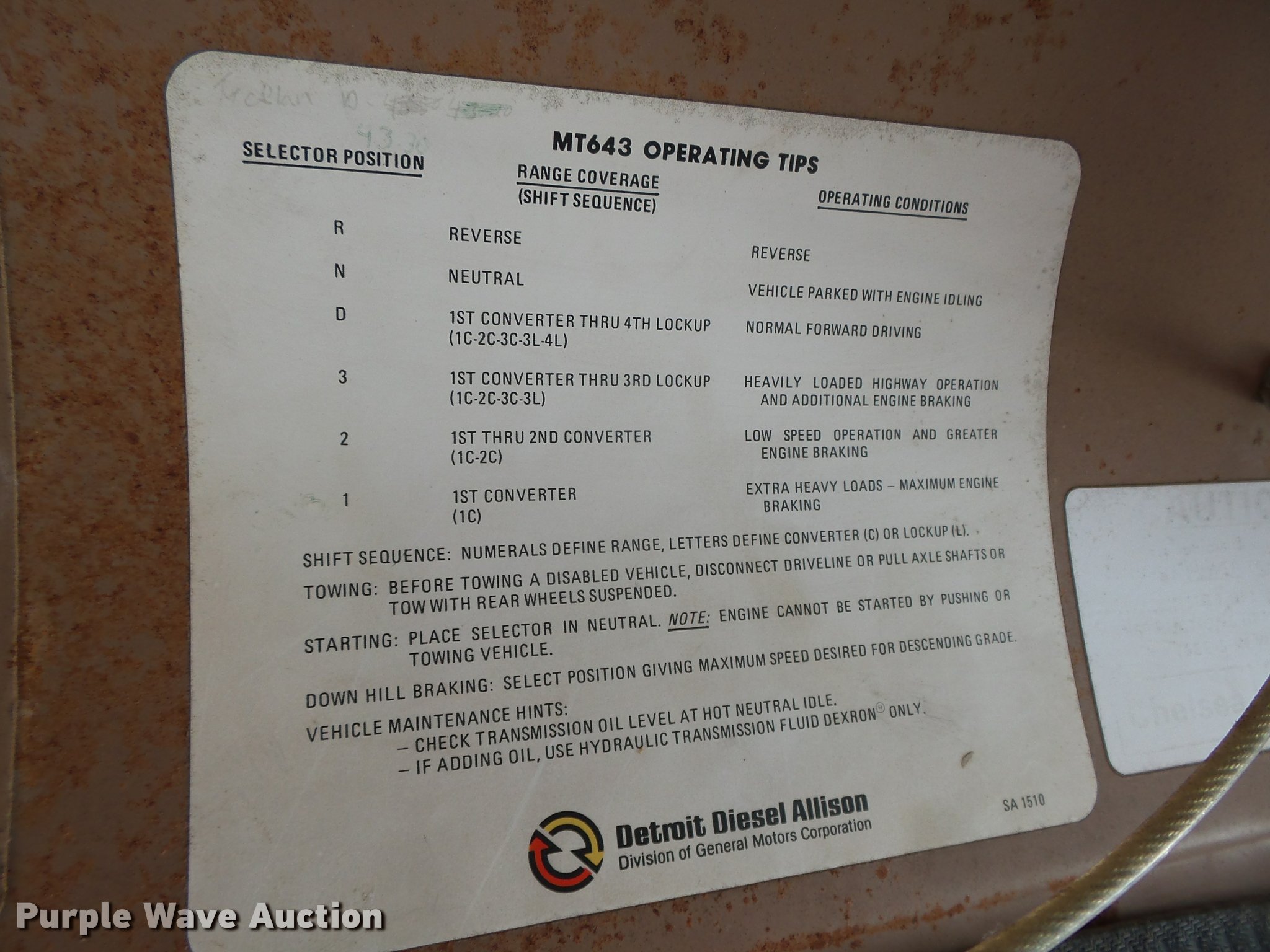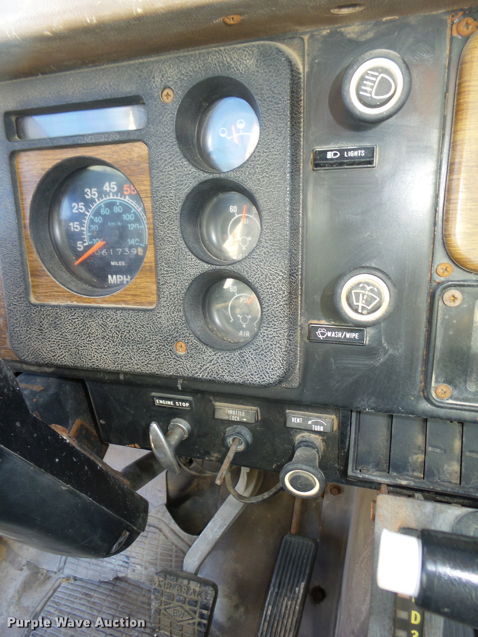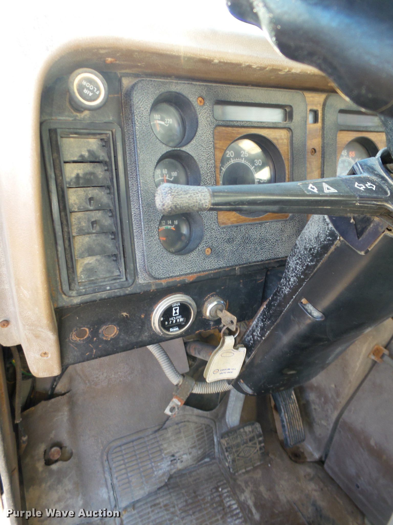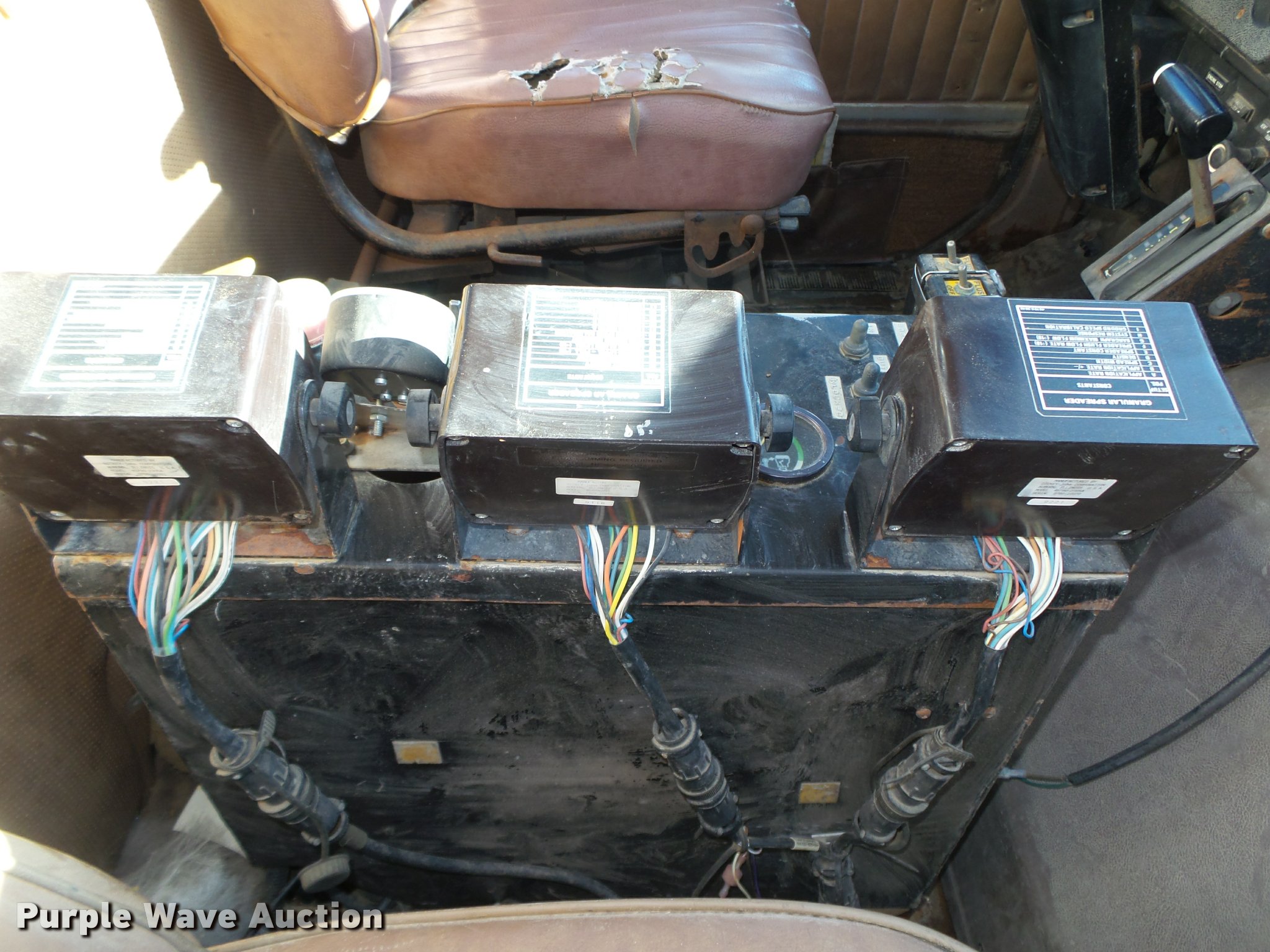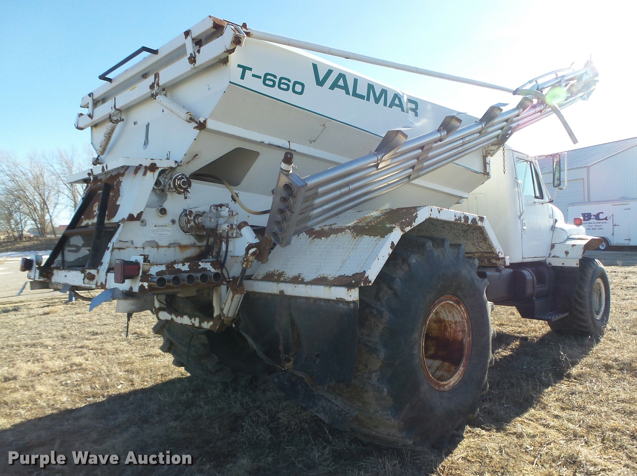 Purple Wave is selling a used Applicator Truck in Nebraska. This item is a 1982 International 1954 Easy Rider 1600C applicator truck with the following: 61,740 miles on odometer, 6,731 hours on meter, International DT466 six cylinder turbo diesel engine, Allison MT643 automatic transmission, 50'W boom, Five boom sections, Hydraulic boom fold, Manual wing ends, Foam marker tank, Valmar T660 stainless steel floater mount, Dual chain conveyor, Serial T660B116, Deutz four cylinder diesel engine, Serial 8051871, Air compressor/blower, AC and heat, Unknown operating condition of AC, AM/FM/cassette, Air suspension seat, Dickey John monitor, DjCCS application monitor, DjCMS100 application monitor, DjCCS100 application monitor, Air brakes, Spring suspension, 48x25.00-20 front flotation tires, 66x43-25 rear flotation tires, GVWR 69,471 lbs