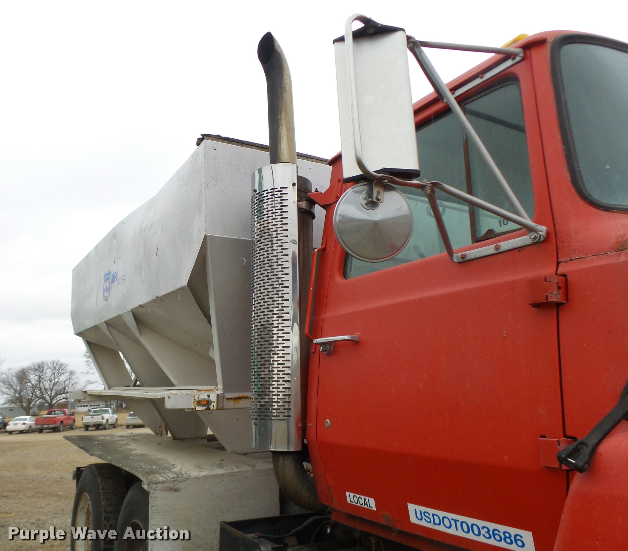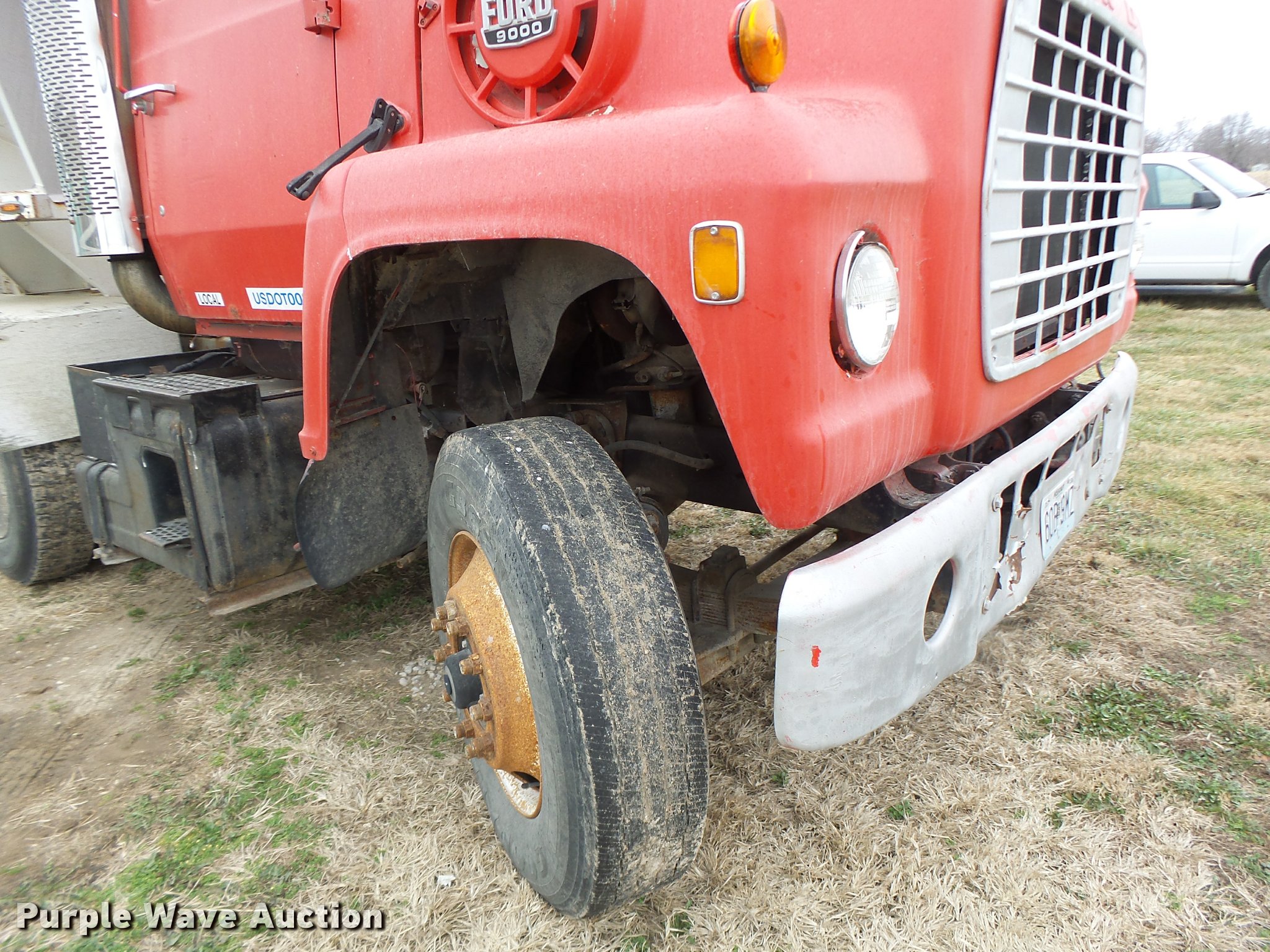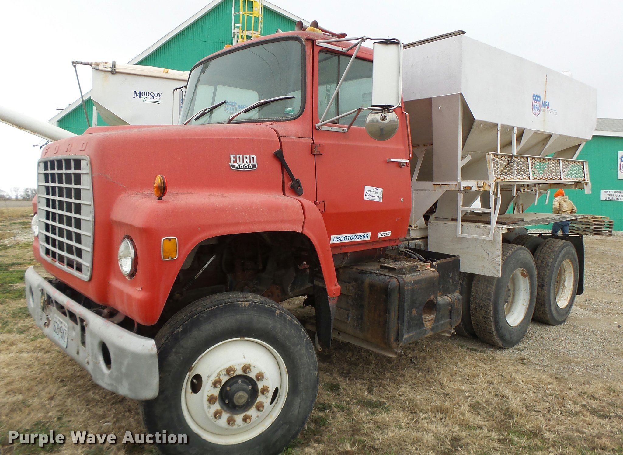 Purple Wave is selling a used Fertilizer or Feed Delivery Truck in Missouri. This item is a 1984 Ford LNT9000 tender truck with the following: 373,740 miles on odometer, Cummins N14 14.0L L6 turbo diesel engine, Seven speed manual transmission, Tandem axle, Heat, Suspension seat, PTO, Single exhaust stack, 10'L tender bed, Eight ton capacity, Auger, Dual fuel tanks, Spring suspension, Air brakes, 295/75R22.5 front tires, 11R22.5 rear tires
