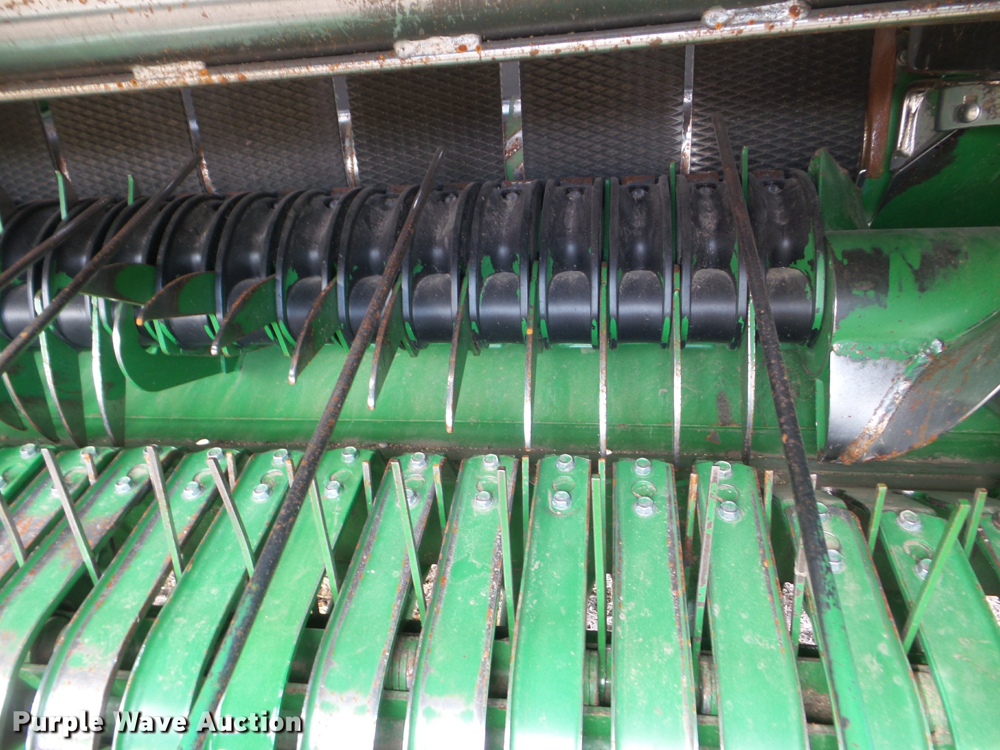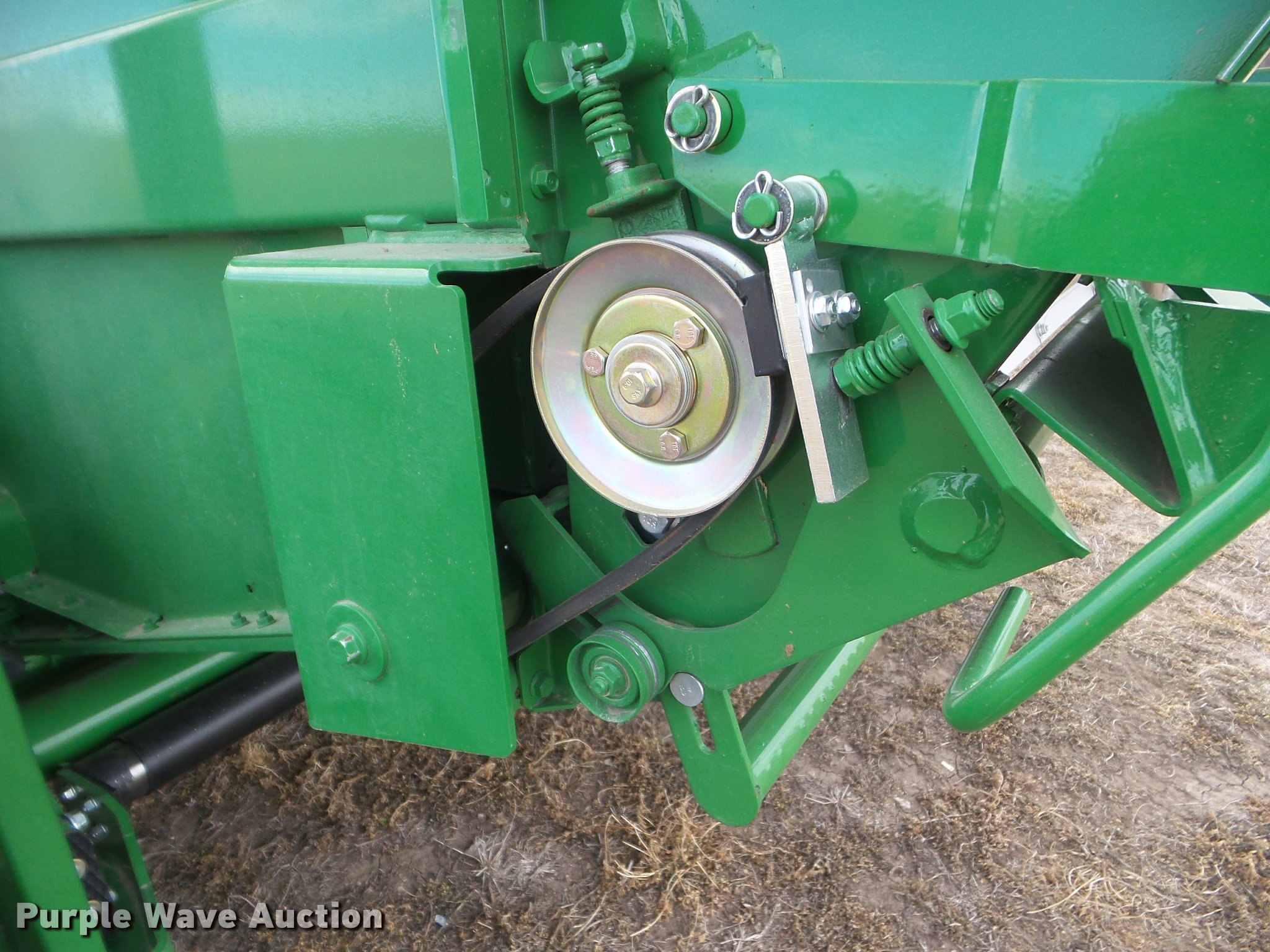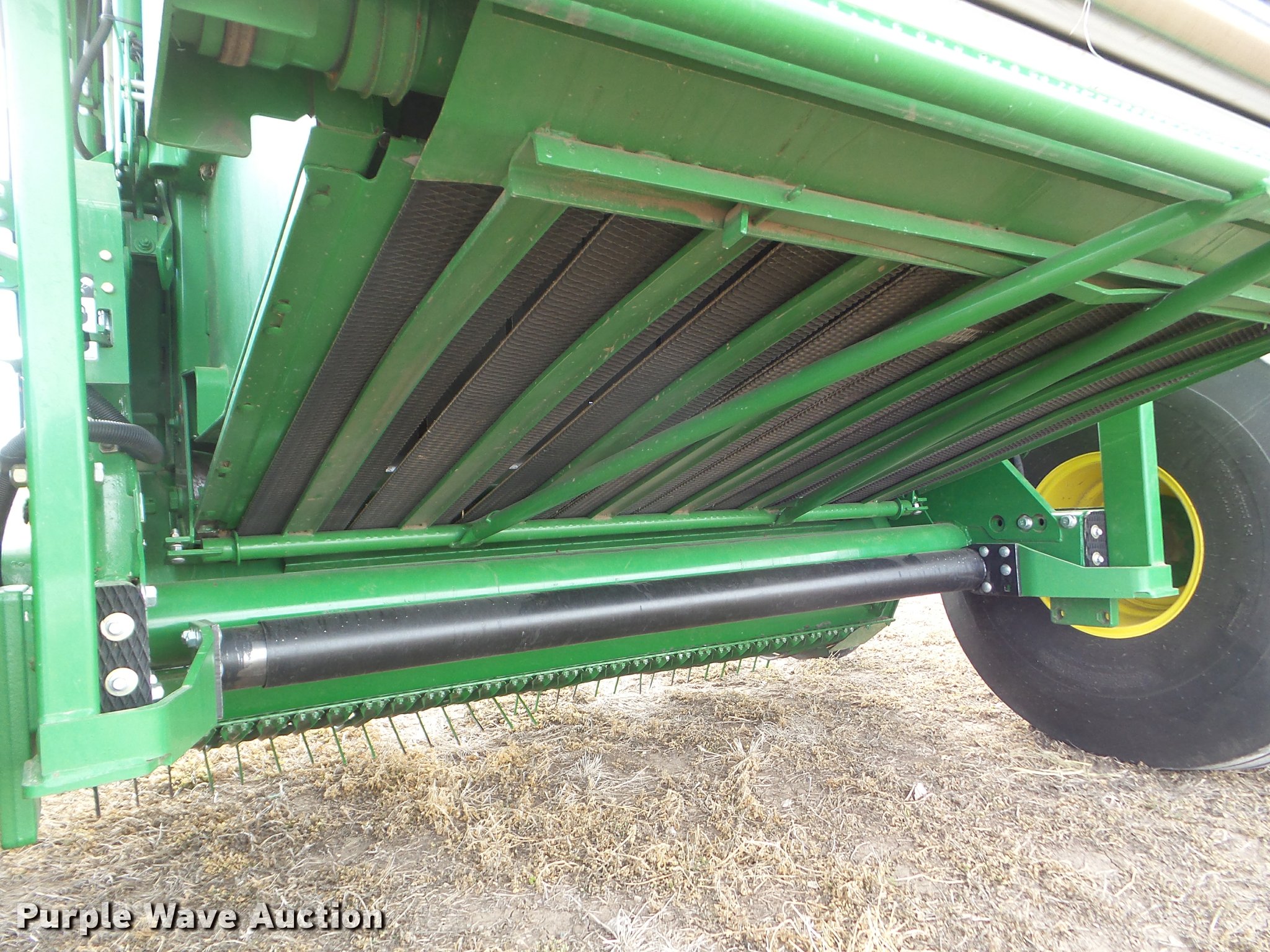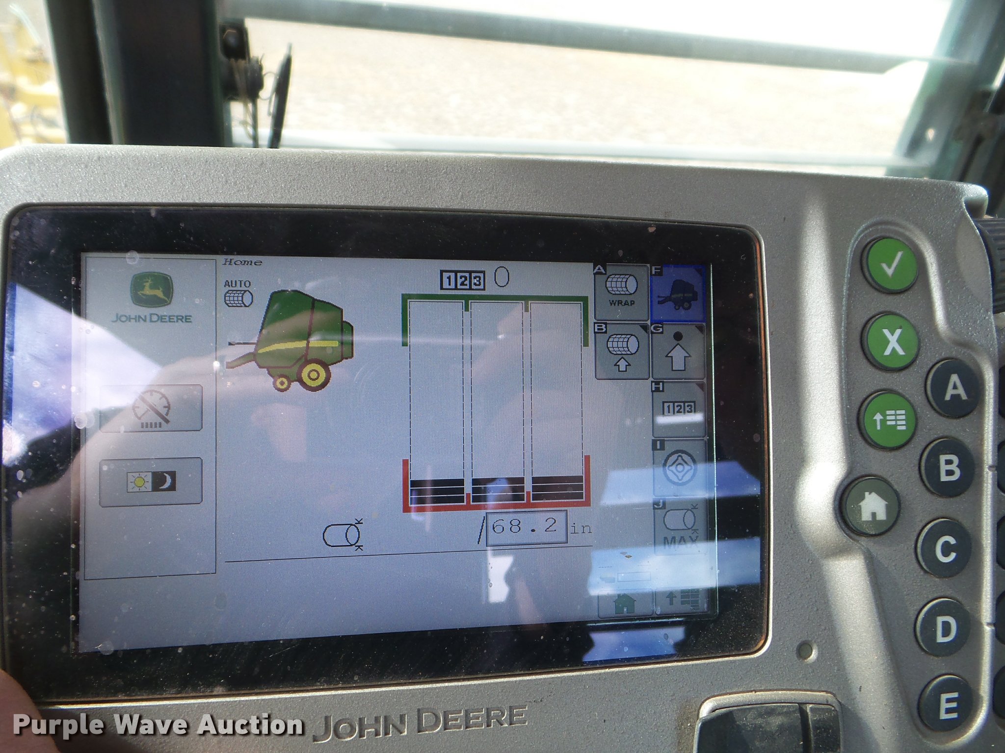 Purple Wave is selling a used Round Baler in Kansas. This item is a 2013 John Deere 569 Premium round baler with the following: 3,822 bales on counter, 5' x 6' bale capacity, 72"W pickup, Hydraulic pickup lift, 4.80-8/3.75 gauge wheels, John Deere GreenStar 2 monitor, Net-wrap, Bale kicker, Transport lights, 1000 PTO, Pin hitch, 21.5-16.1 tires, Manual, Serial 1E005690TDB390849