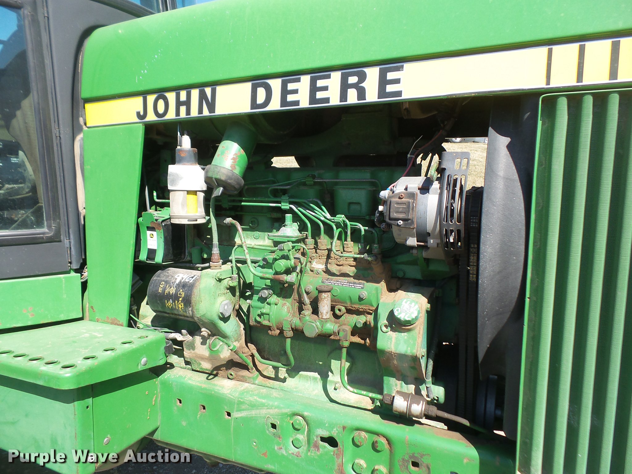 Purple Wave is selling a used Tractor in Missouri. This item is a 1985 John Deere 4250 tractor with the following: 9,535 hours on meter, John Deere 7.6L six cylinder turbo diesel engine, 120 HP, Powershift transmission, 15F-4R gears, AC and heat, Tilt steering wheel, AM/FM, Suspension seat, Three point, 540/1000 PTO, (3) rear hydraulic remote sets, 11.00-16 front tires, 18.4-38 dual rear tires, Serial RW4250P009274