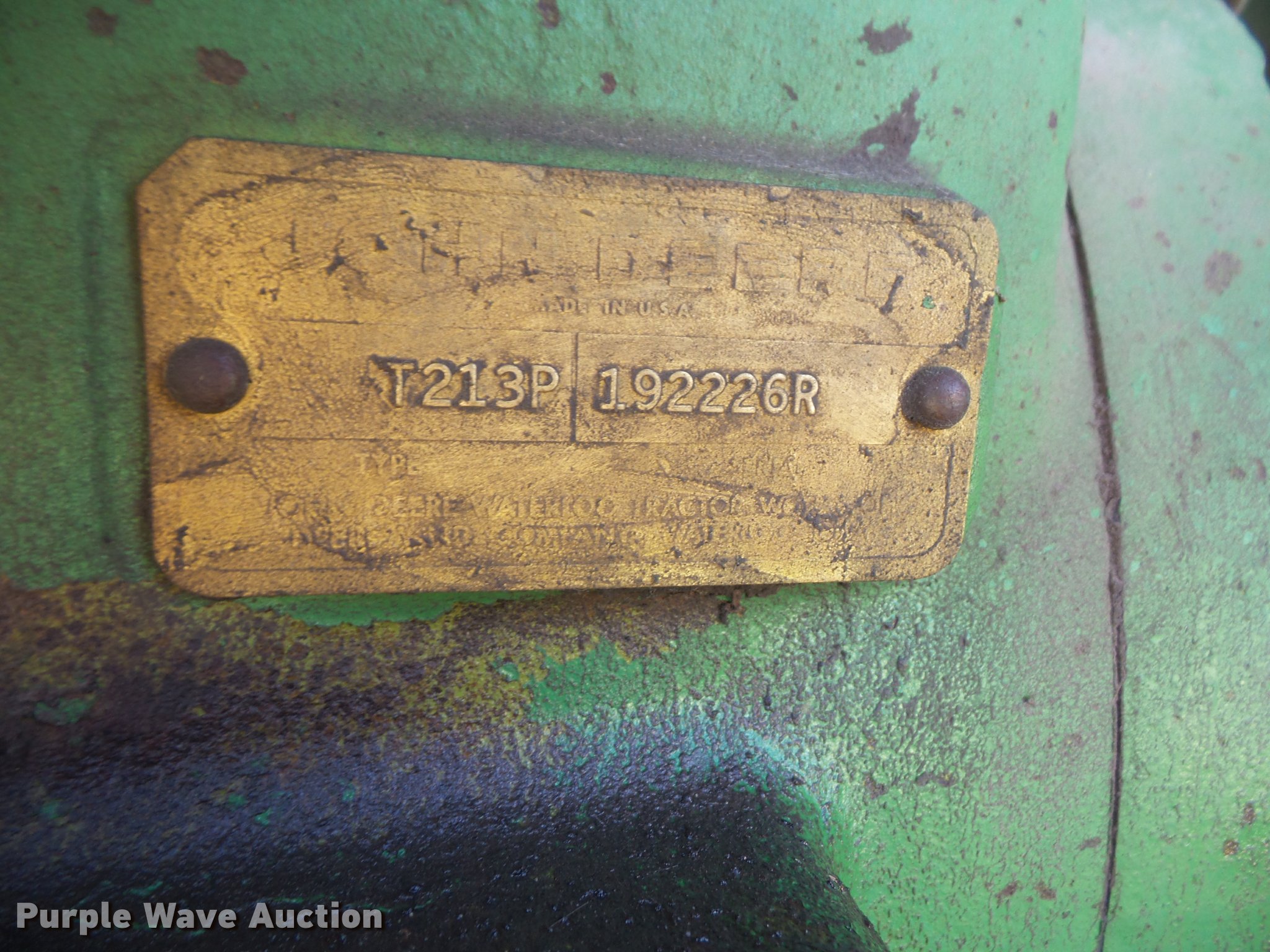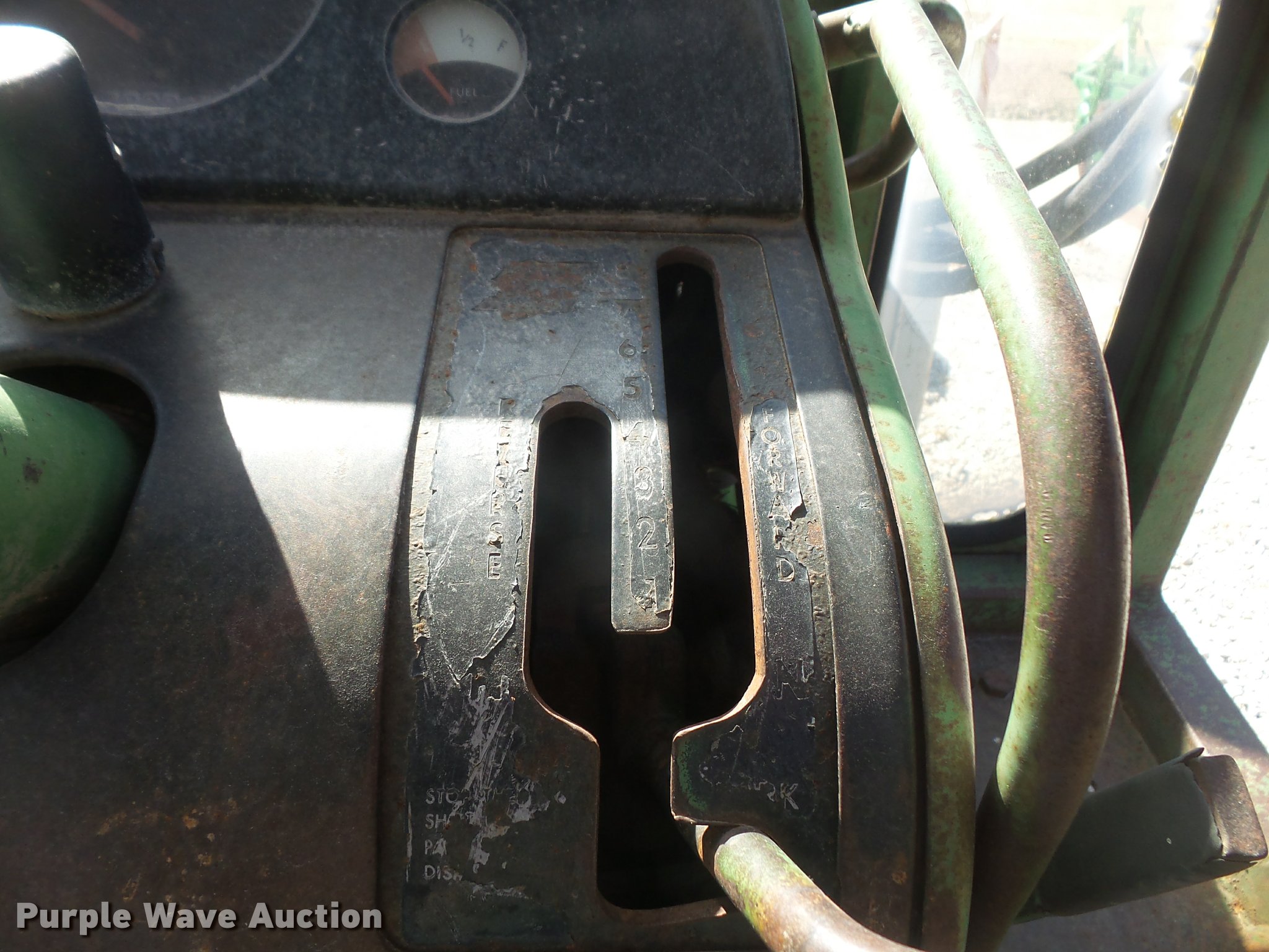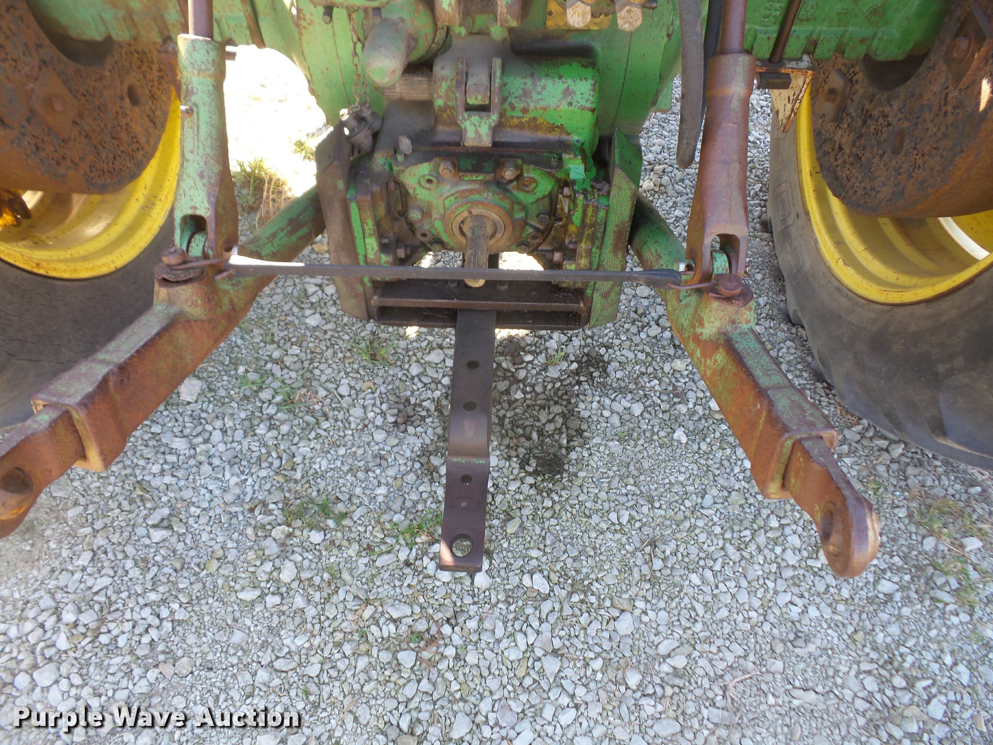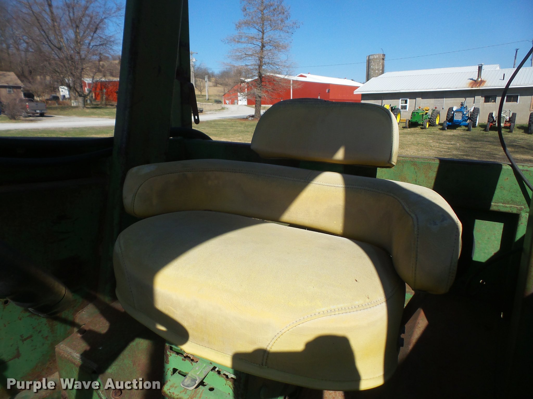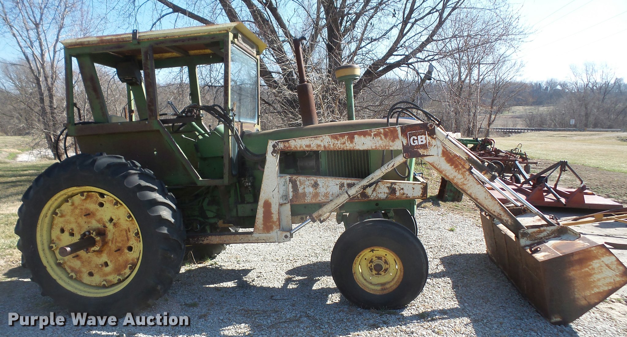 Purple Wave is selling a used Tractor in Missouri. This item is a 1968 John Deere 4020 tractor with the following: 6,099 hours on meter, John Deere 6.6L six cylinder diesel engine, 95 HP, Powershift transmission, 8F-4R gears, GB loader, 84"W bucket, Two-lever controls, Three point, 540/1000 PTO, (2) rear hydraulic remote sets, (2) wheel weights, 10.00-16 front tires, 15.5-38 rear tires, Dead batteries, Weep holes leak on side of engine block, Serial 192226R