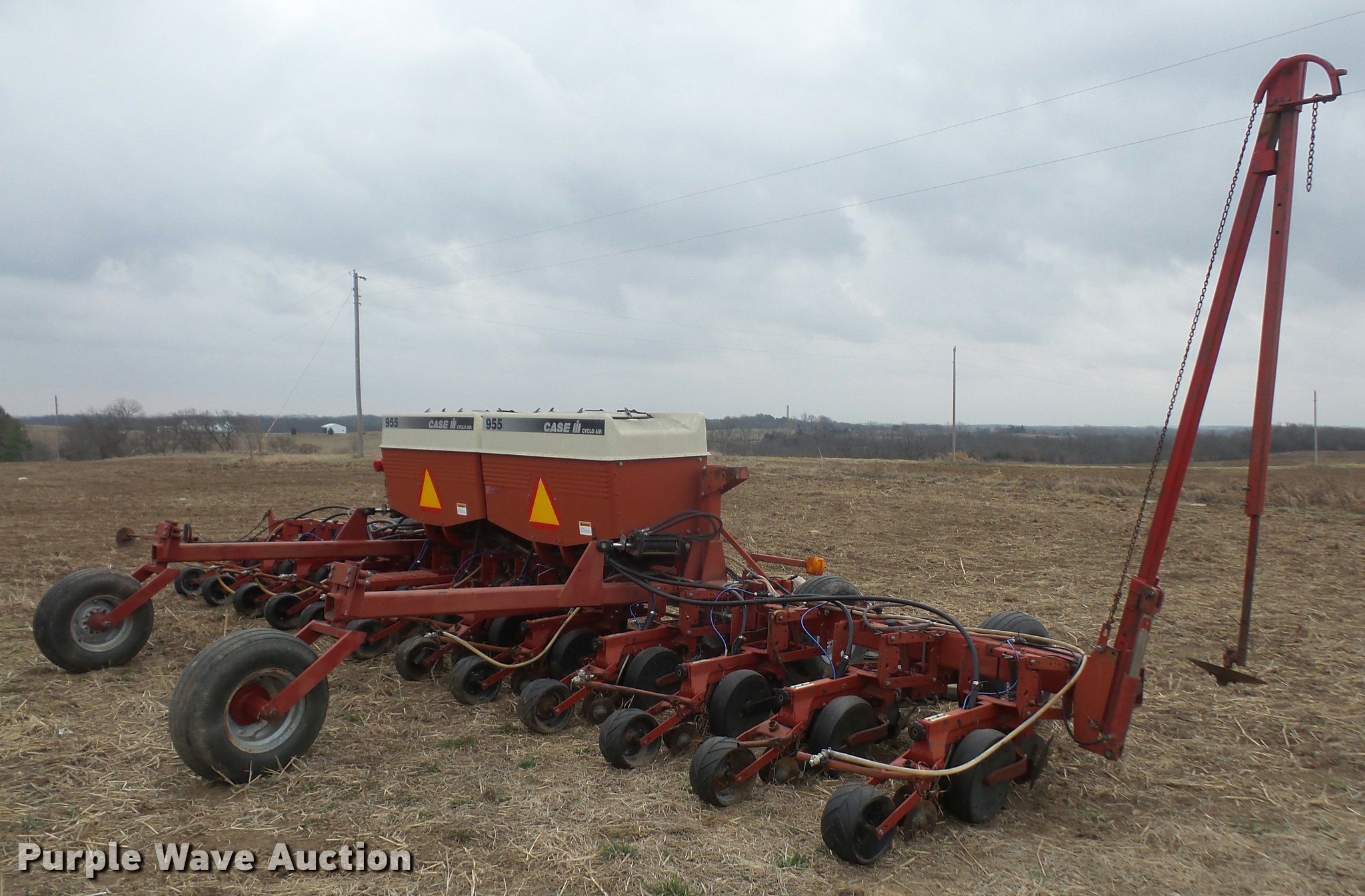 Purple Wave is selling a used Planter in Kansas. This item is a Case IH 955 planter with the following: 12 row units, 30" row spacing, Marker arms, Hydraulic wing fold, Ground meter drive, Corn and soybean seed meters, HD spring down pressure, Row cleaners, Double disk openers, Double gauge wheels, Rubber closing system, Case IH Early Riser monitor, Two point, 9.5L-14 tires, Serial JAG1010860