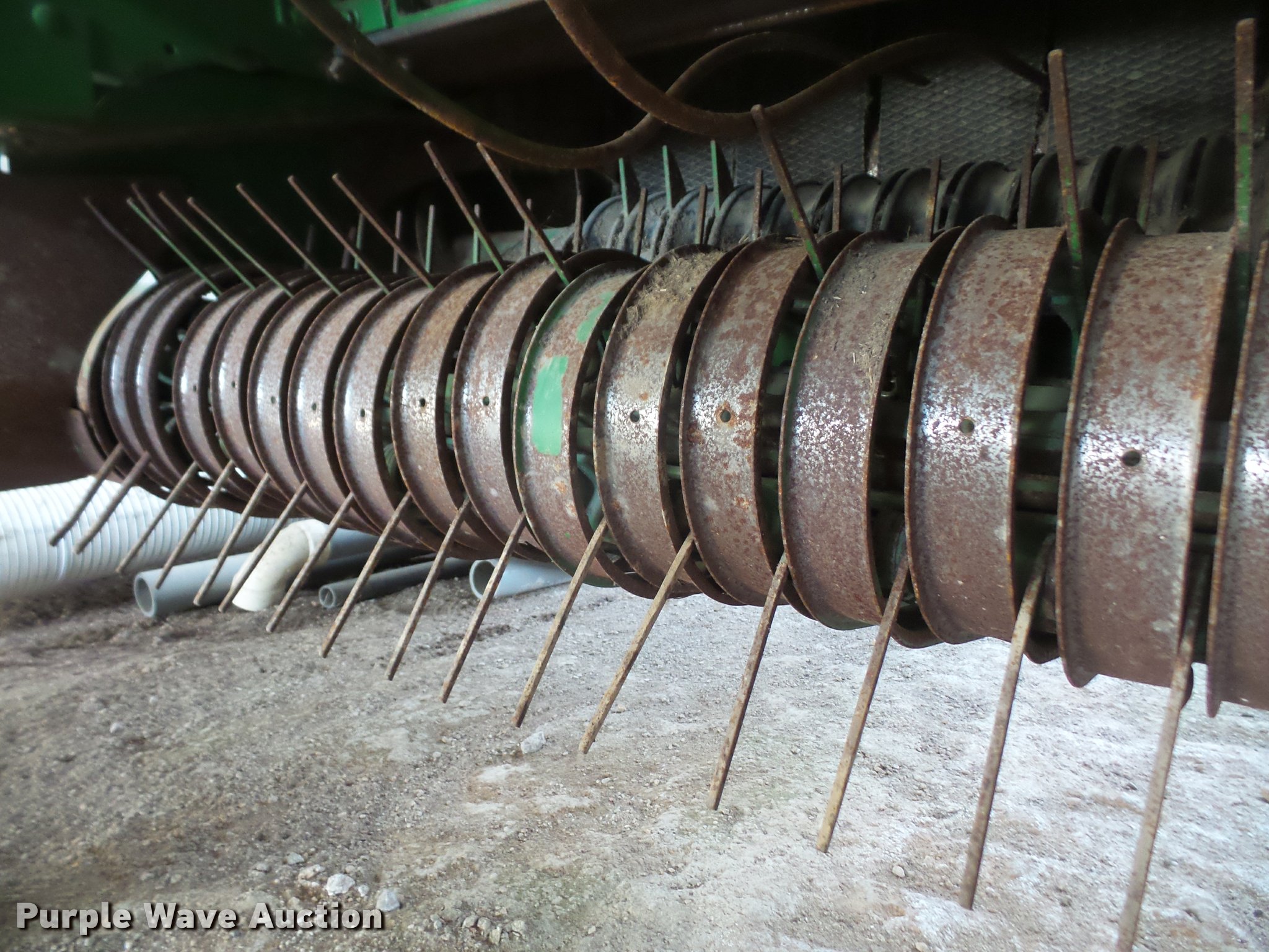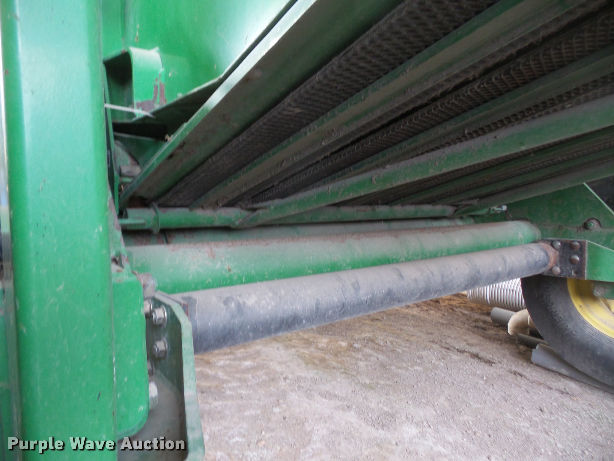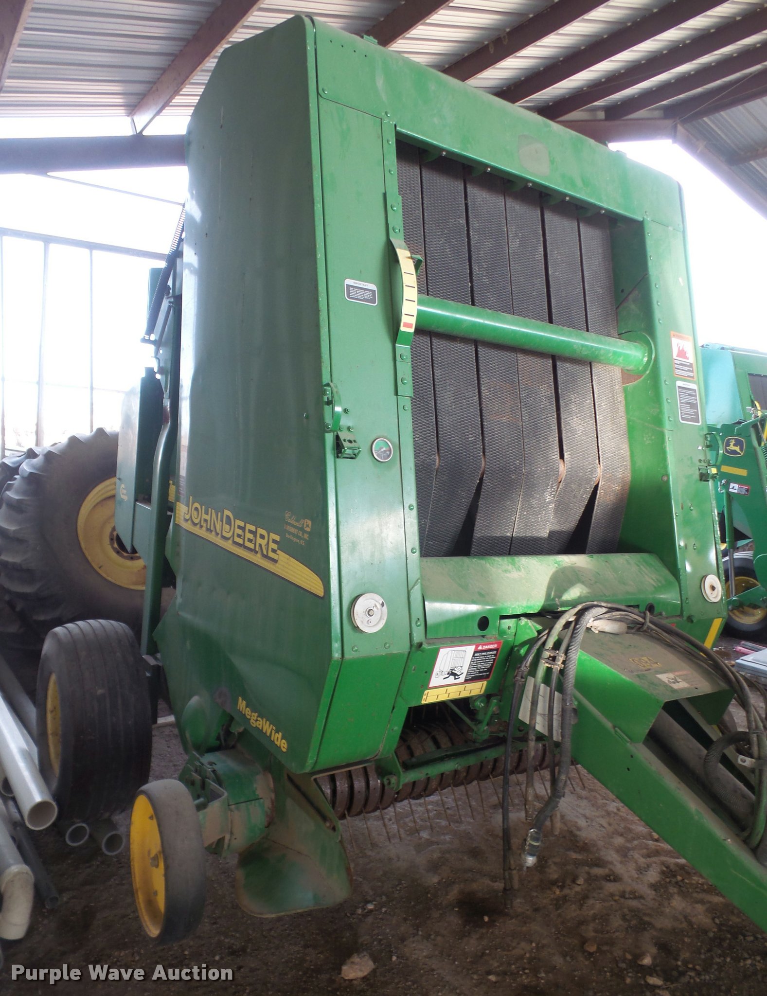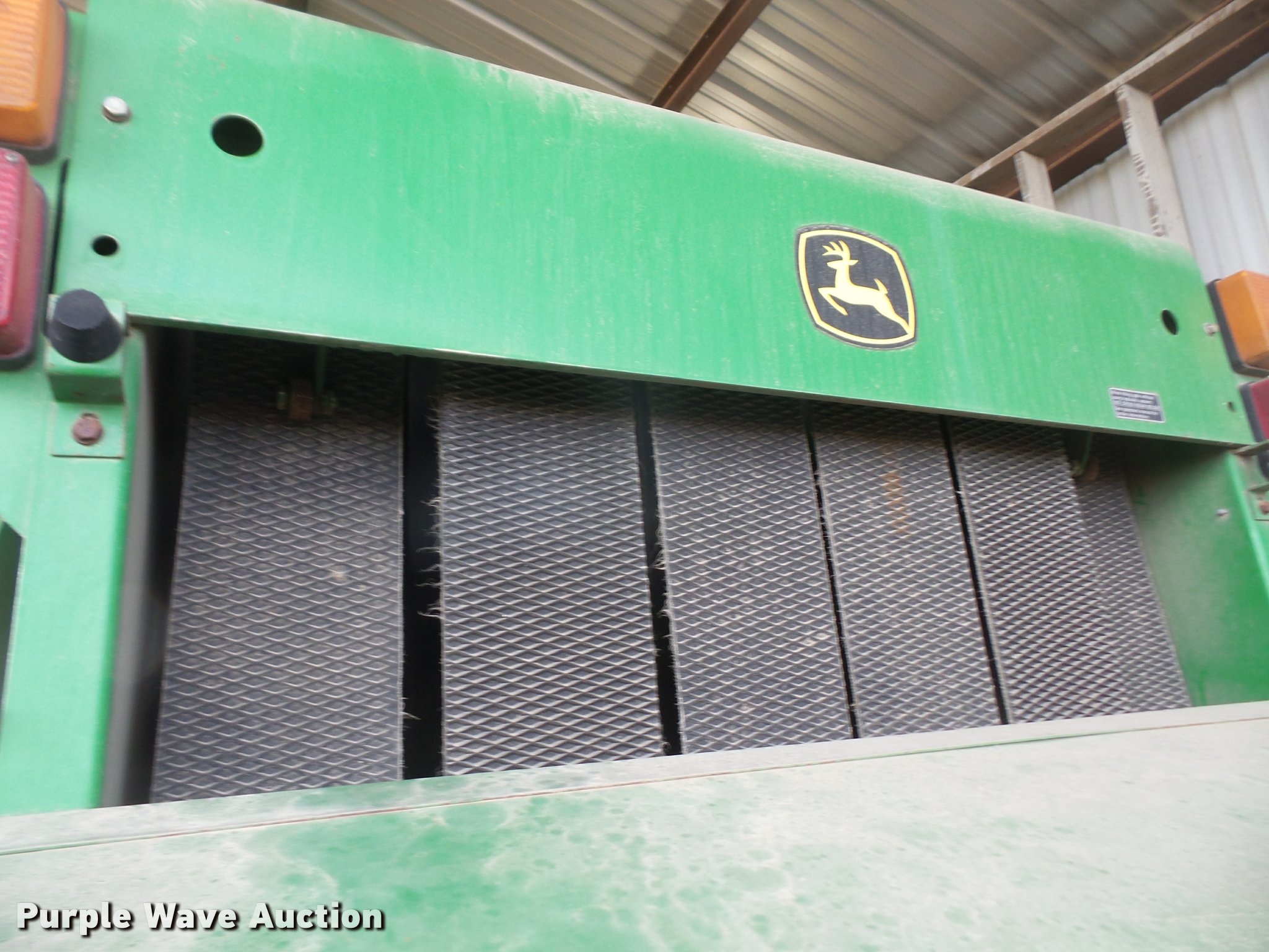 Purple Wave is selling a used Round Baler in Kansas. This item is a 2003 John Deere 467 round baler with the following: Approx. 12,000 bales on counter, 4' x 6' bale capacity, 60"W pickup, Hydraulic pickup lift, Gauge wheels, Twin twine tie, New-wrap, Bale kicker, John Deere monitor, Transport lights, 540 PTO, Pin hitch, 31x13.50-15 tires, Serial E00467X193039