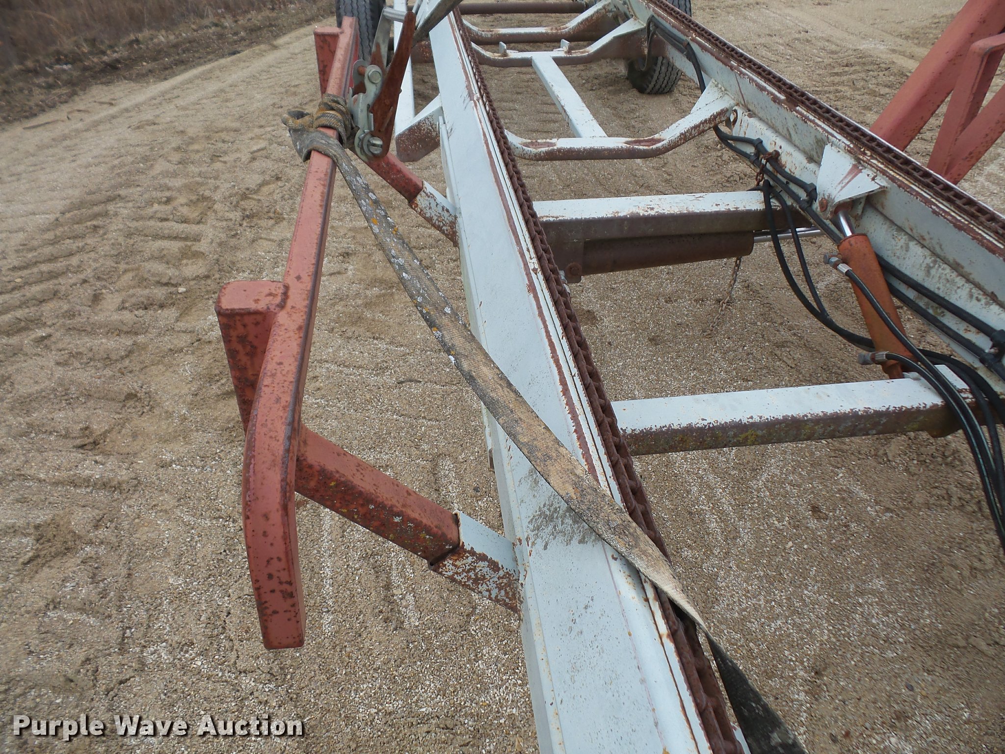 Purple Wave is selling a used Hay Handling in Kansas. This item is a DewEze round bale mover with the following: 28'L, Hydraulic loader, Hydraulic dump, Tandem axle, 9.50-16.5 tires, No hydraulic controller