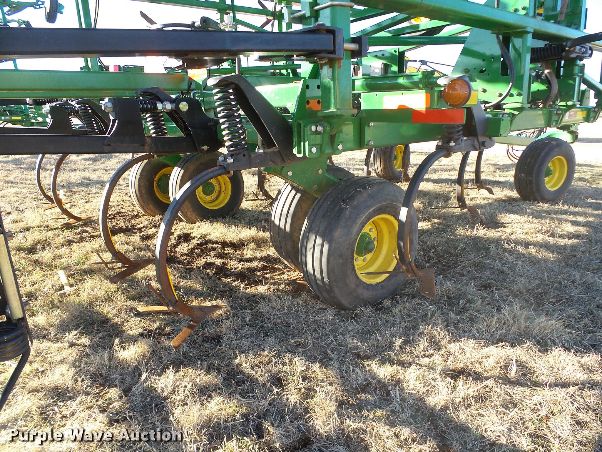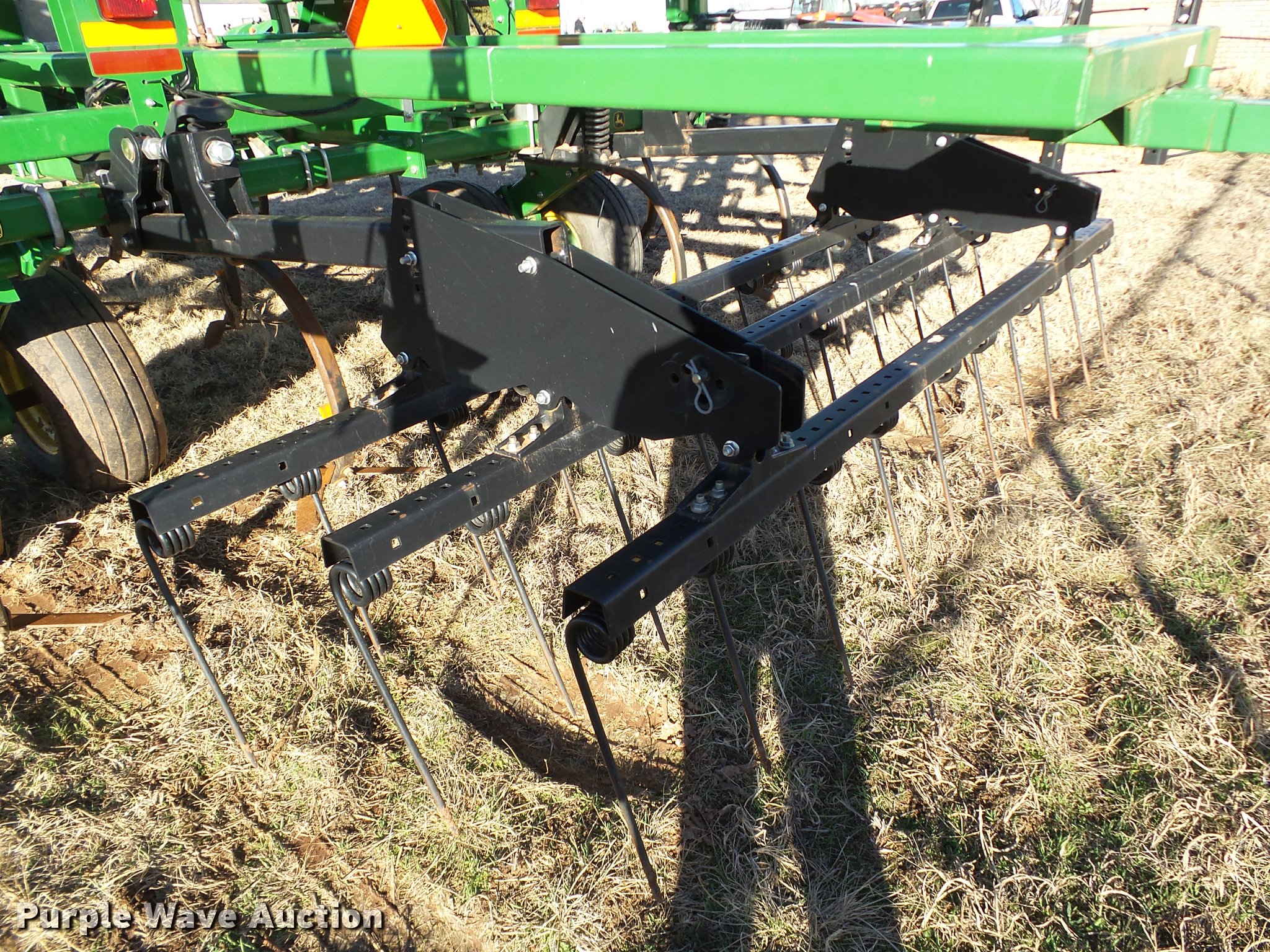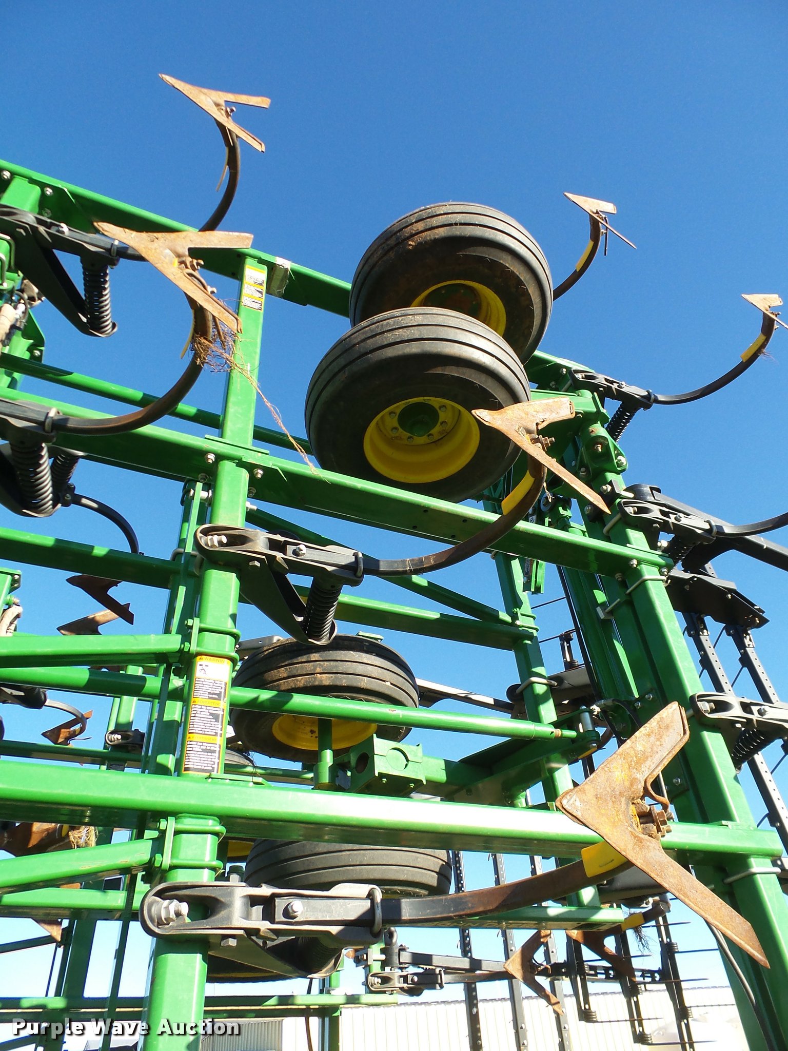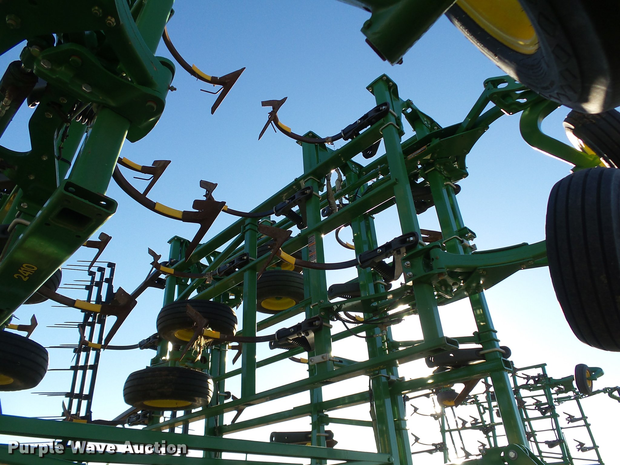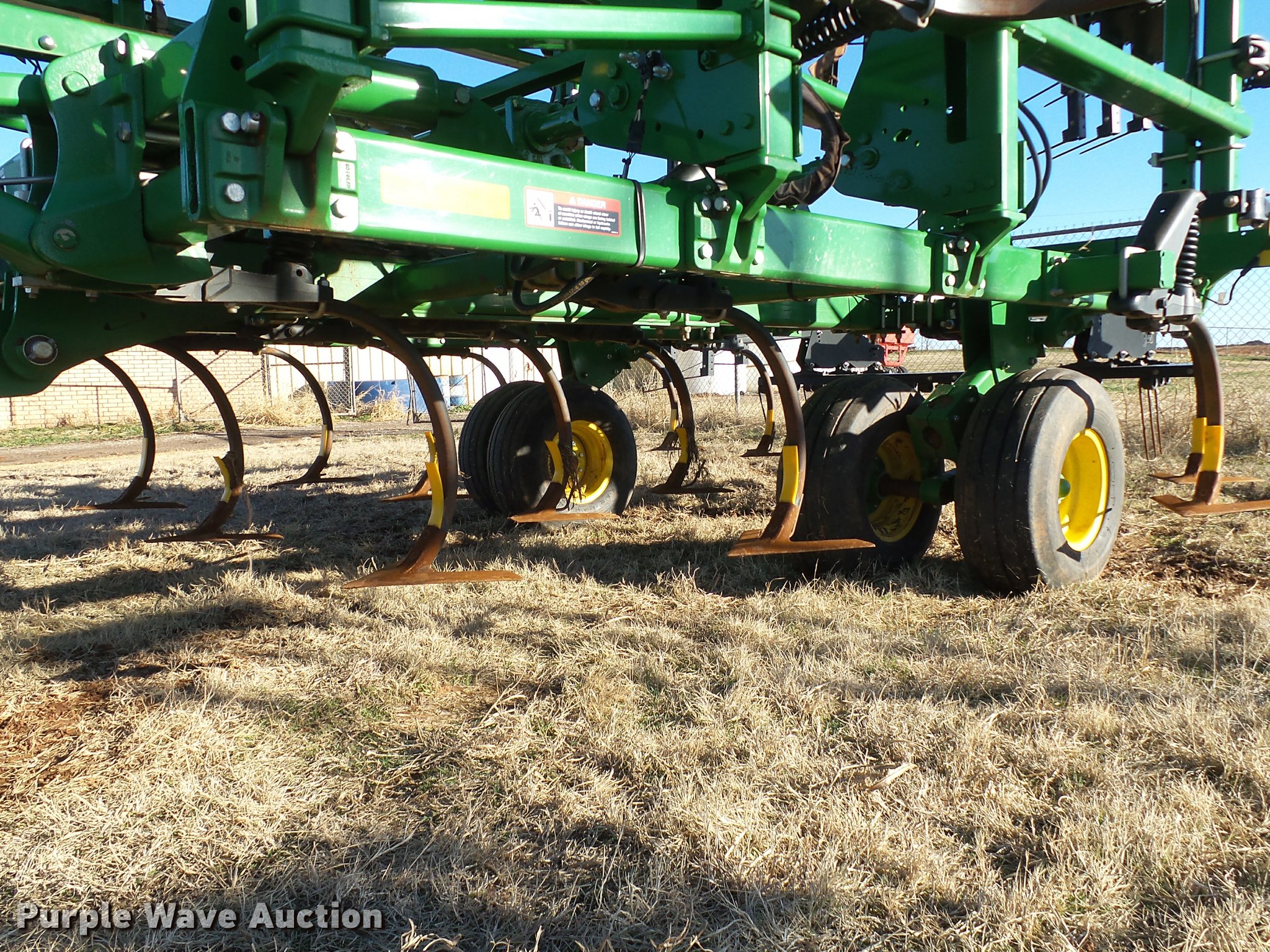 Purple Wave is selling a used Chisel in Oklahoma. This item is a 2015 John Deere 2410 chisel plow with the following: 52'W, Five sections, (52) spring-loaded shanks, 18" sweep width, 12" spacing, Hydraulic lift and fold, Manual leveler, Three bar tine harrow, John Deere 240 coil-tine harrows, AccuDepth system, Soil management system, Transport lights, Slab hitch, Rear pin hitch, Walking tandem axle, 12.5L-15FI tires, Serial 1N02410XEF0760162