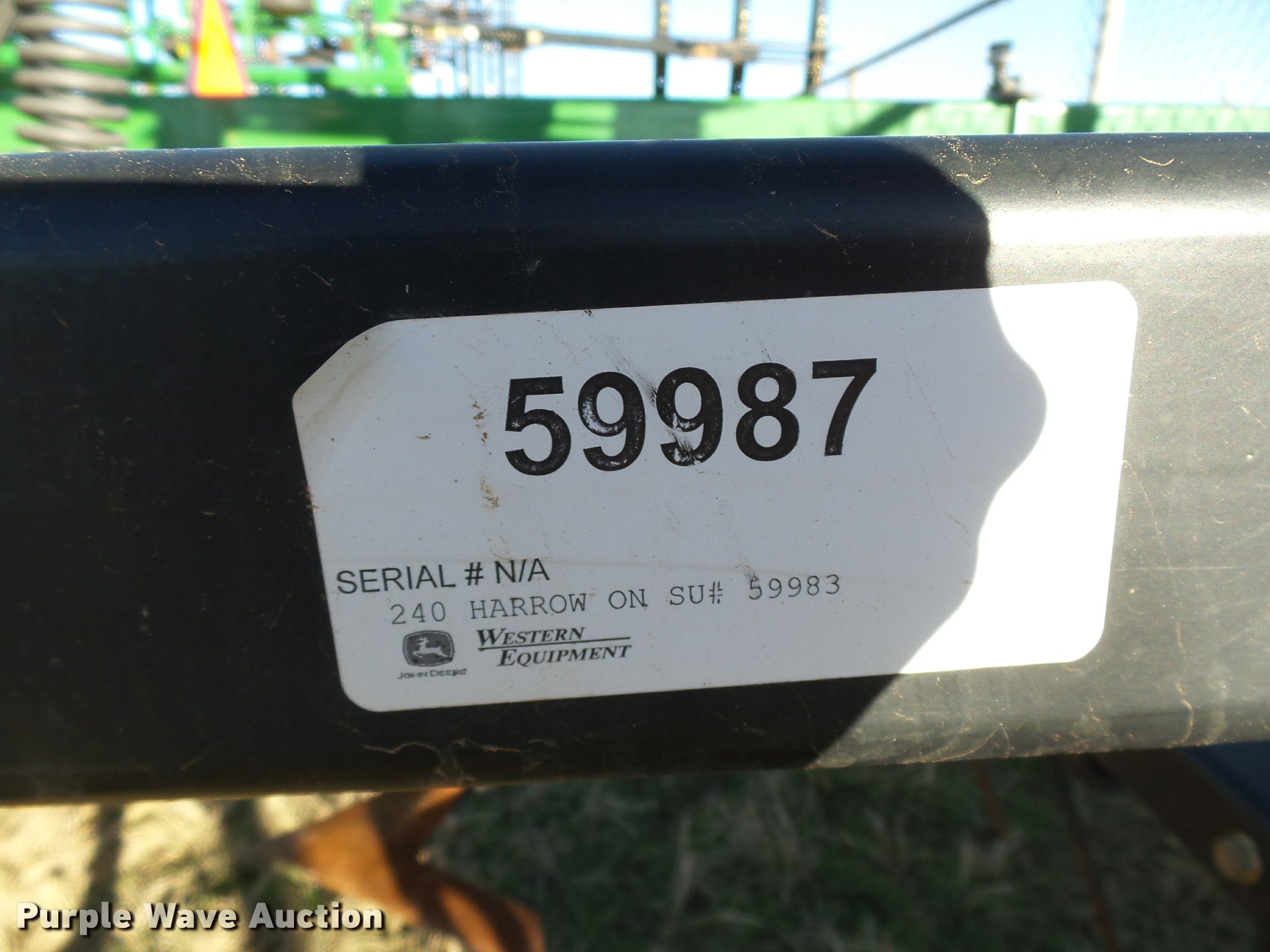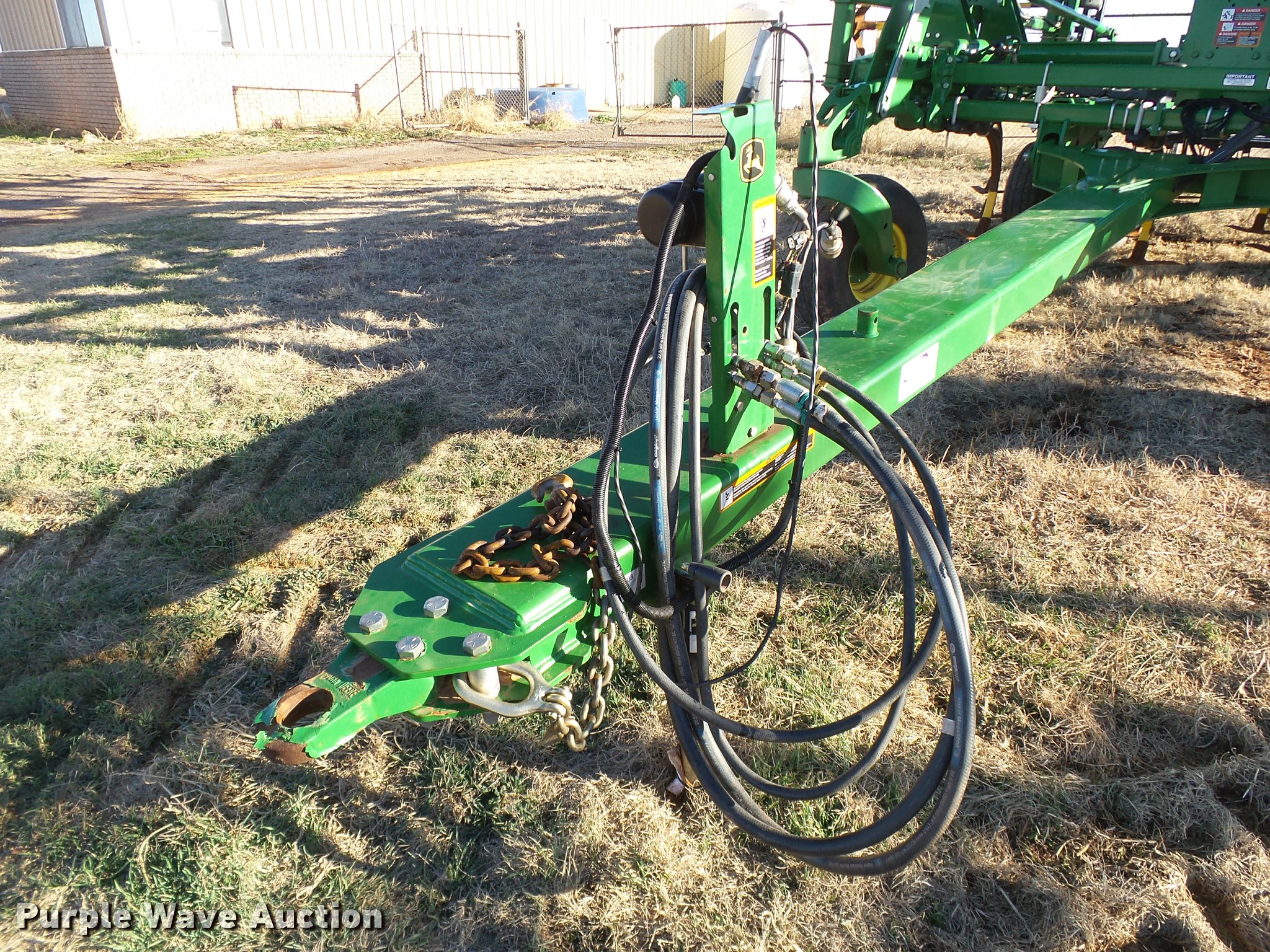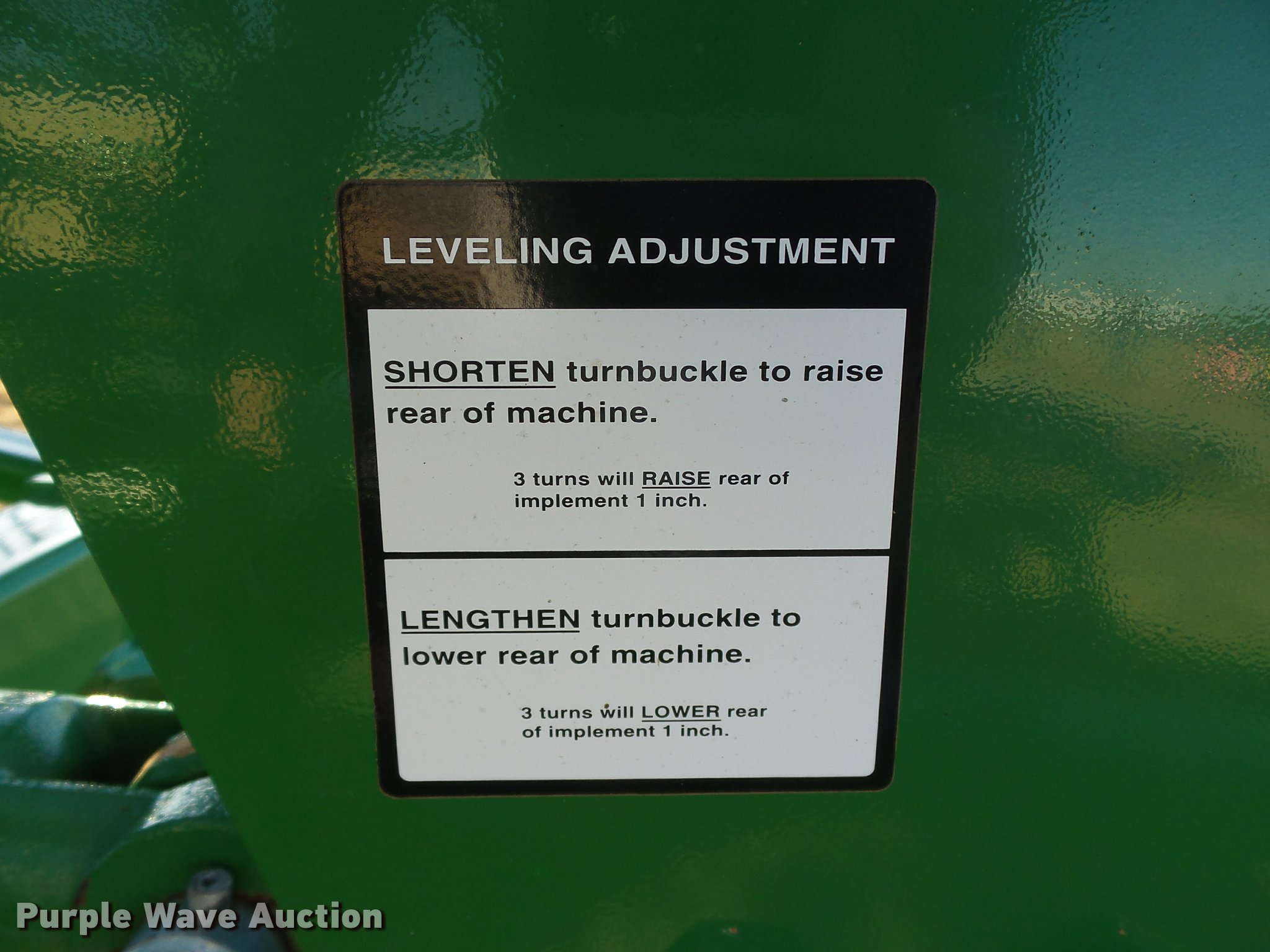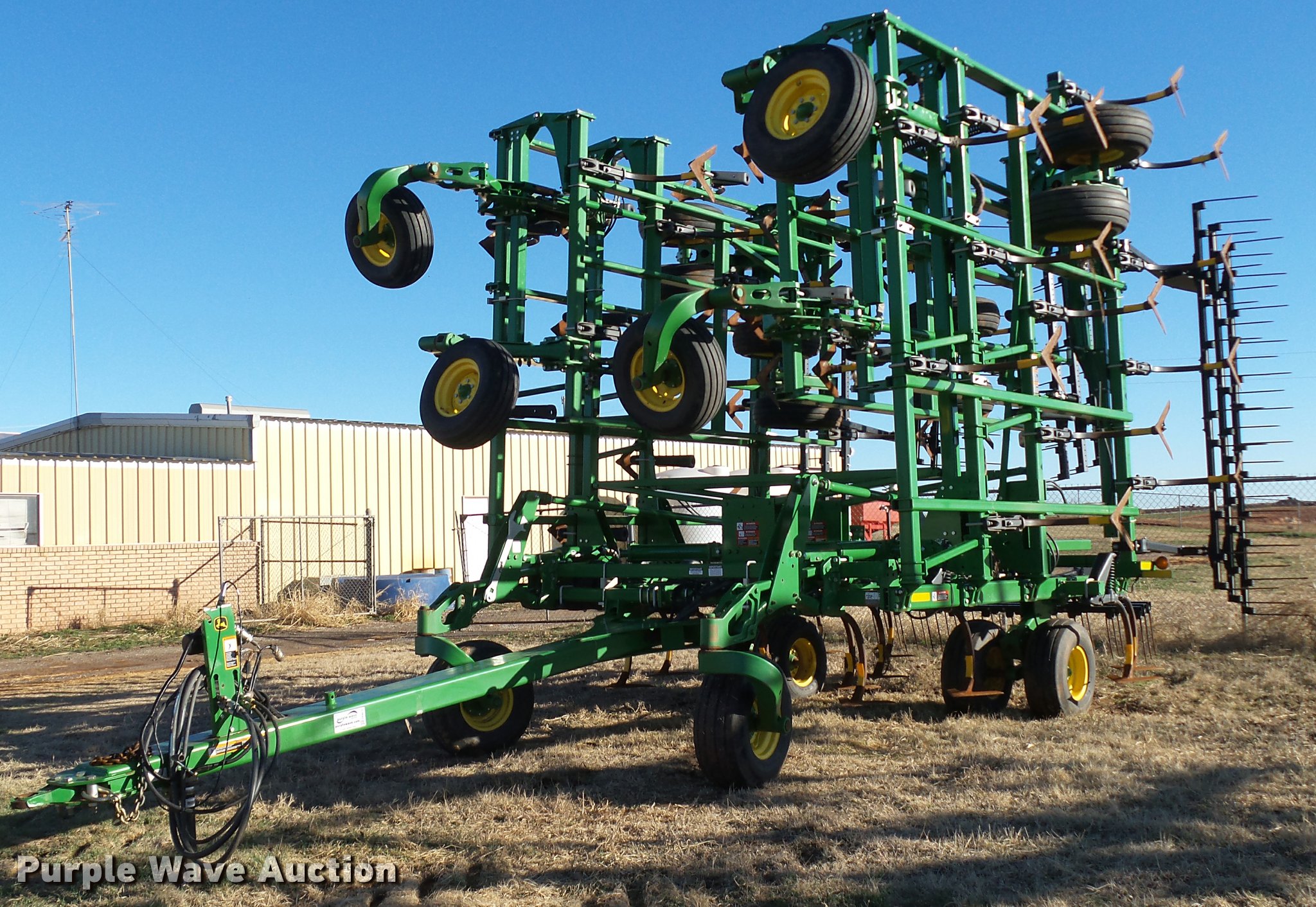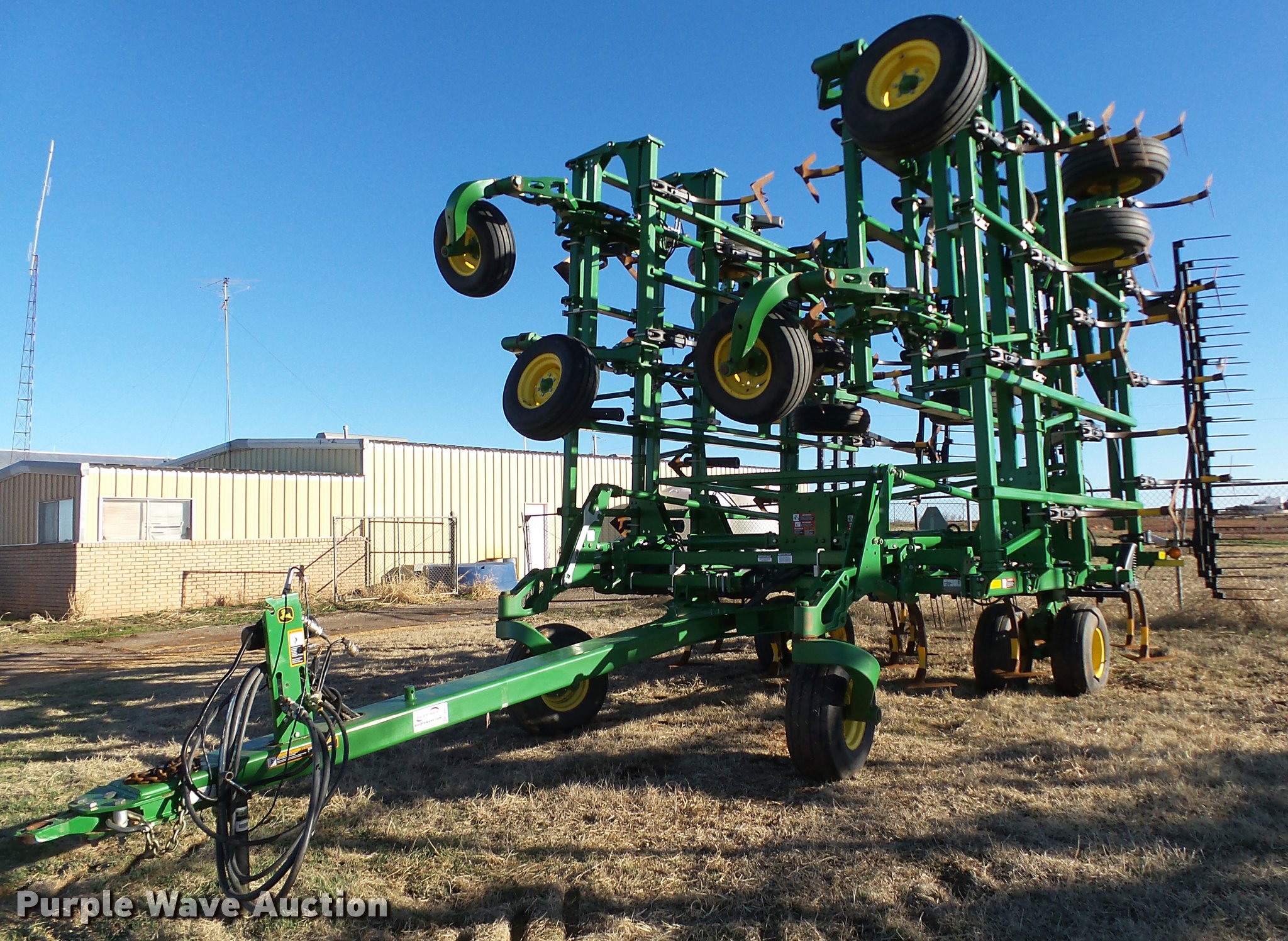 Purple Wave is selling a used Chisel in Oklahoma. This item is a 2015 John Deere 2410 chisel plow with the following: 52'W, Five sections, (52) spring-loaded shanks, 18" sweep width, 12" spacing, Hydraulic lift and fold, Manual leveler, Three bar tine harrow, John Deere 240 coil-tine harrows, AccuDepth system, Soil management system, Transport lights, Slab hitch, Rear pin hitch, Walking tandem axle, 12.5L-15FI tires, Serial 1N02410XEF0760162
