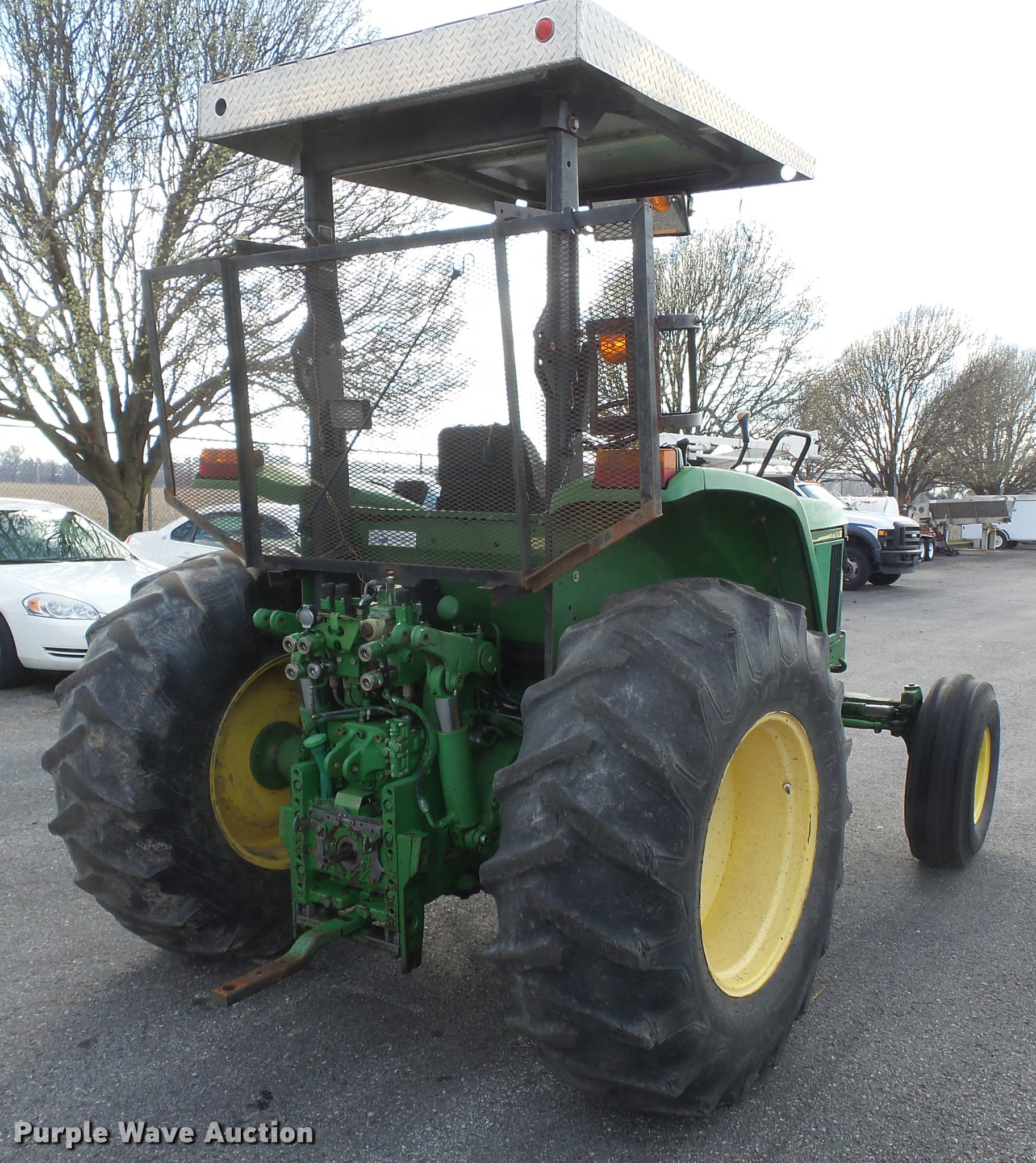 Purple Wave is selling a used Tractor in Missouri. This item is a 2001 John Deere 6410 tractor with the following: 1,142 hours on after-marker hour meter, Original hour meter unreadable, John Deere 404 four cylinder diesel engine, Serial CD40455631193, Manual transmission, 12F-4R gears, Differential lock, Tilt steering wheel, 540 PTO, 10.00-16 front tires, 18.4-28 rear tires, Dead battery, No lift arms, Serial L06410H302450, MODOT ID 05818