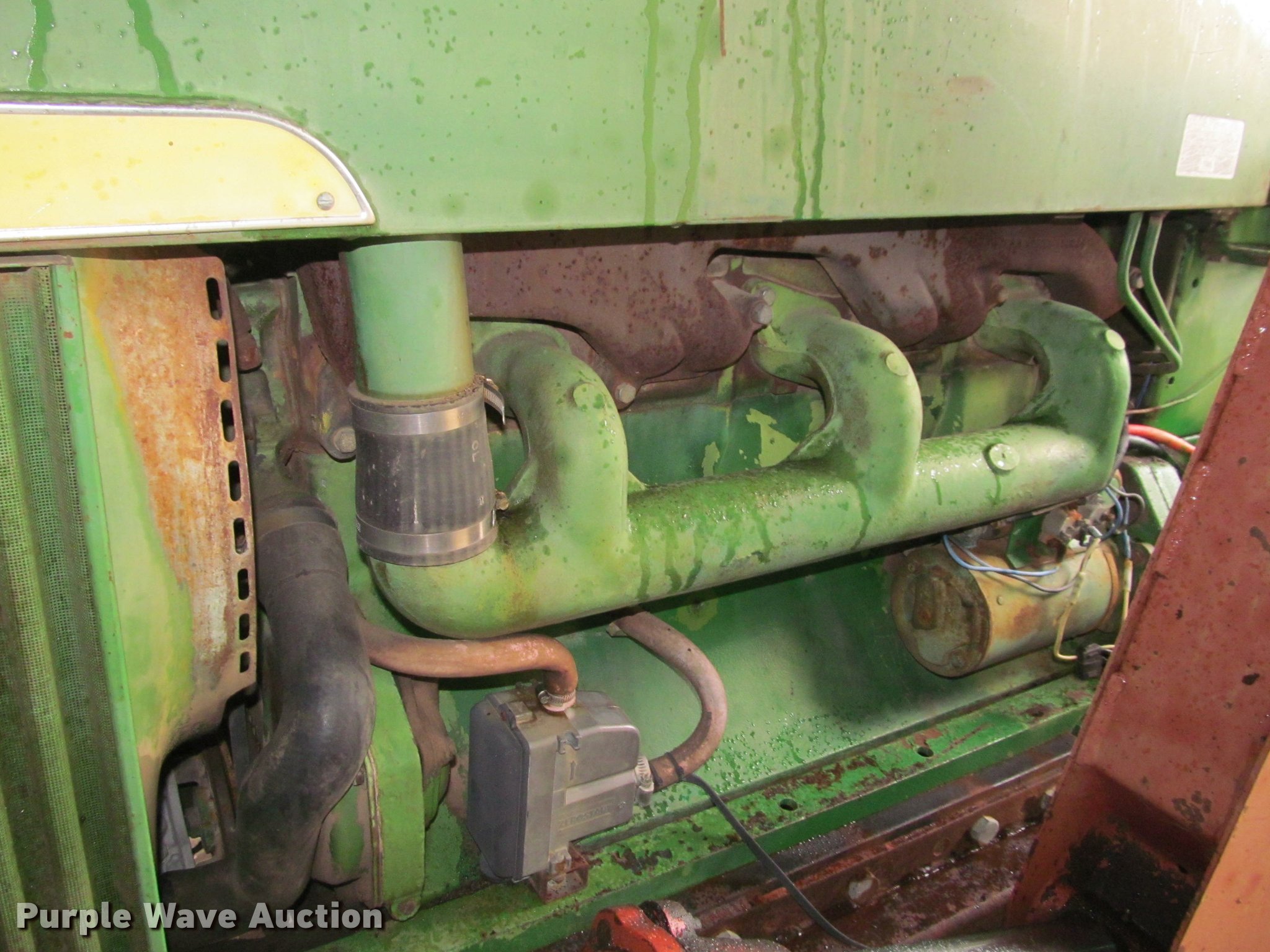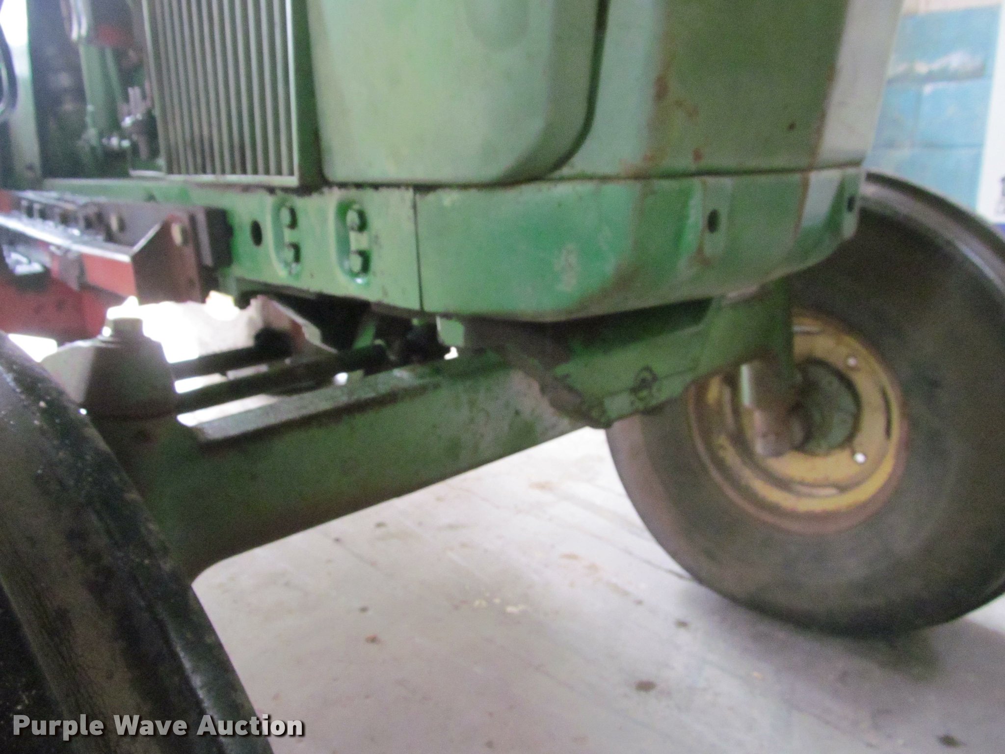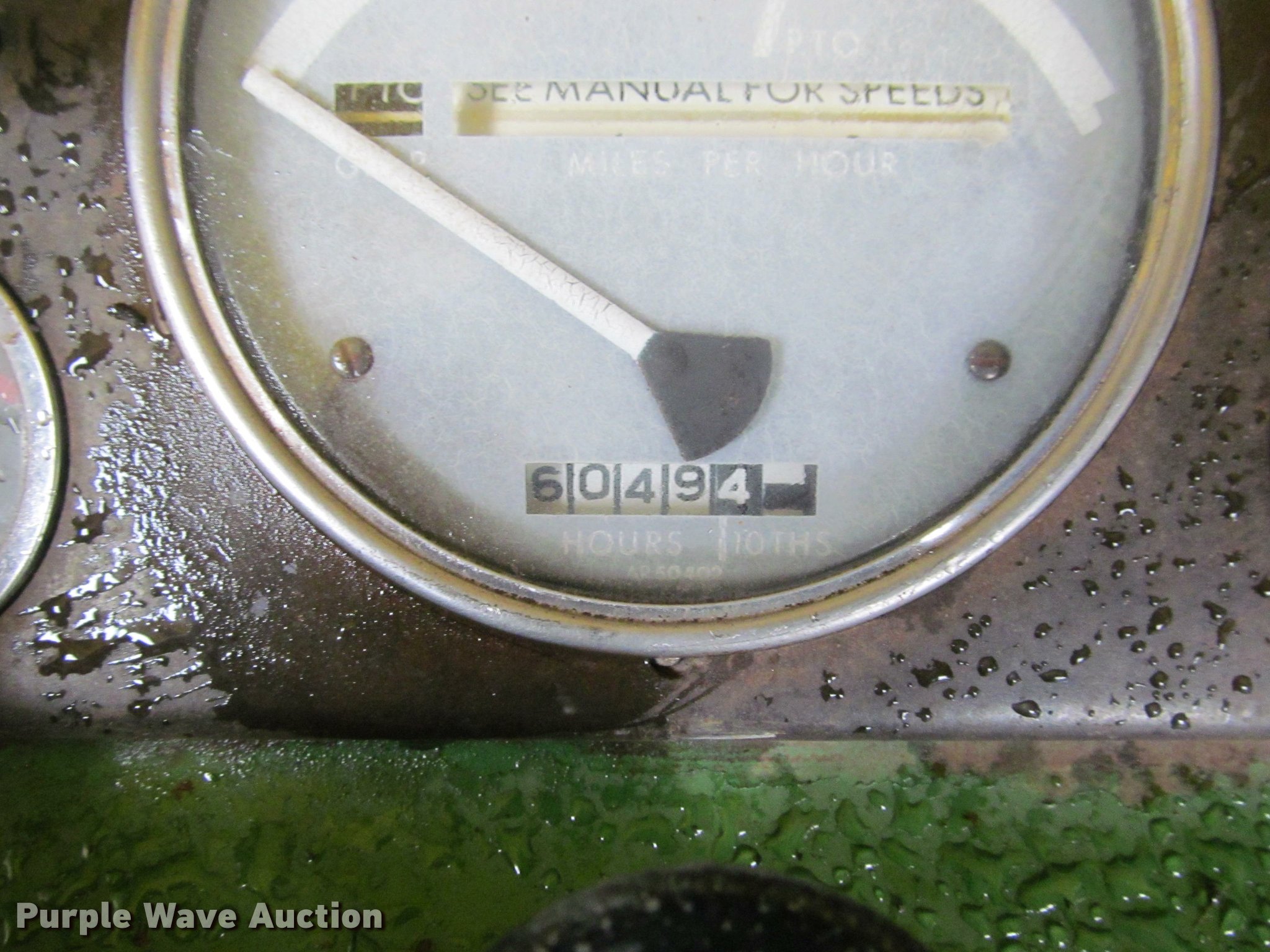 Purple Wave is selling a used Tractor in Kansas. This item is a 1965 John Deere 4010 tractor with the following: 6,049 hours on meter, Six cylinder diesel engine, John Deere synchro range transmission, 8F-3R gears, Shade, Front and rear work lights, Farm Hand F358 loader, 14' high loader, 78"W bucket, 45" bale spear, Two-lever controls, Serial 1401, 540 PTO, (2) rear hydraulic remote sets, Zerostart radiator water heater, (10) wheel weights, Co-Op 11.00-16.5 front tires, Goodyear 18.4-34 rear tires, Hood damage, Seat cracked, Crack in loader mount, Serial 42548