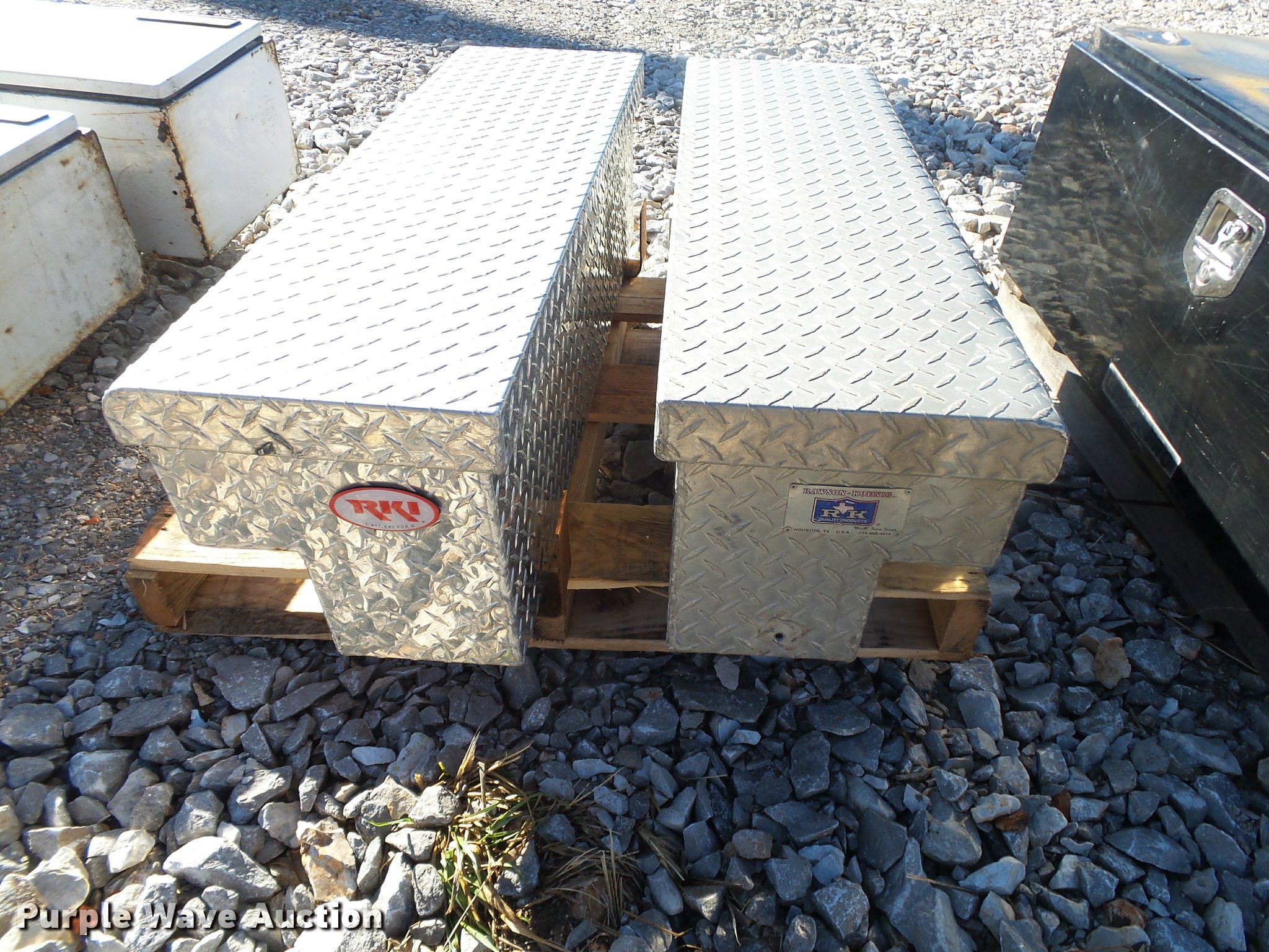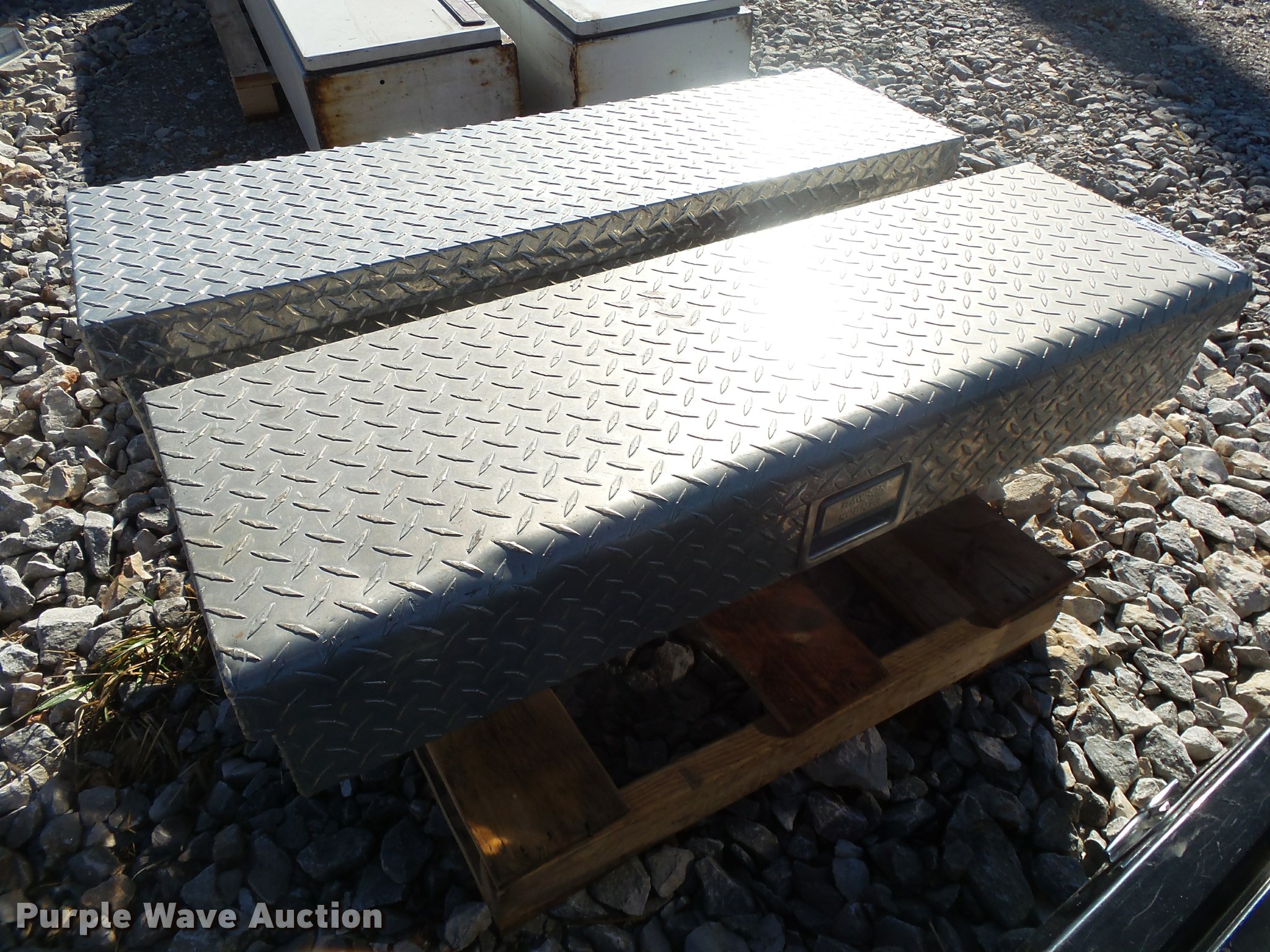 Purple Wave is selling a used Automotive Parts or Acces. in Arkansas. This item is a (2) L-shaped toolboxes with the following: 44"L x 13"W x 13"H