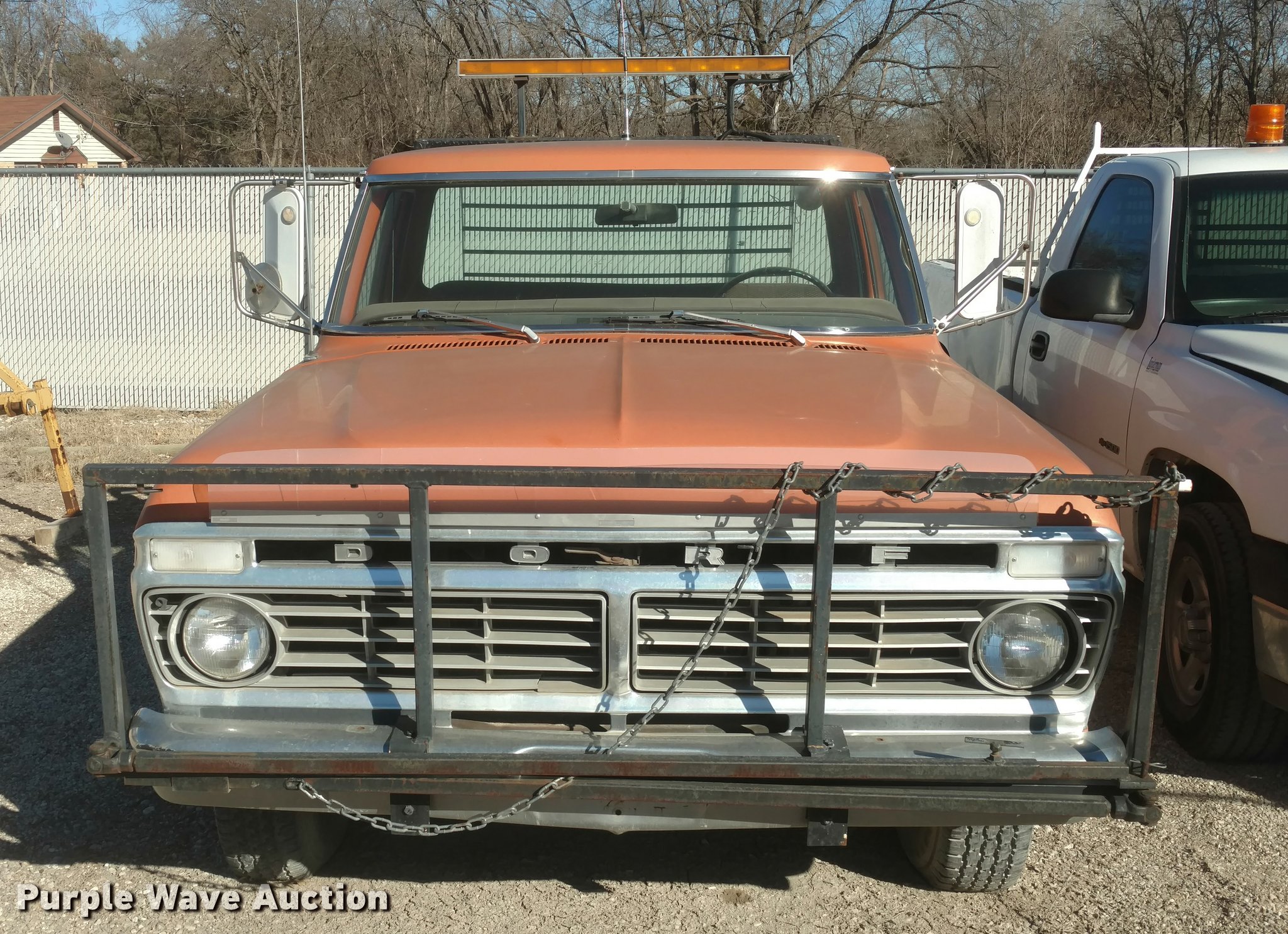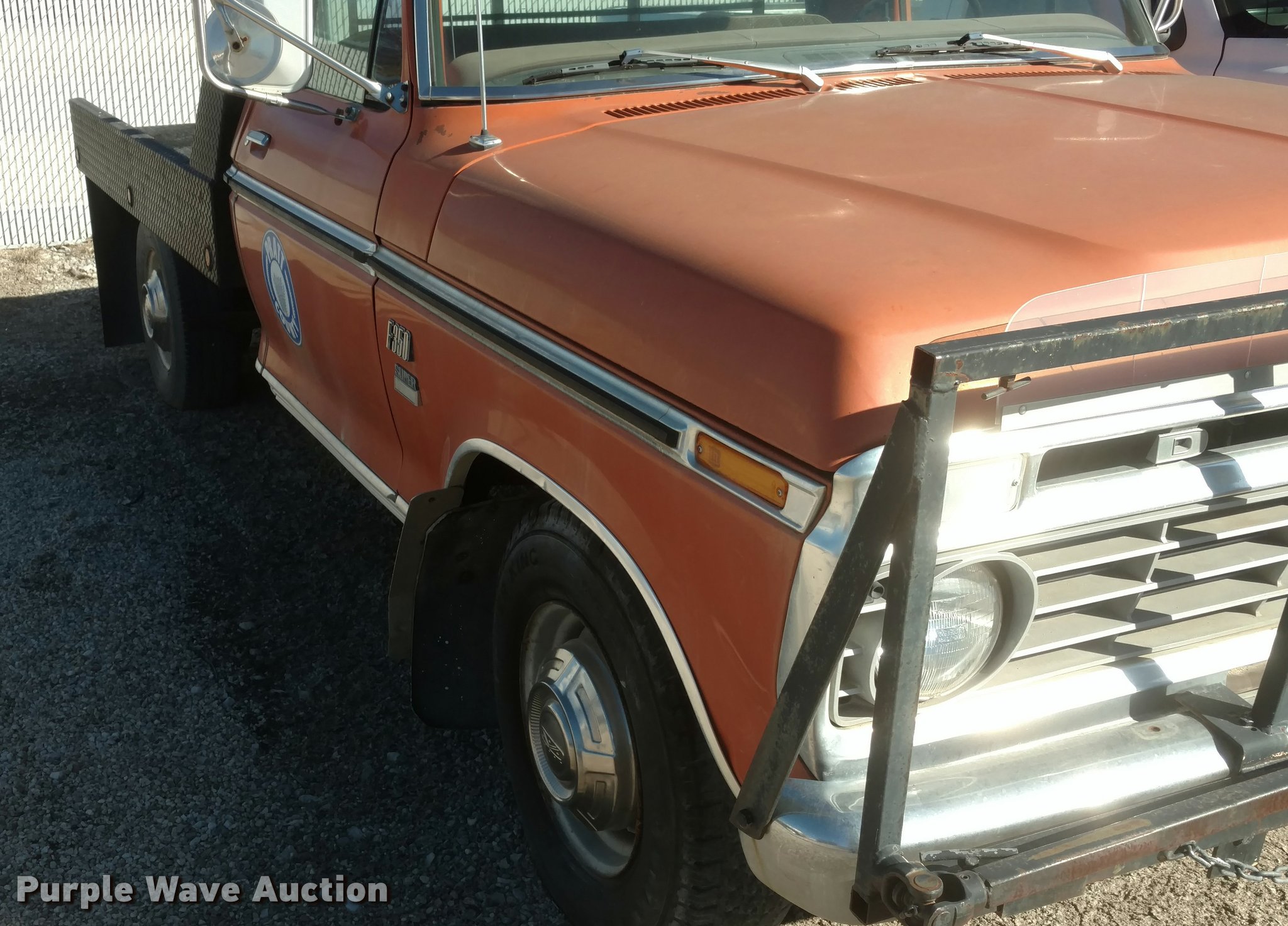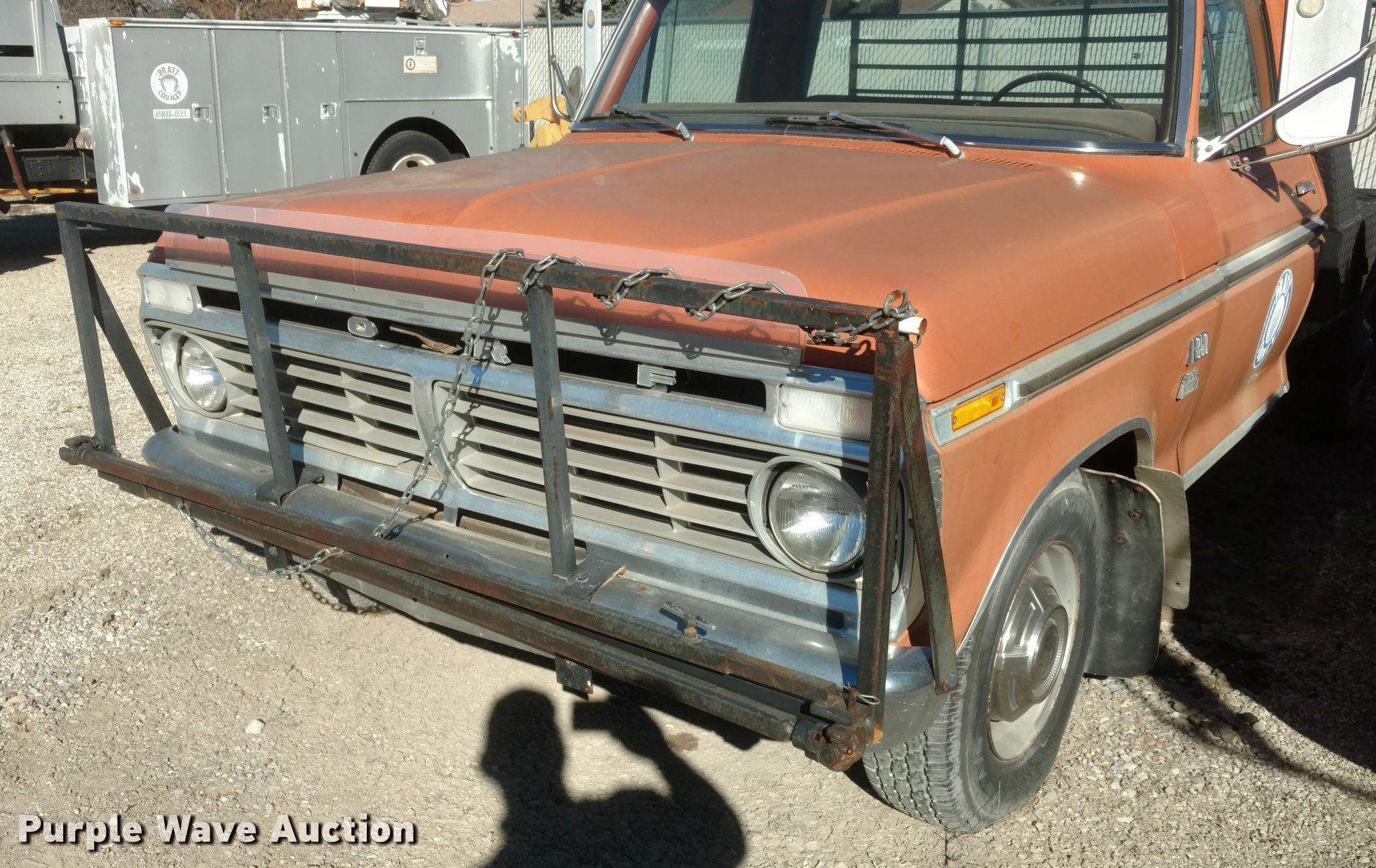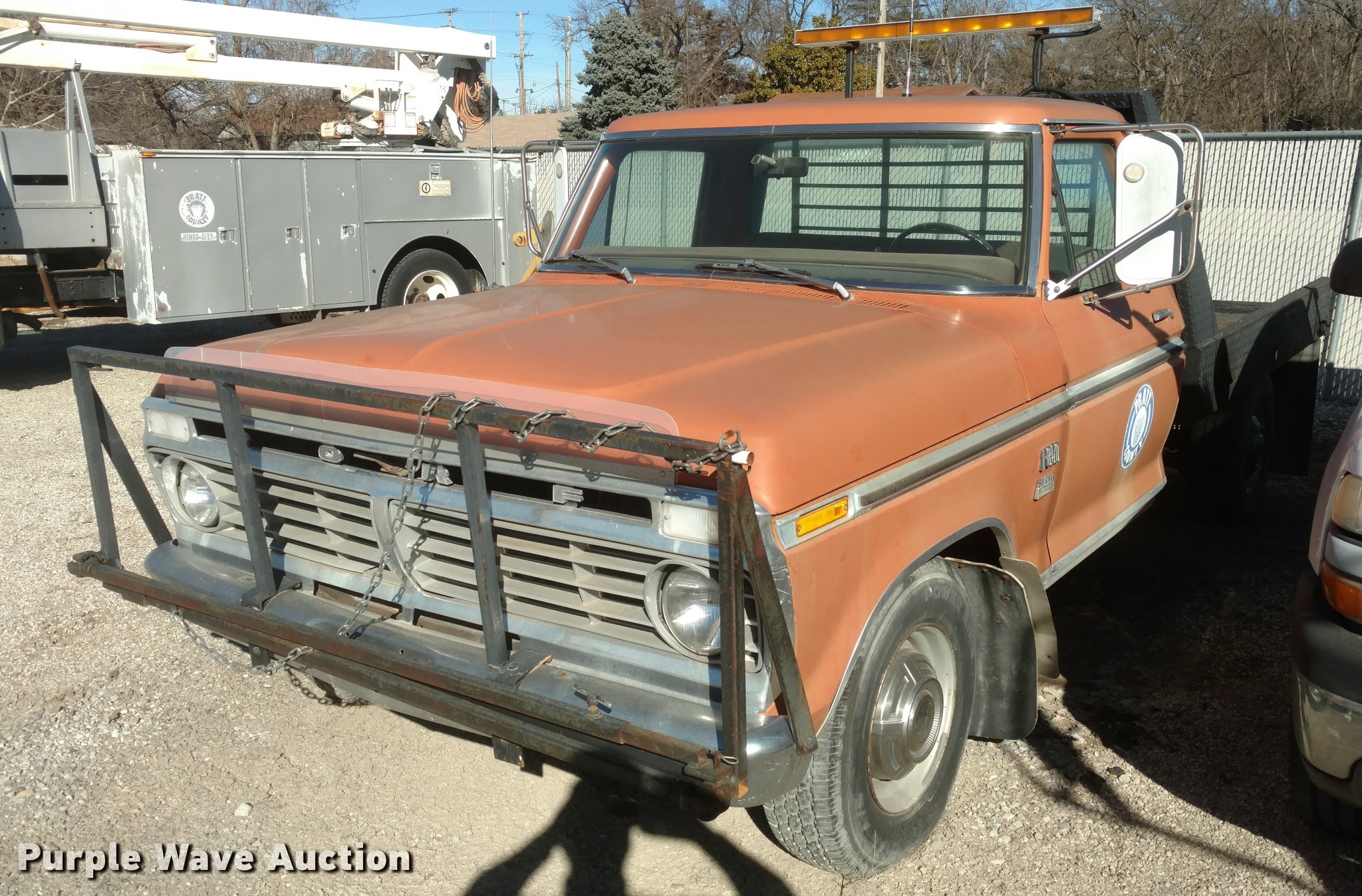 Purple Wave is selling a used 3/4 or 1 Ton Pickup or Van in Kansas. This item is a 1974 Ford F350 flatbed pickup truck with the following: 14,460 miles on odometer, Actual mileage unknown, Gas engine, Automatic transmission, Heat, AM/FM, Manual windows and locks, 102"L x 80"W flatbed, 9.50R16.5 tires, Operational when removed from service five years ago