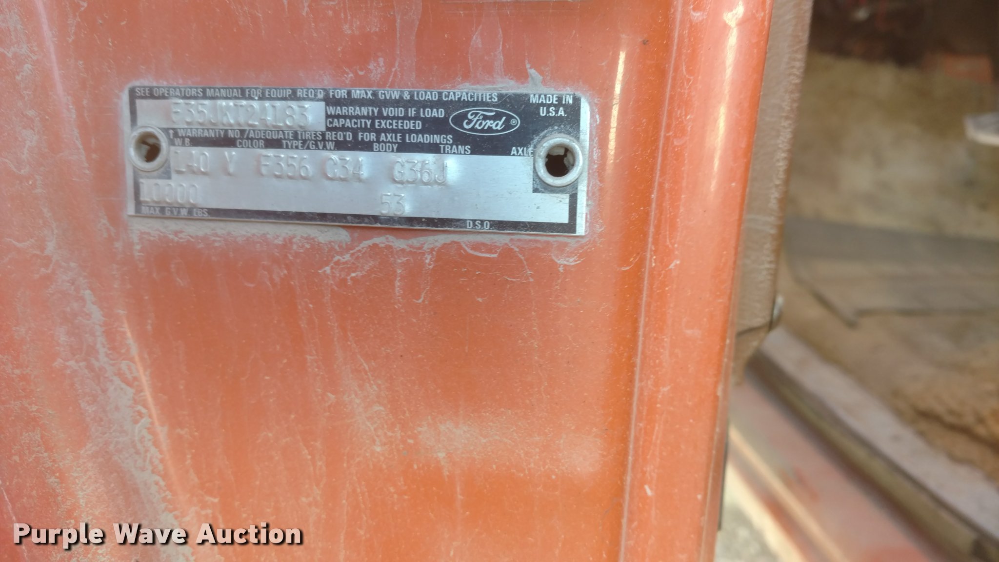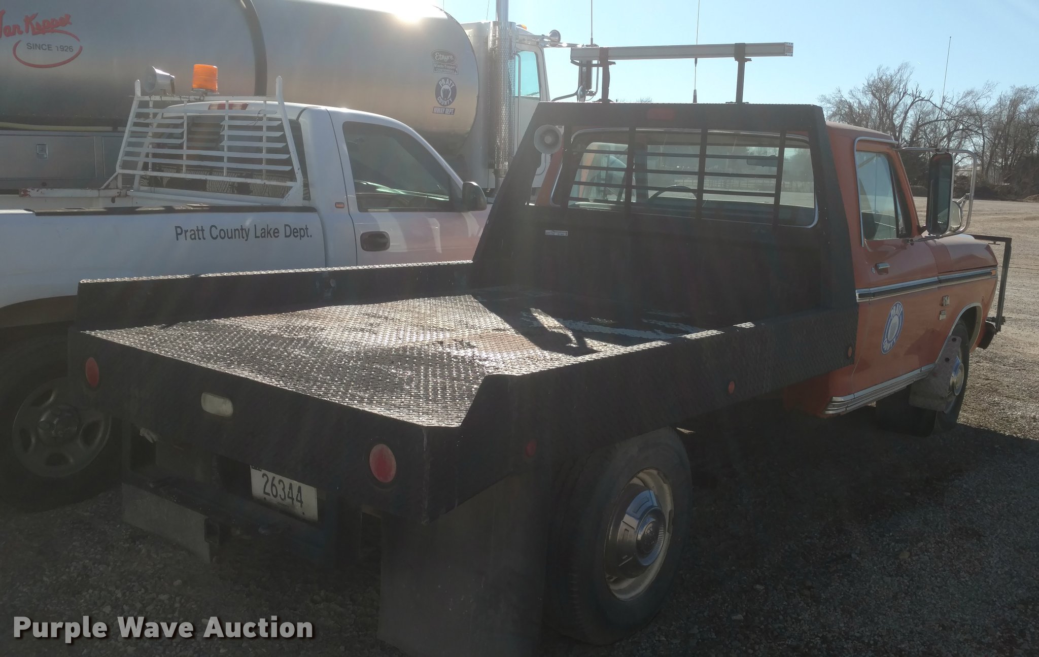 1974 Ford F350 flatbed pickup truck. 14,460 miles on odometer Actual mileage unknown, Gas engine, Automatic transmission, Heat, AM/FM, Manual windows and locks, 102"L x 80"W flatbed, 9.50R16.5 tires, Operational when removed from service five years ago. Kansas title. F35JKT24183. Pratt County. Pratt, KS 67124